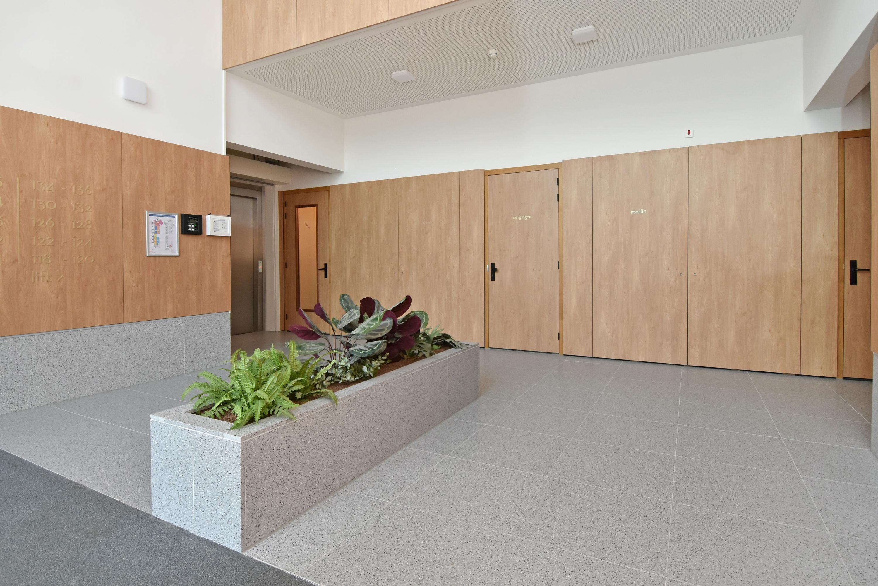 Via de chique centrale entree met lift bereikt u de (extra hoge) eerste verdieping (feitelijk de 2e verdieping), waar dit bijzondere appartement is gelegen.