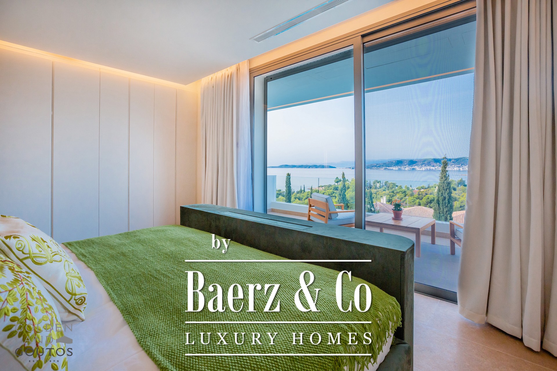 Binnen draait het ontwerp om openheid en licht. De hoofdingang komt uit op een ruim patio en een open leefruimte waar wonen, dineren en koken harmonieus in elkaar overlopen, omlijst door grote raampartijen die het schitterende uitzicht op het water benadrukken. Alle vijf slaapkamers beschikken over een eigen badkamer, waarbij de mastersuite op de begane grond privétoegang tot het balkon en een rustige toevluchtsoord biedt. Op de bovenverdieping bevinden zich vier extra mastersuites, elk met eigen balkon, ontworpen met oog voor privacy en rust, terwijl een serene lounge onafgebroken vergezichten biedt.