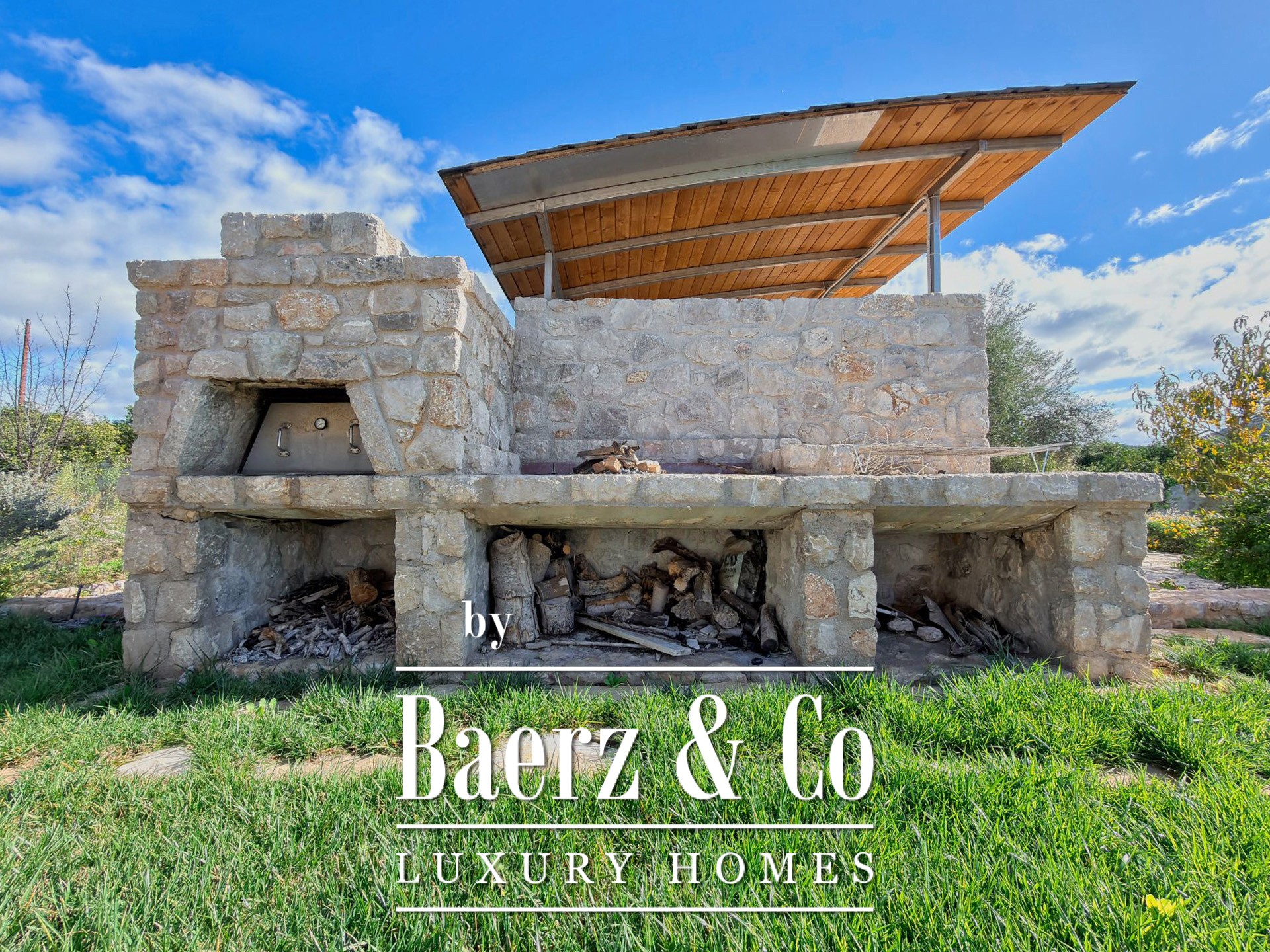 Het leven hier speelt zich af rondom de tuin, waar fruit- en olijfbomen, seizoensbloemen en zorgvuldig geplaatste hoekjes met natuursteen een zeldzaam toevluchtsoord vormen. Een brasero, barbecue met traditionele houtoven en volledig uitgeruste buitenbadkamer nodigen uit tot lange zomeravonden met gezelschap. De woning beschikt verder over parkeergelegenheid voor vier auto’s en een opslagcontainer van 15 m²; een perfecte balans tussen praktisch gebruik en doordacht design.