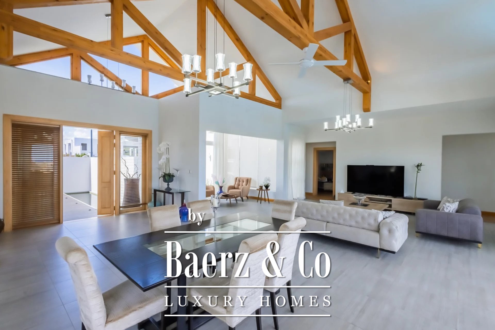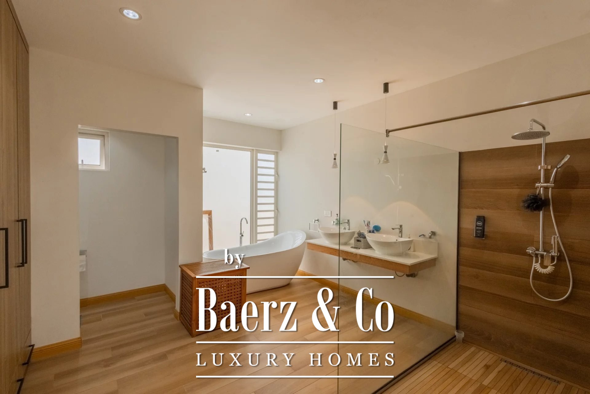 De villa beschikt over vier slaapkamers en vier badkamers, allen voorzien van veel natuurlijk licht en uitzicht op de tuin, wat een gevoel van openheid en rust creëert. De living met dubbele plafondhoogte vloeit naadloos over in een volledig uitgeruste open keuken, ideaal voor zowel ontspanning als gezellige samenkomsten. Onberispelijke afwerkingen en zorgvuldig gekozen meubels geven elke ruimte een ingetogen verfijning.