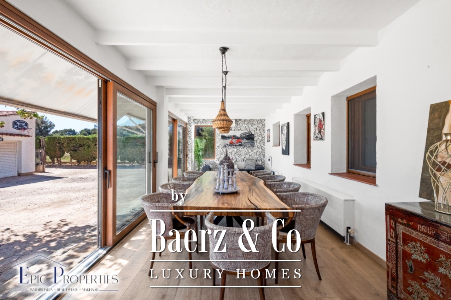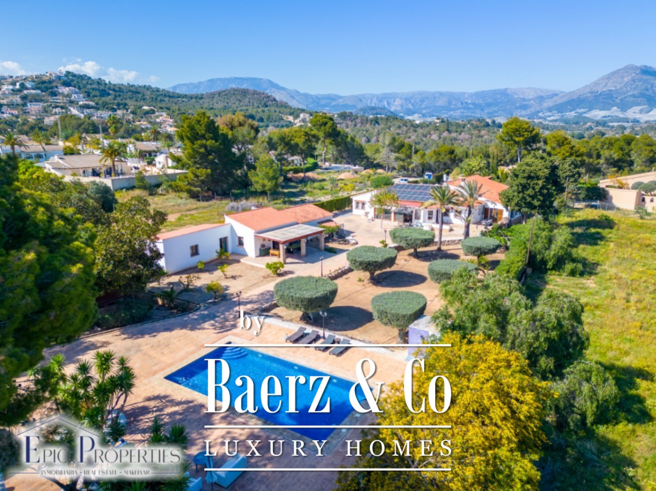 Wij presenteren deze spectaculaire finca van 7.000 m², volledig omheind en vlak gelegen, in een bijzondere natuurlijke omgeving, met een vrij uitzicht op de imposante bergen van de Sierra Bernia, de Sierra Helada en de Puig Campana. Een waar oase van privacy, comfort en stijl.
