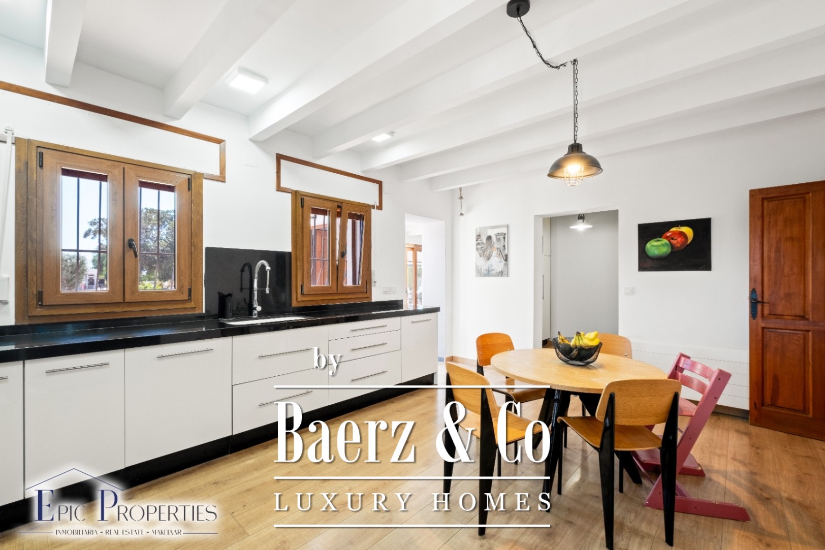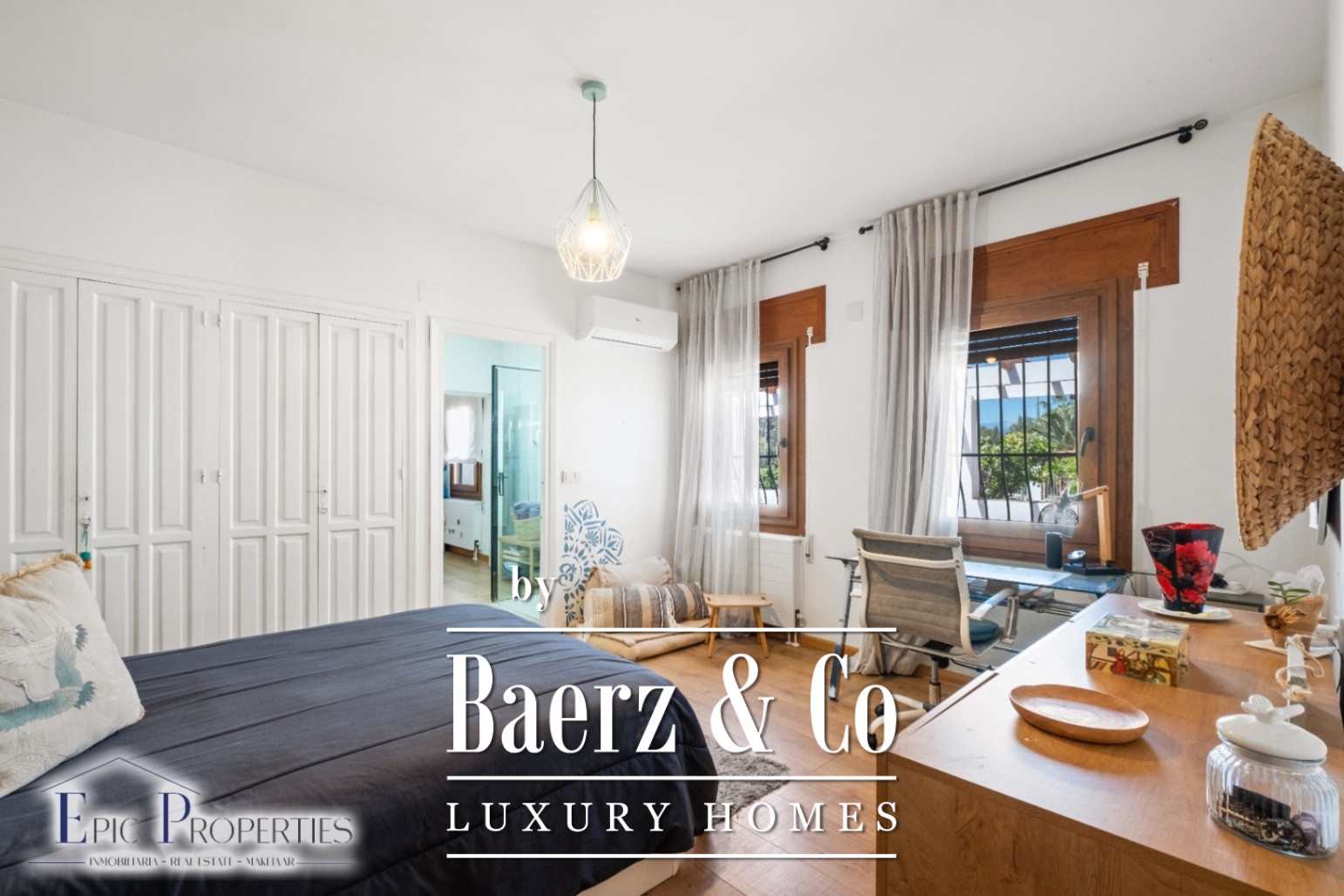 De woning beschikt over een elegante hoofdhuis van 380 m² met een rustieke stijl en industriële accenten, waarbij edele materialen en moderne lijnen worden gecombineerd voor een warme en verfijnde sfeer. Binnen springt de ruime woonkamer van 75 m² eruit, met hoge plafonds, een houtkachel en een aparte eethoek, ideaal om te genieten met familie of gasten. De keuken is volledig uitgerust met hoogwaardige apparatuur en biedt functionaliteit en design in elk detail. Er zijn 5 slaapkamers en 3 badkamers, waaronder een hoofdsuite met inloopkast en privébadkamer, een kantoor, een gasten-wc en hoogwaardige afwerkingen. Het huis is voorzien van veiligheidsdubbelglas, zonnepanelen, centrale verwarming op gas (met vloerverwarming in een deel van het huis) en airconditioning, wat zorgt voor energie-efficiëntie en comfort het hele jaar door.