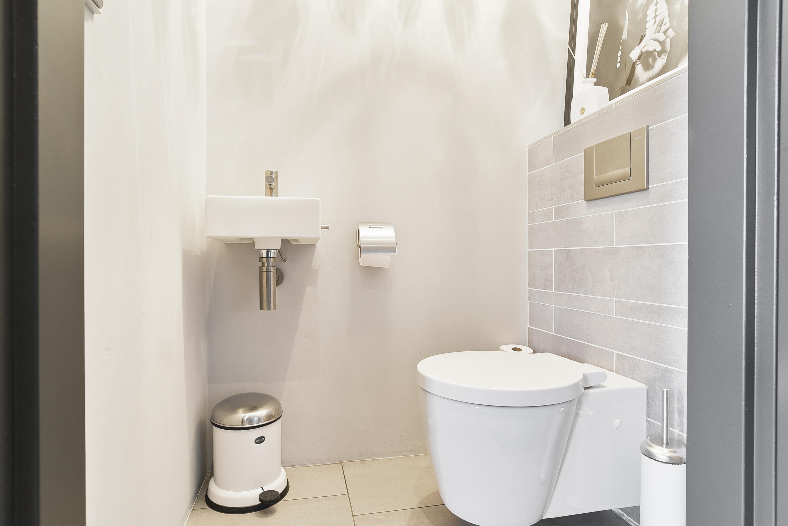 Daarnaast is er een technische ruimte met een dubbele wasmachineaansluiting, ruimte voor een droger en de opstelling van de cv-ketel (Vaillant Ecotec Plus CW6).
