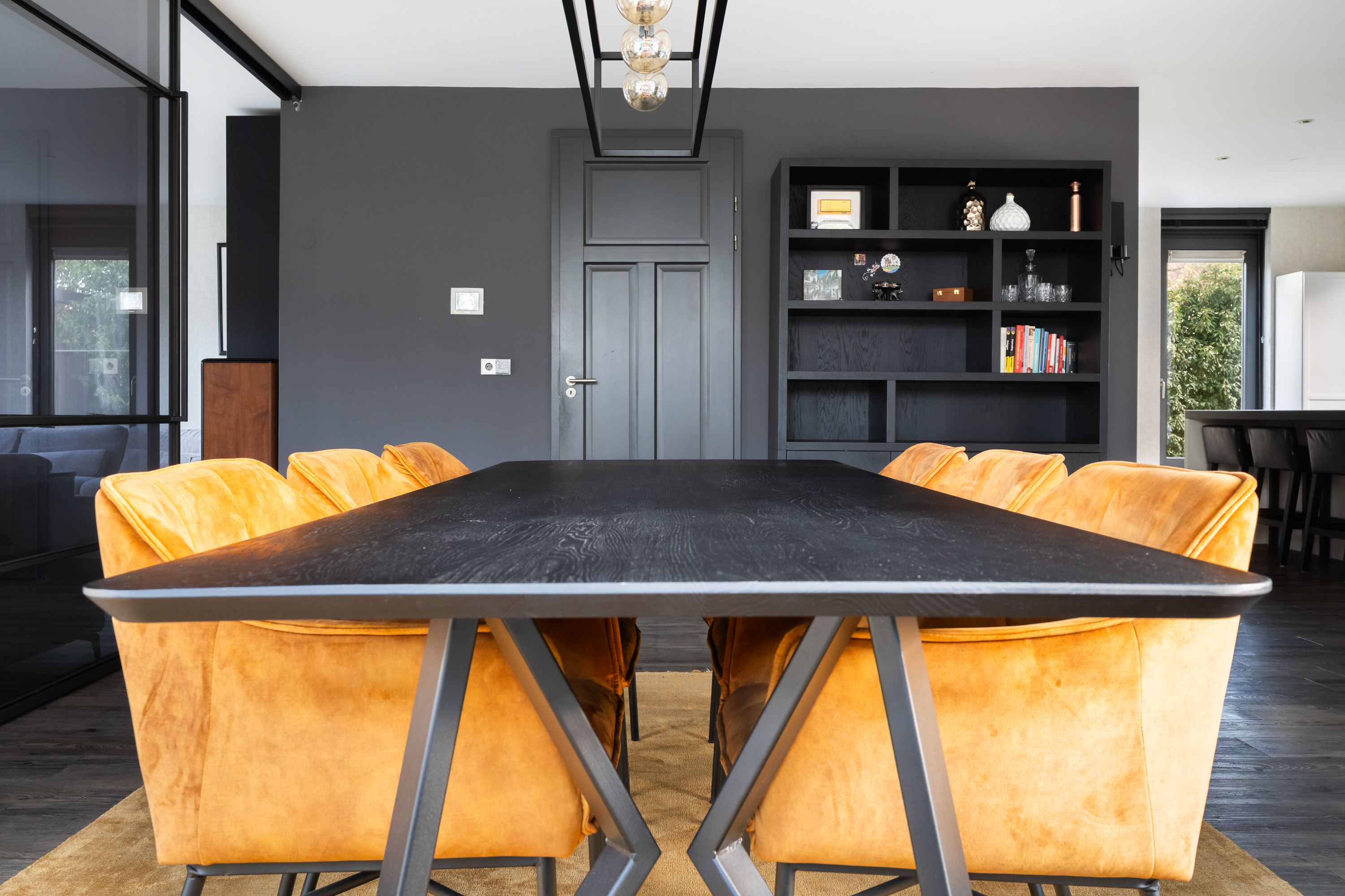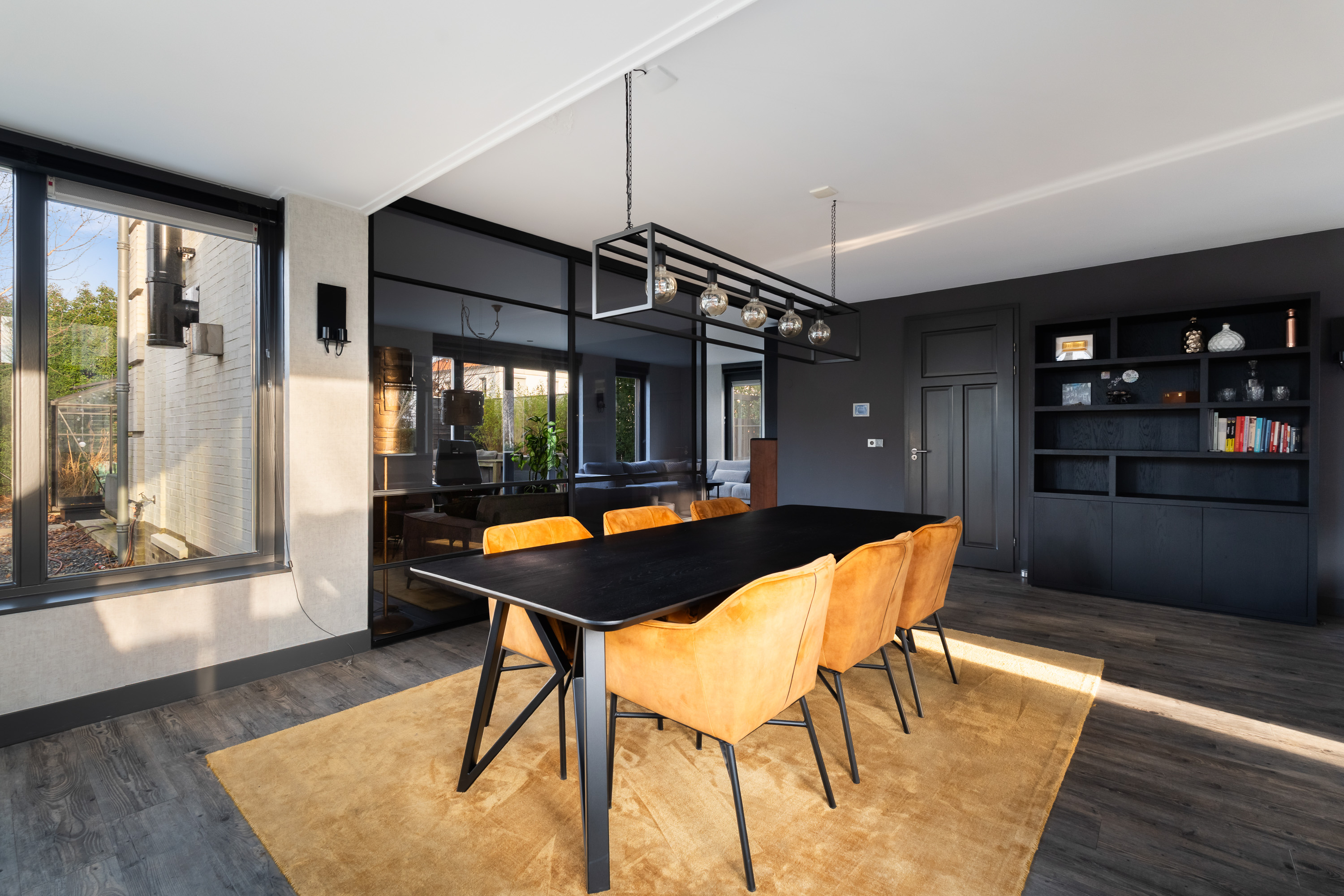 Aangrenzend aan de keuken bevindt zich het eetgedeelte met voldoende ruimte voor een royale eettafel.