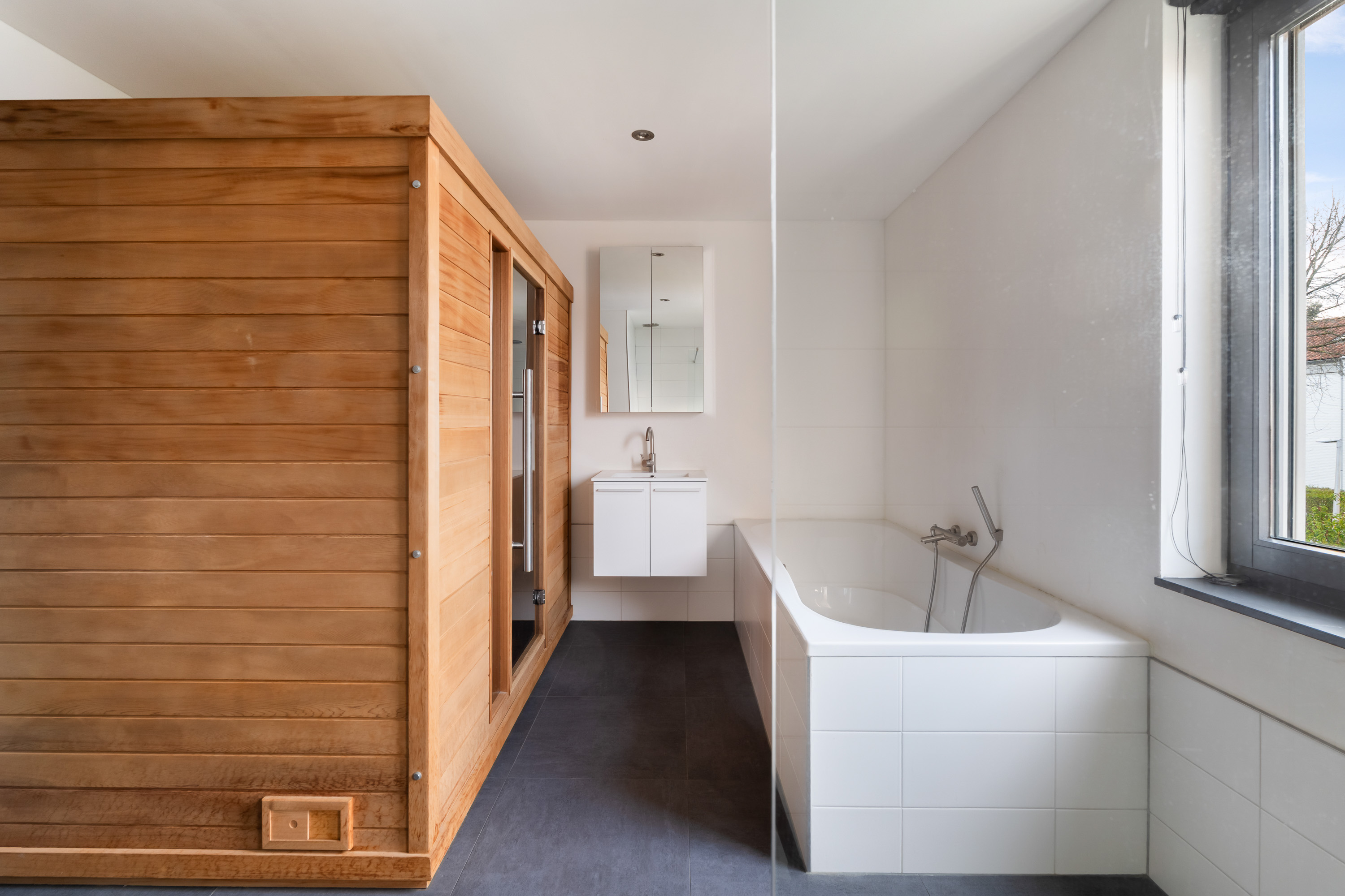 - Badkamer met ligbad, regendouche en Finse sauna met infrarood