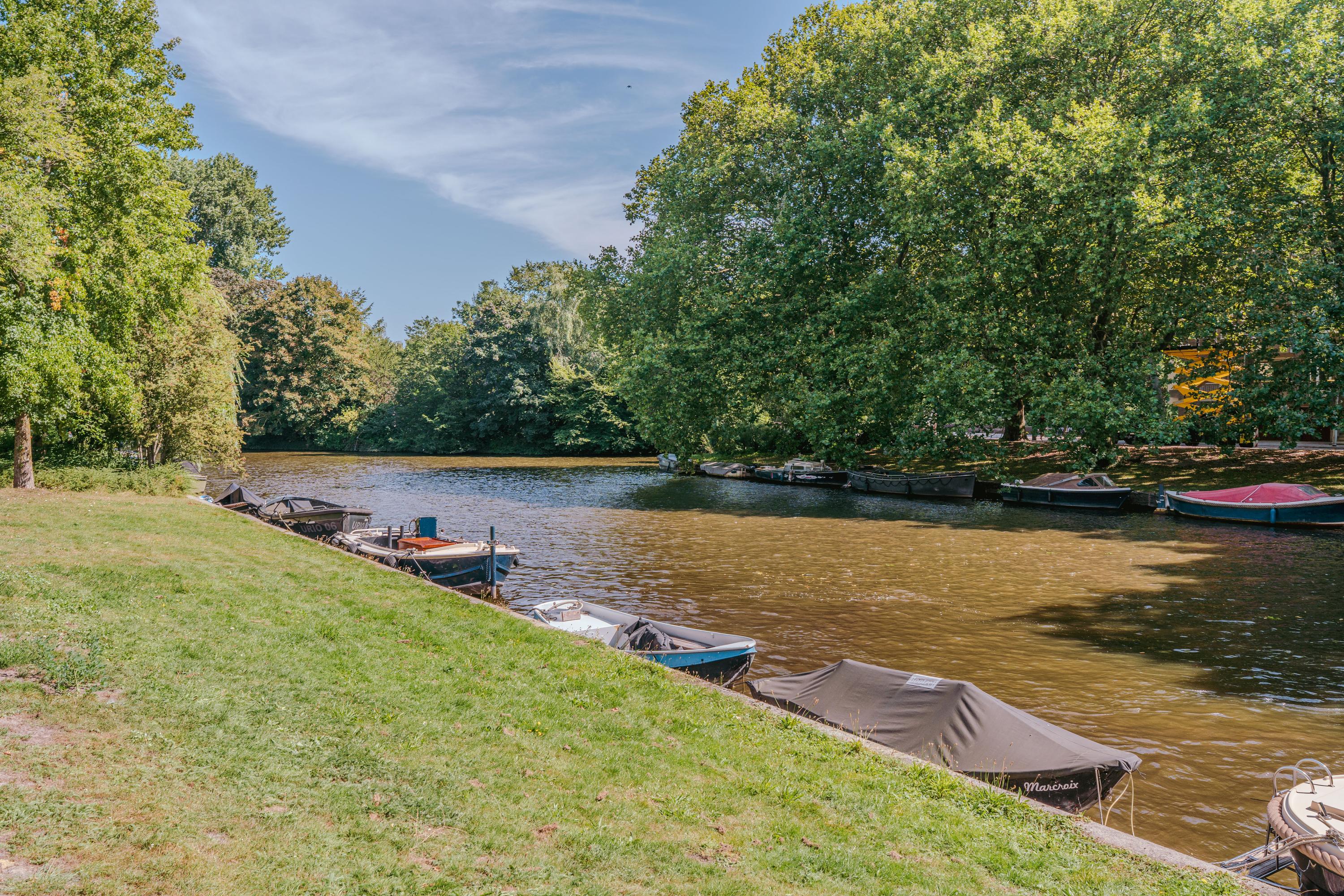 Middels de gemeenschappelijke entree bereikt u de voordeur van het appartement op de derde verdieping. Vanuit de royale hal loopt u direct door naar de centraal gelegen open keuken. Deze is uitgerust met een inductiekookplaat, afzuigkap spoelbak, Quooker, is voorzien van meer dan genoeg bergruimte en beschikt over een gezellige bar welke daarmee het hart vormt van de leefverdieping. Aansluitend de riante woonkamer, een sfeervolle ruimte met grote raampartijen en een karakteristieke erker, waardoor er veel daglicht binnenvalt en u een prachtig uitzicht geniet over het water en het Beatrixpark. Twee schouwen geven de ruimte extra allure, terwijl de handige inbouwkasten zorgen voor praktische bergruimte. De originele glas-in-lood details in de deuren benadrukken de authentieke charme van het appartement. Aan de voor en achterzijde bevinden zich twee ruime slaapkamers, waarvan één uitstekend dienst kan doen als masterbedroom en de andere als logeer- of werkkamer. De badkamer is functioneel ingericht met een ligbad, douche en dubbele wastafel. In de hal is een separaat toilet aanwezig.