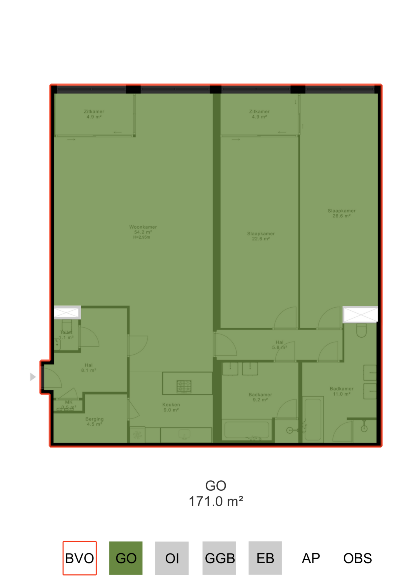- Appartementsrecht ca. 171m² (NEN280 rapport aanwezig)