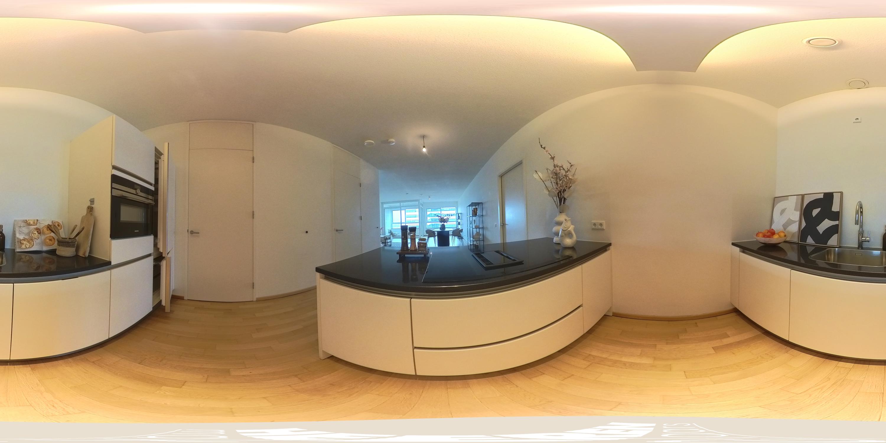 Bij binnenkomst betreedt u een royale hal met meterkast, separaat toilet en ruimte voor een garderobe. Vanuit hier loopt u de ruime en open woonkamer in, waar het spectaculaire uitzicht direct de aandacht trekt. De grote ramen zorgen voor een uitzonderlijk ruimtelijk gevoel. Aan de voorzijde bevindt zich een serre — een ideale plek om tot rust te komen, te lezen of simpelweg te genieten van het uitzicht. De open keuken is gelegen aan de achterzijde en is voorzien van moderne inbouwapparatuur, waaronder een koelkast, vriezer, inductiekookplaat met geïntegreerde afzuiging, Quooker en vaatwasser. U vindt hier ook nog een ruime berging voor extra opslagruimte.