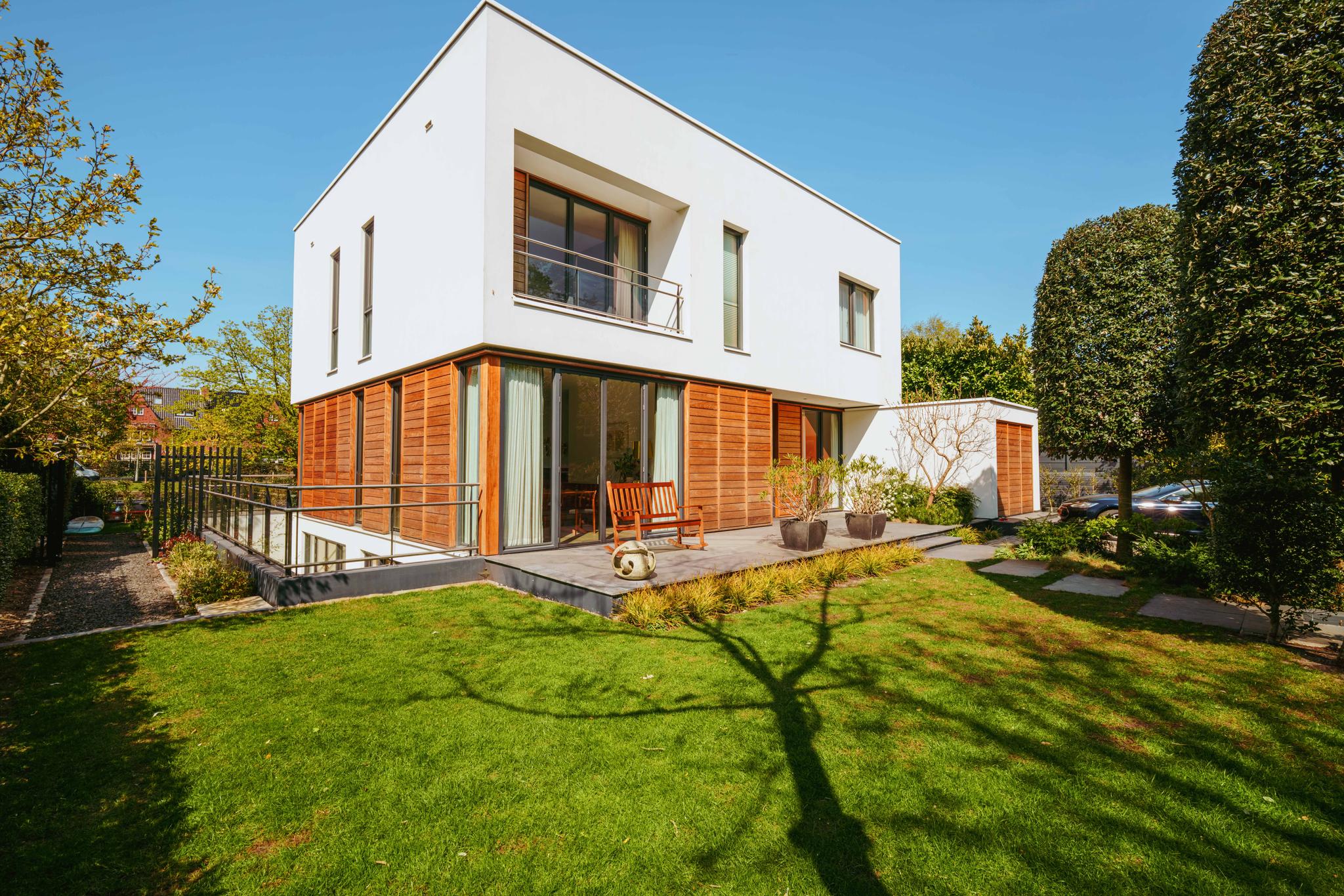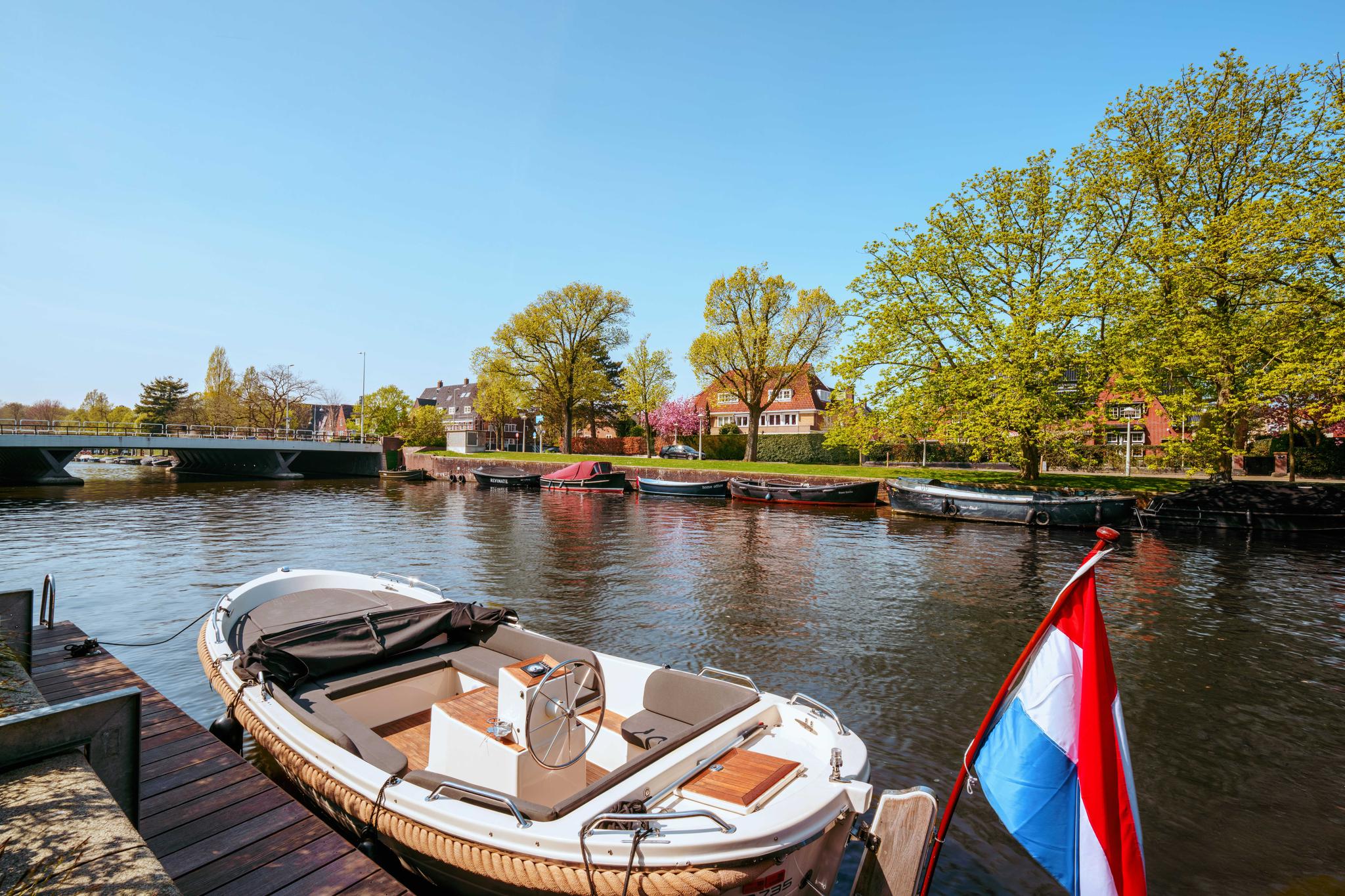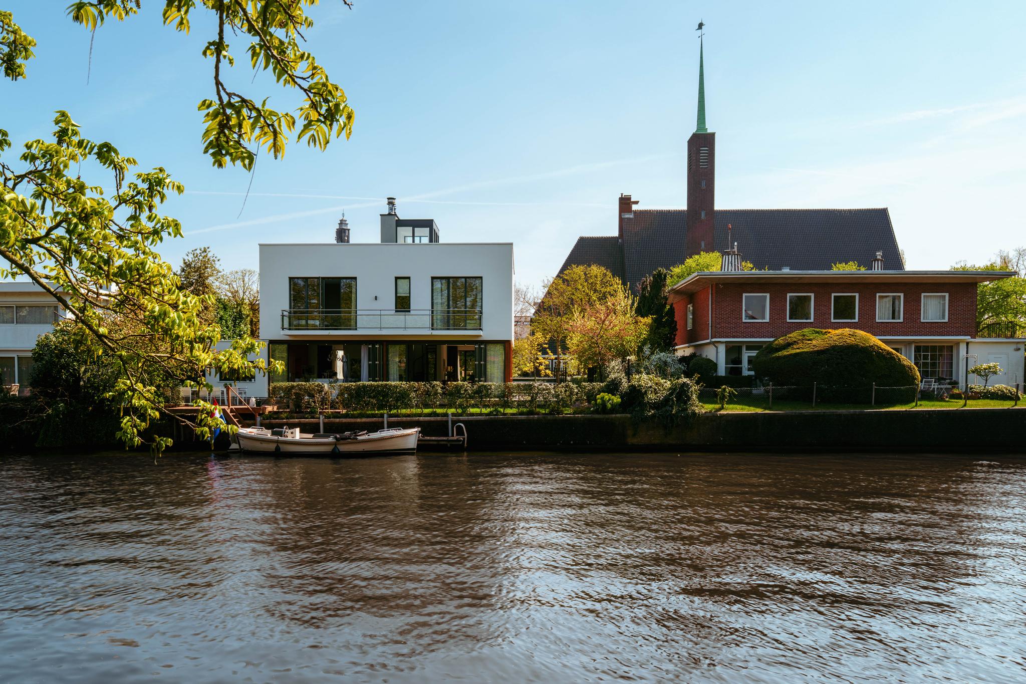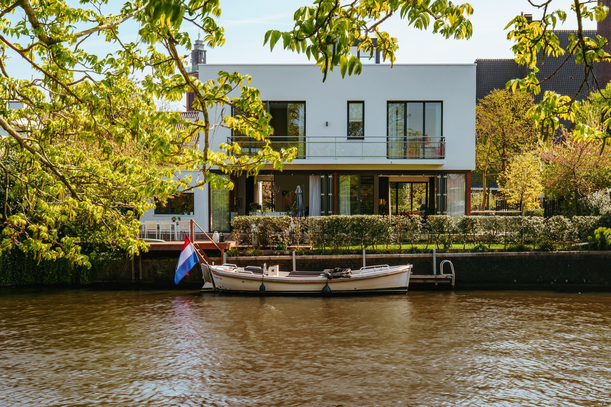 - Ruime en zonnige tuin rondom de gehele woning van ca. 441 m², met directe toegang tot een aanlegsteiger;