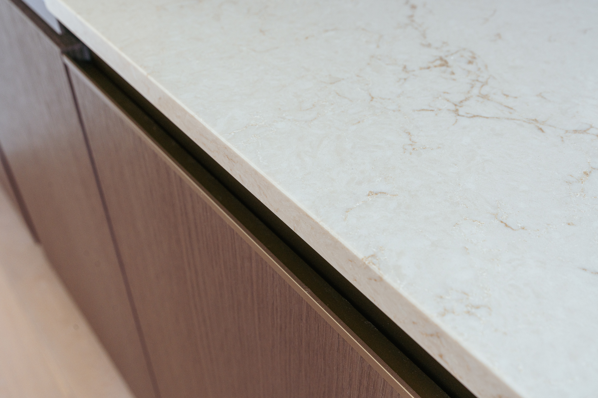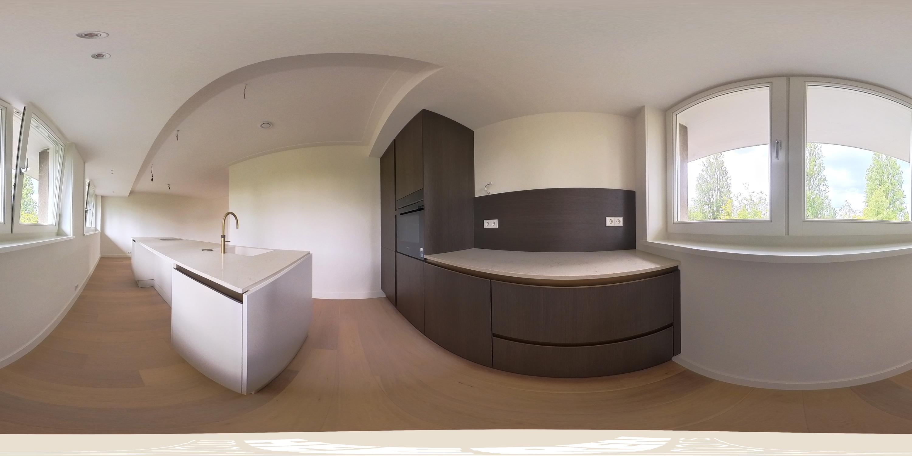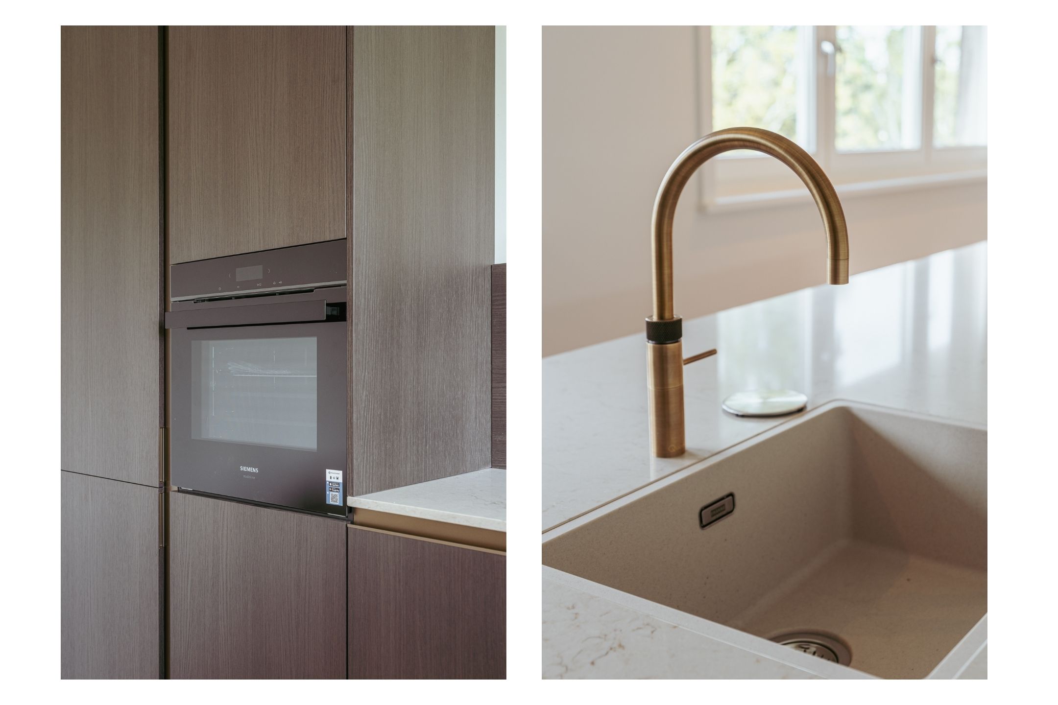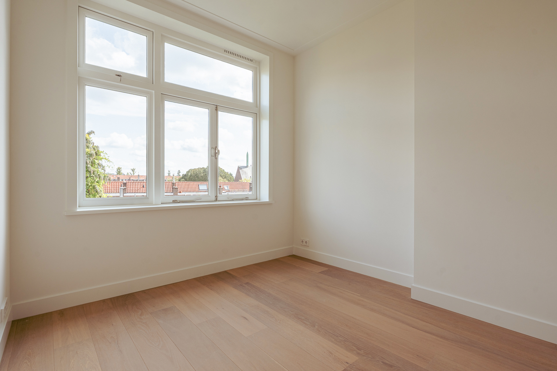 De open keuken is een echte eyecatcher en is voorzien van hoogwaardige inbouwapparatuur: een inductiekookplaat met geïntegreerde afzuiging, vaatwasser, combi-oven en Quooker kraan. De combinatie van strakke, greeploze kasten en warme houtaccenten geeft deze verdieping een moderne, maar sfeervolle uitstraling. Vanuit de woonkamer heeft u toegang tot een zonnig balkon gelegen op het zuidoosten, ideaal voor een kop koffie of een borrel in de middagzon.