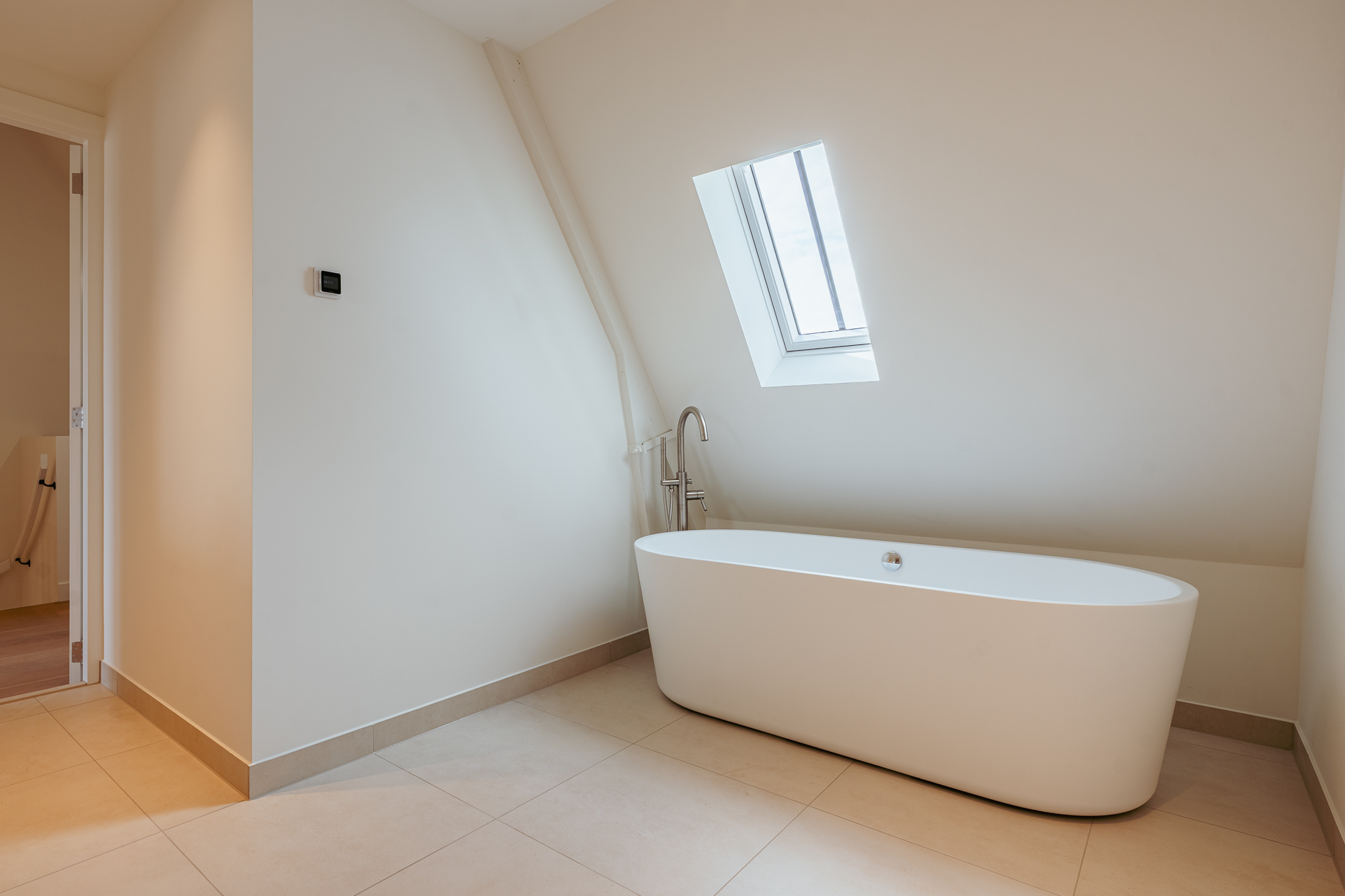 Op de vierde verdieping bevindt zich de master bedroom met openslaande deuren naar een heerlijk terras over de volledige breedte van de woning. Hier geniet u in alle rust van de zon en het uitzicht. Aan de achterzijde ligt een tweede slaapkamer, eveneens met toegang tot het terras. De moderne badkamer is compleet uitgerust met een ligbad, douche en dubbele wastafel. Daarnaast vindt u op deze verdieping een separaat toilet, een praktische wasruimte voor wasmachine en droger en extra bergruimte.