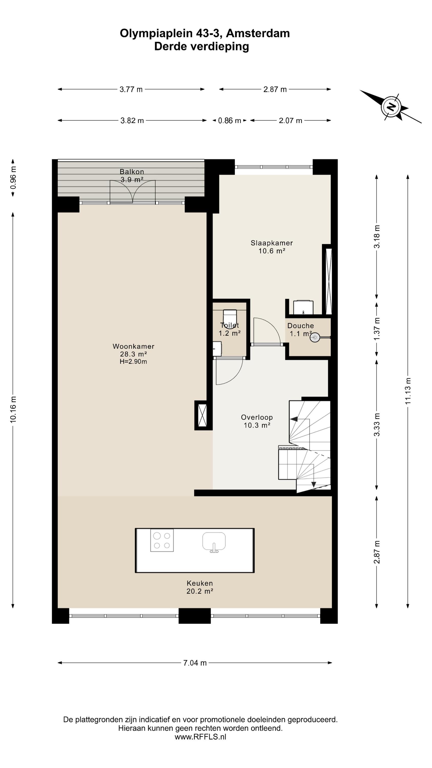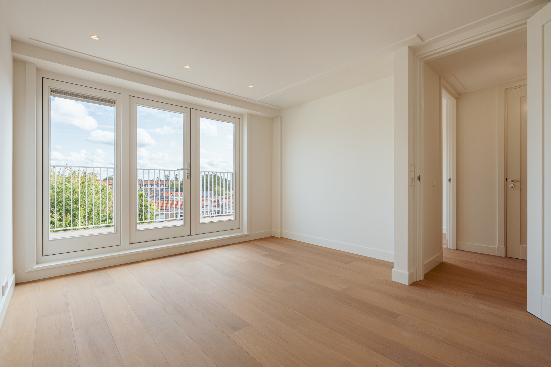 Op de derde verdieping ontvouwt zich het hart van de woning. Hier bereikt u vanuit de ruime hal, met praktische garderobe inbouwkast en separaat toilet, de lichte en royale woonkamer voorzien van open keuken. Deze ruimte strekt zich uit over de volledige breedte van de woning (ruim 7 meter) en met de grote raampartijen aan weerzijde van de woning zorgt dit voor veel licht en een prachtig, vrij uitzicht over het Olympiaplein.