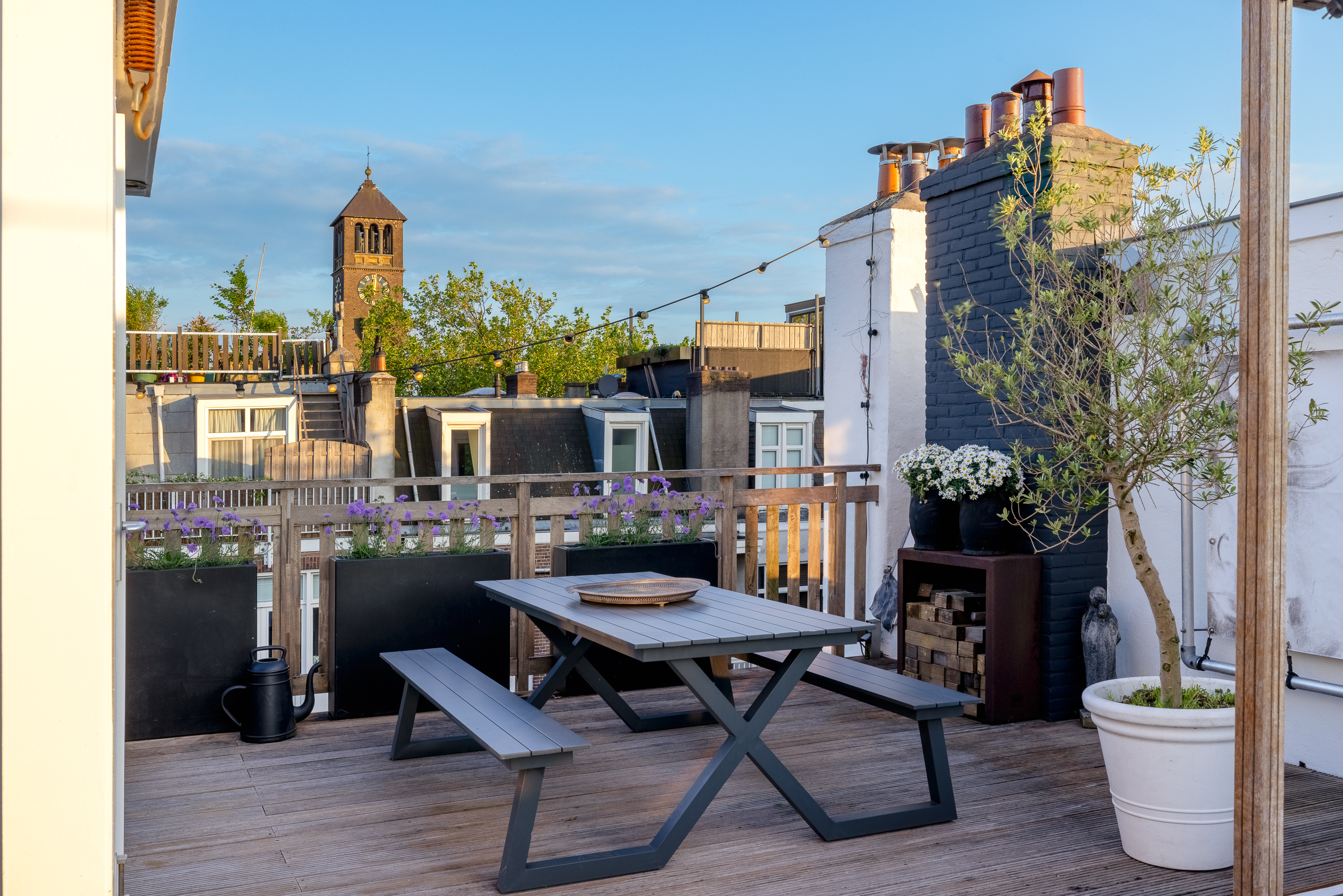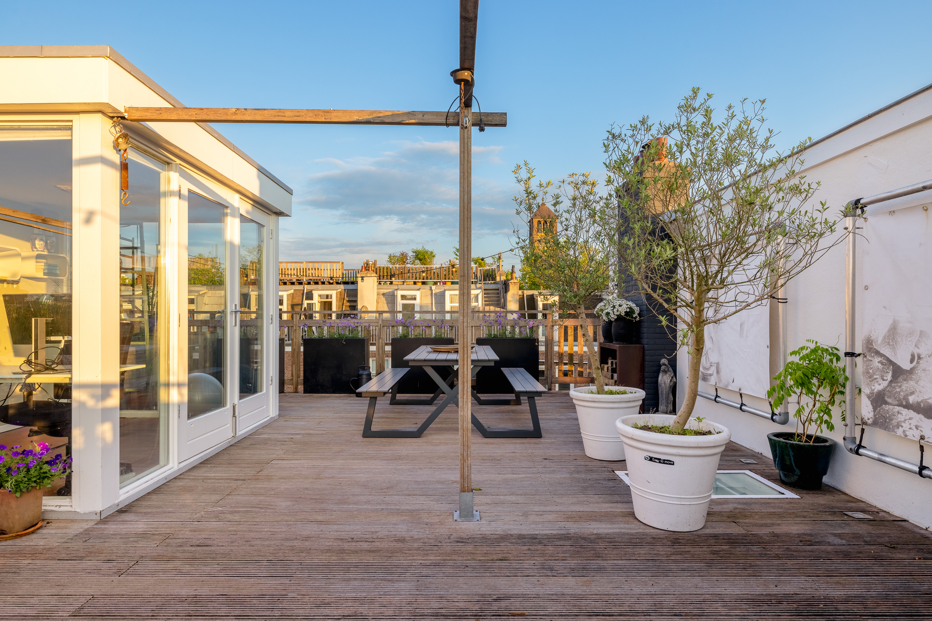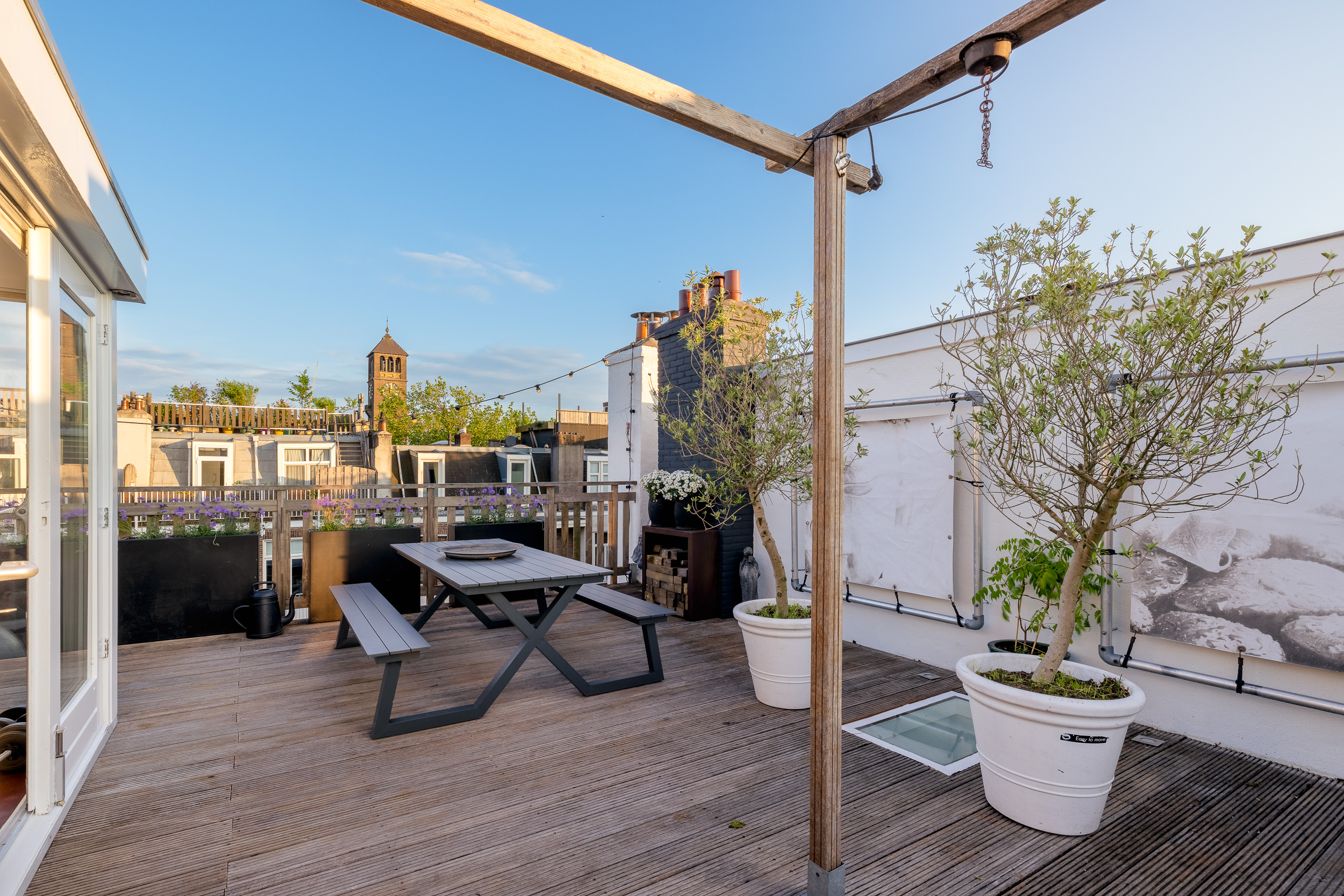 - Uniek dakterras (ca. 50m²) met vrij uitzicht en veel privacy.