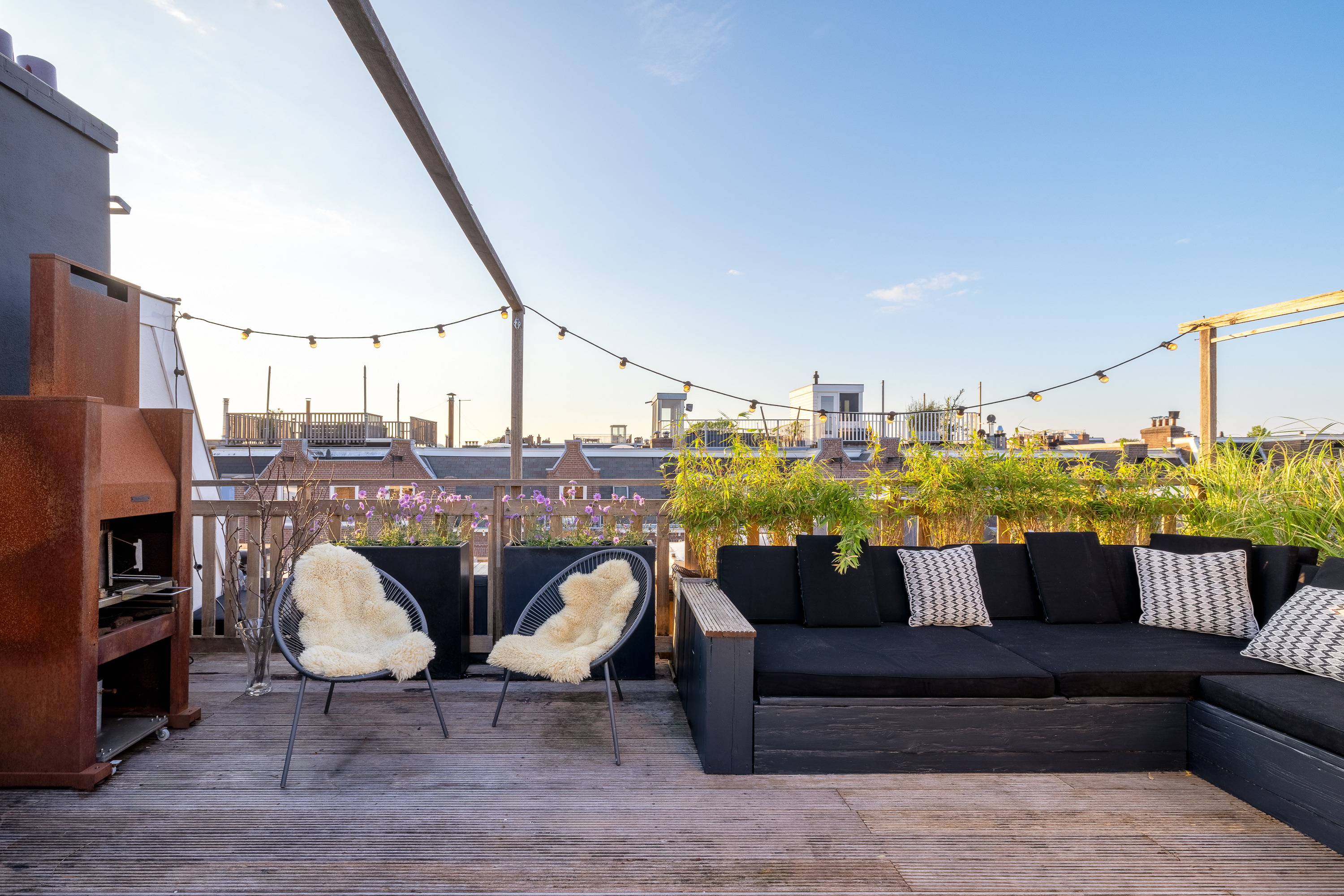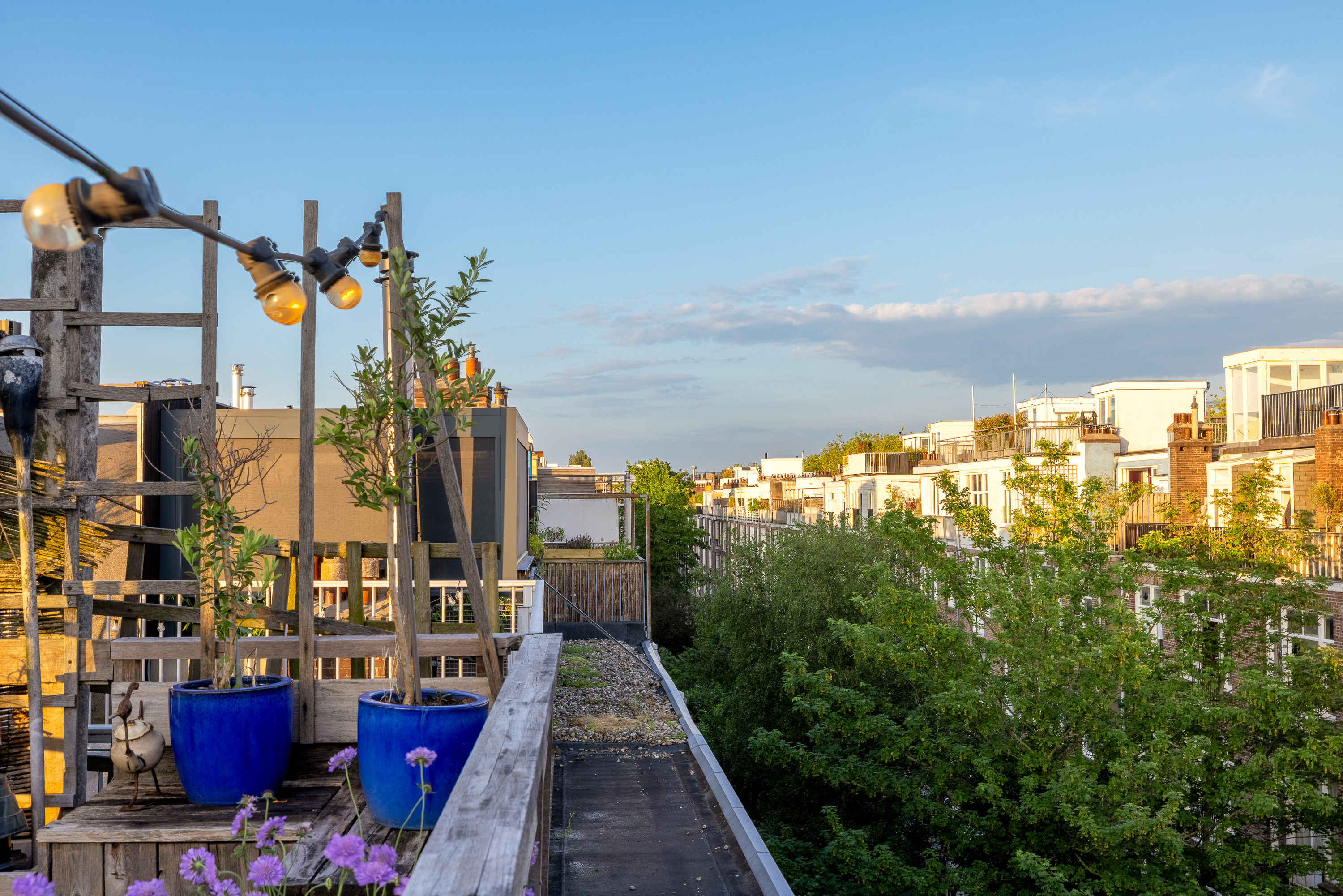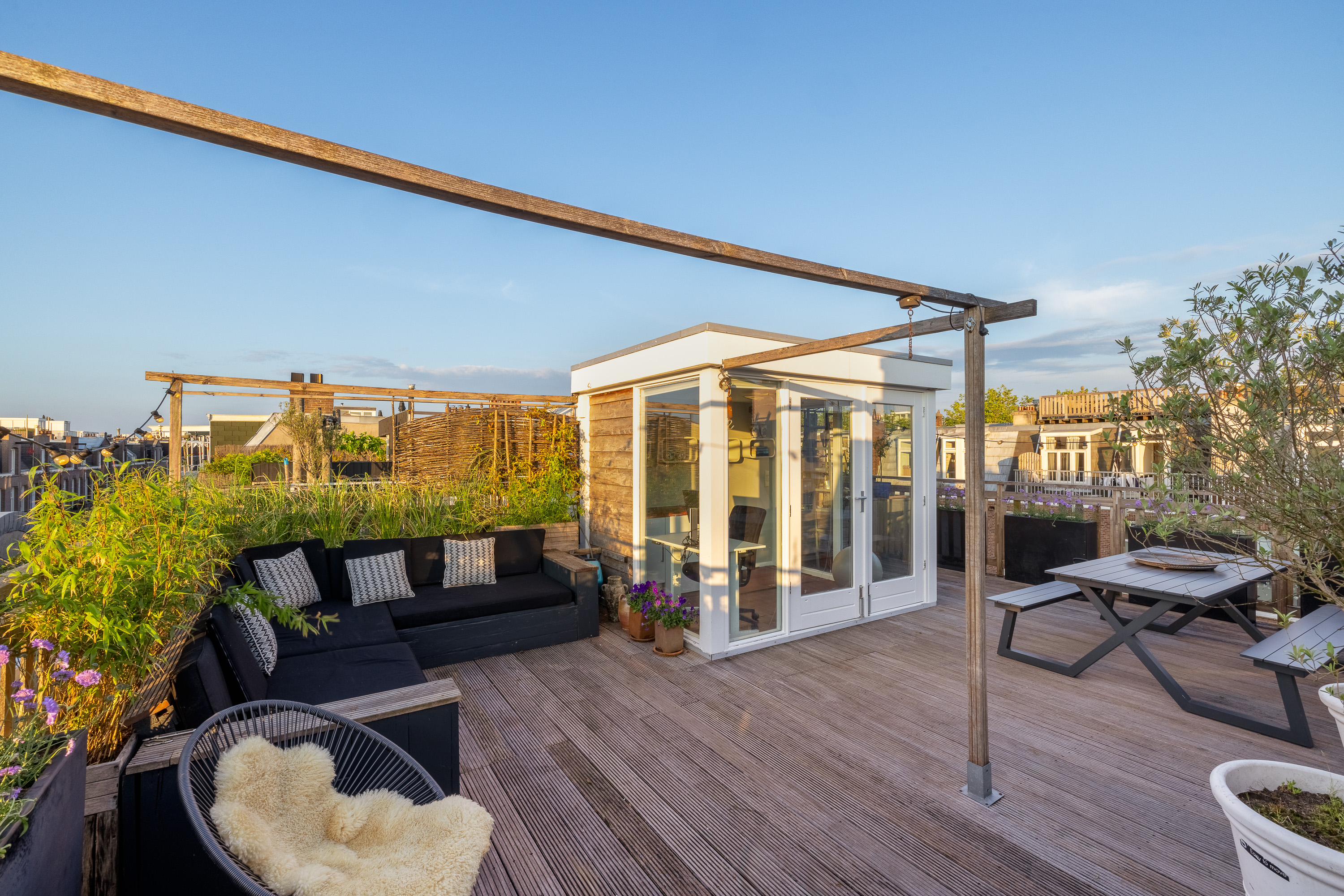 - Uniek dakterras (ca. 50m²) met vrij uitzicht en veel privacy.