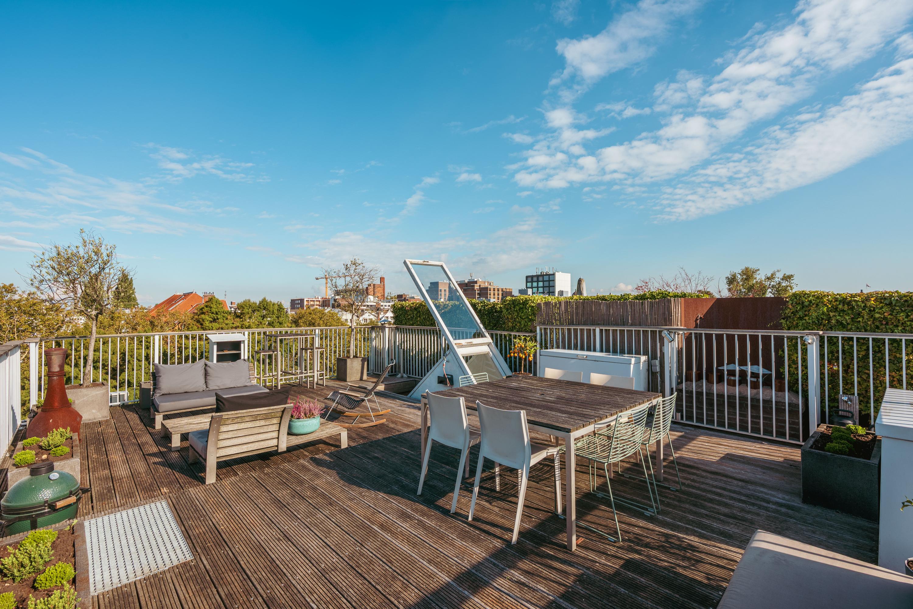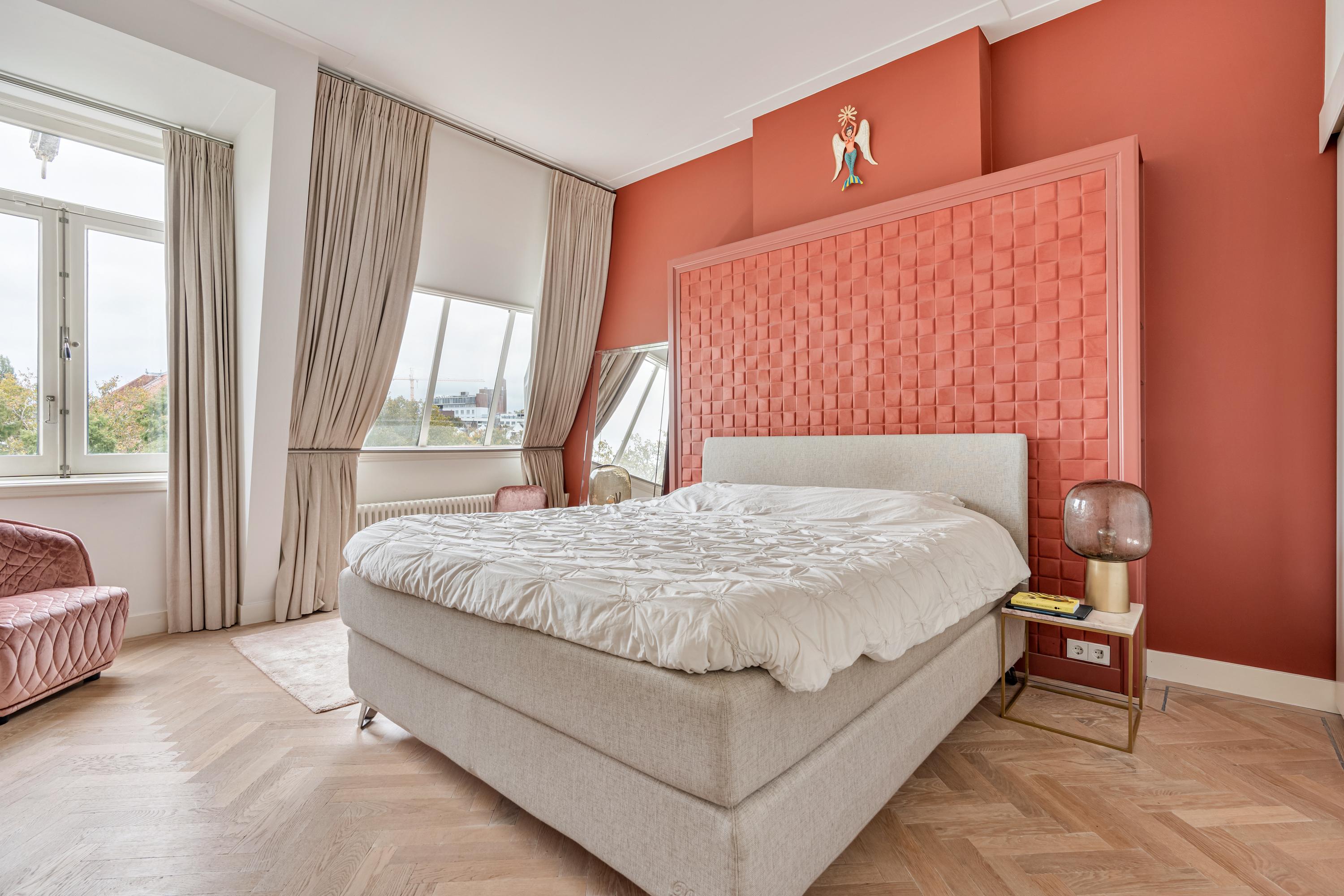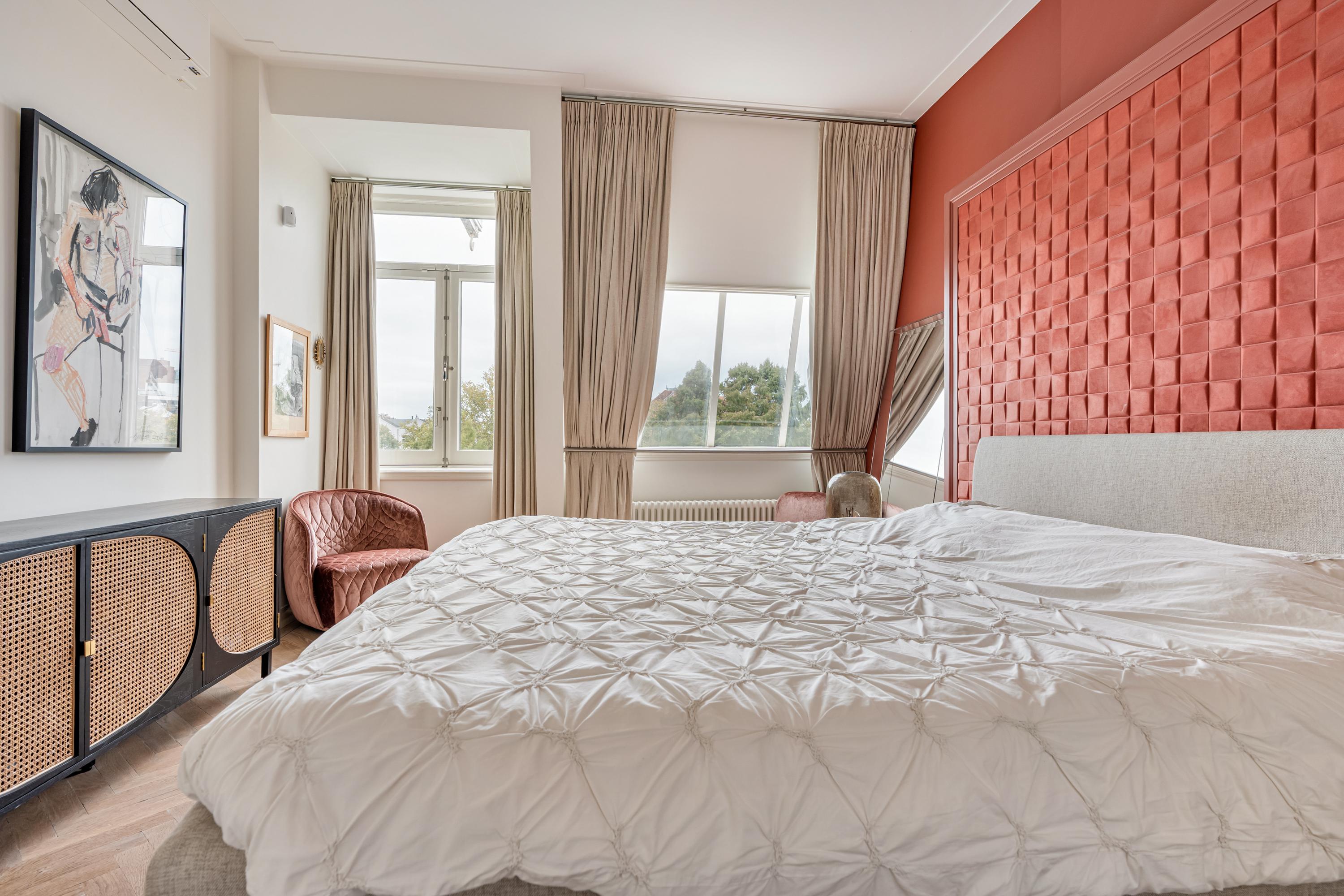 De grote raampartijen aan zowel de voor- als achterzijde van de woning zorgen voor een overvloed aan licht en een open, uitnodigende sfeer. Aan de voorzijde heeft u een uniek uitzicht over het groen van het Vondelpark, terwijl u aan de achterzijde uitkijkt over de weelderige binnentuinen. Elk seizoen kleurt het uitzicht anders en geeft de woning een nieuw karakter. Het ruime balkon en het dakterras bieden volop zon en privacy ,de ideale plekken om buiten te ontbijten, te ontspannen met een boek of te genieten van lange, zwoele zomeravonden met uitzicht over de stad.