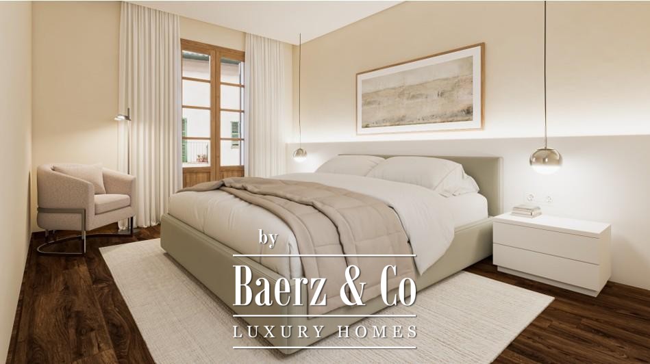 Op de verdieping bevinden zich drie slaapkamers met eigen badkamer, waaronder een master suite met inloopkast en directe toegang tot een terras met panoramisch uitzicht op de UNESCO-beschermde Serra de Tramuntana. Hoge plafonds zorgen voor een overvloed aan natuurlijk licht, terwijl traditionele tegels en wit geoliede eiken vloeren zorgen voor een gevoel van continuïteit en verbondenheid met de plek. Buiten leven staat centraal, met twee terrassen met uitzicht op de bergen en het beschutte centrale zwembad op de patio.