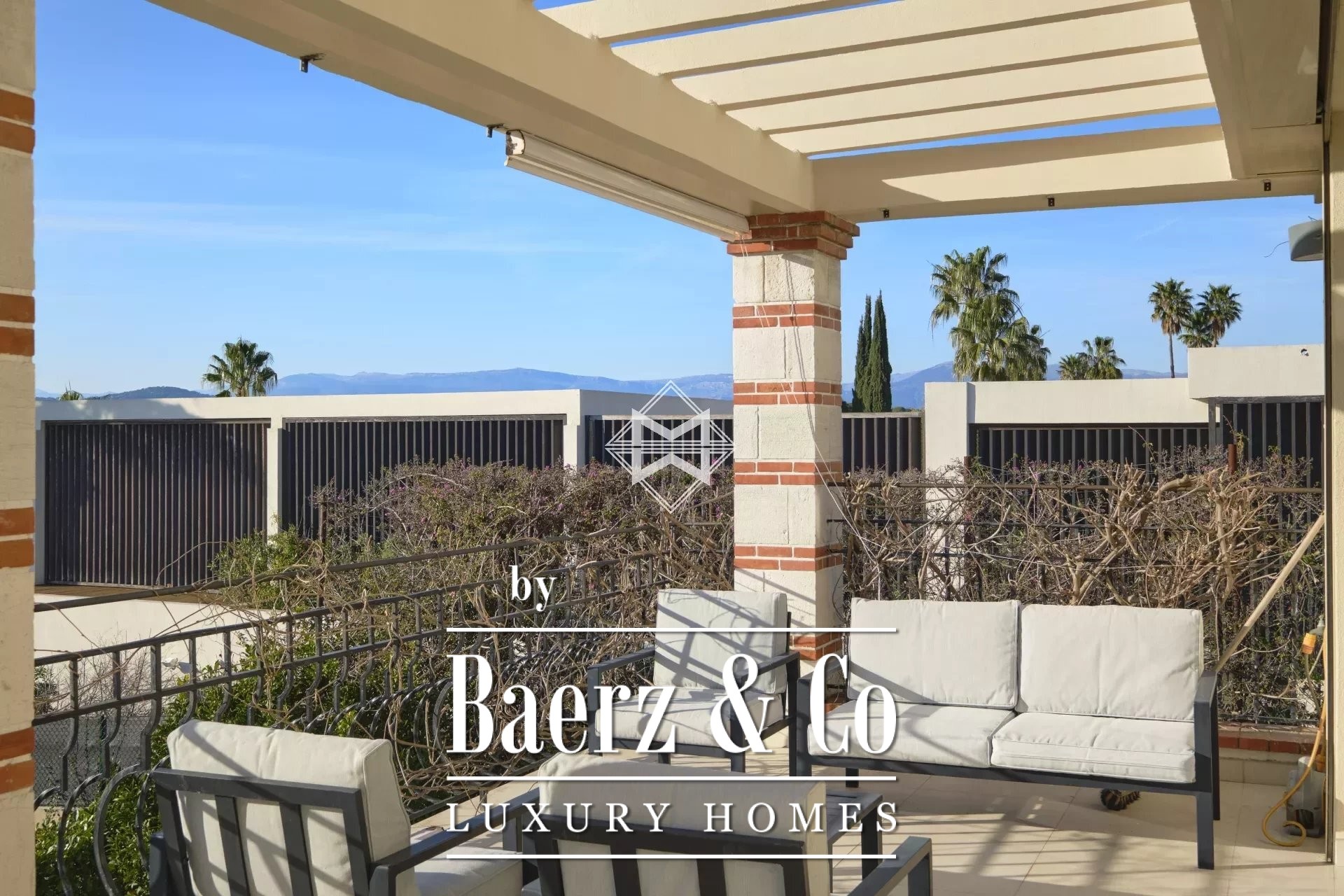 Tot de voorzieningen behoren airconditioning, dubbele beglazing, elektrische zonwering en rolluiken, glasvezel, beveiligingssysteem en parkeergelegenheid met garage. Gelegen op 1.100 m² vlakke grond verenigt dit eigendom architectonische helderheid met ontspanning en creëert zo een sfeer van ingetogen comfort.