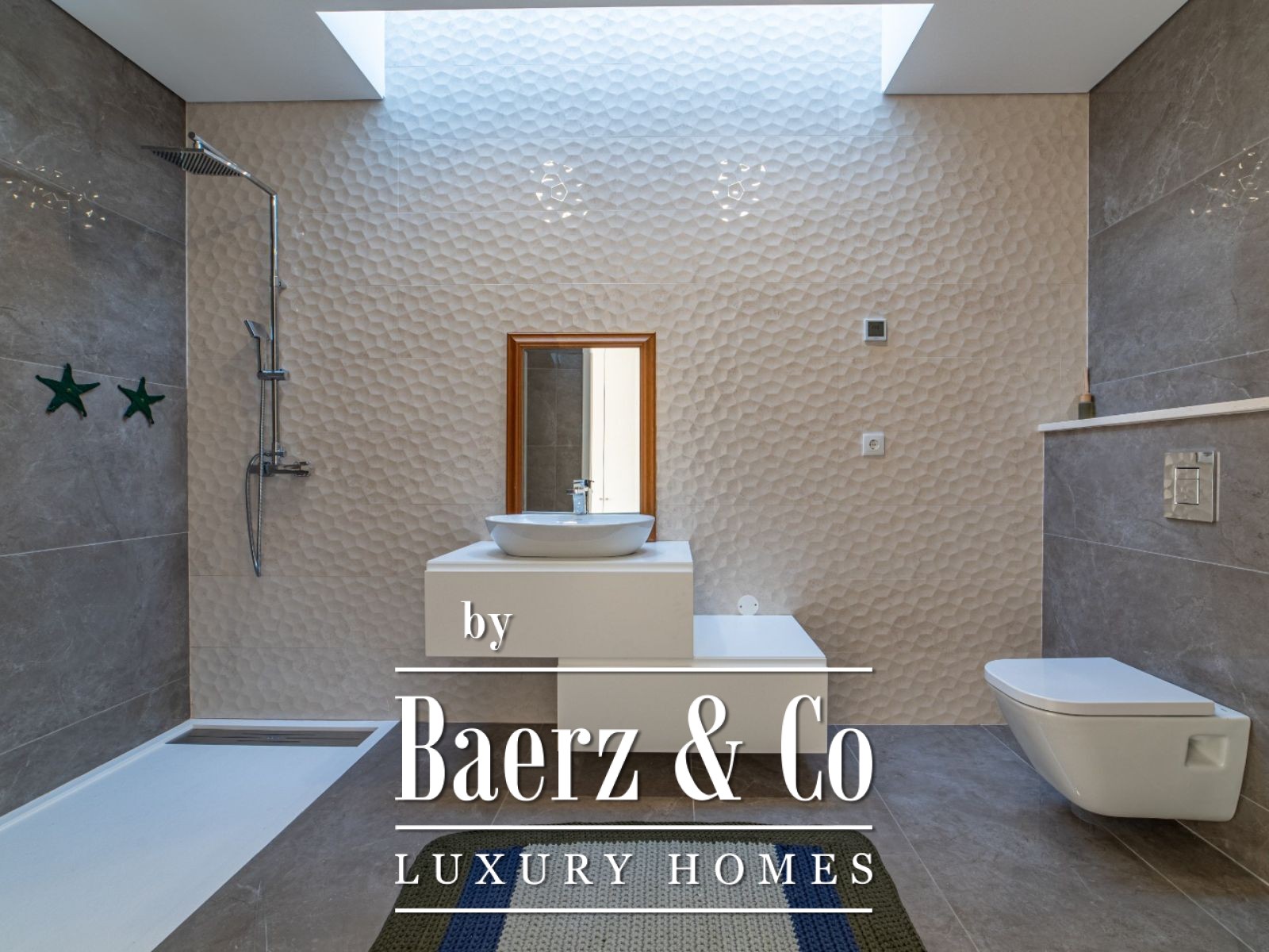De vier suites onderscheiden zich door royale afmetingen, hoogwaardige afwerkingen en een overvloed aan daglicht. De hoofdwoon- en eetkamer strekt zich uit over 110 m² en staat direct in verbinding met een open keuken, waardoor een open en vloeiende leefruimte ontstaat, perfect voor dagelijks gebruik of het ontvangen van gasten. Een wintertuin en meerdere aangelegde tuinen versterken de ruimtelijke beleving. Comfort staat centraal dankzij airconditioning, centrale verwarming en een energieklasse A.