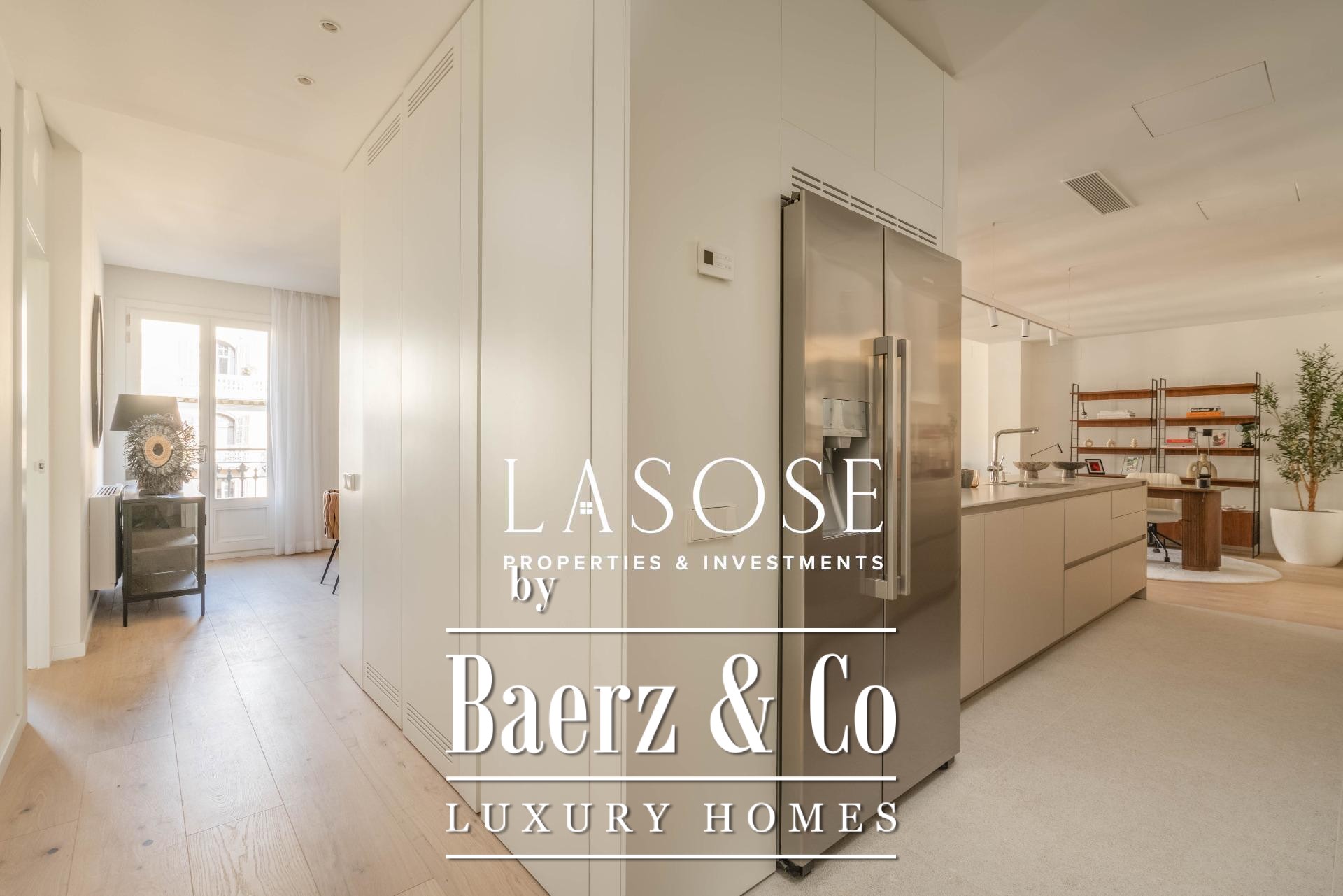 Binnen deze muren vloeit het licht moeiteloos tussen de ruimtes, waardoor zuivere lijnen en royale proporties extra worden geaccentueerd. Het gebouw integreert naadloos in het karakteristieke ritme van Eixample, waar achthoekige bouwblokken, brede lanen en ongeëvenaarde verbindingen het tempo bepalen van het hedendaagse leven in Barcelona. Voorzieningen zijn onder andere lifttoegang, inbouwkasten en een aparte wasruimte, alles zonder concessies ingericht.