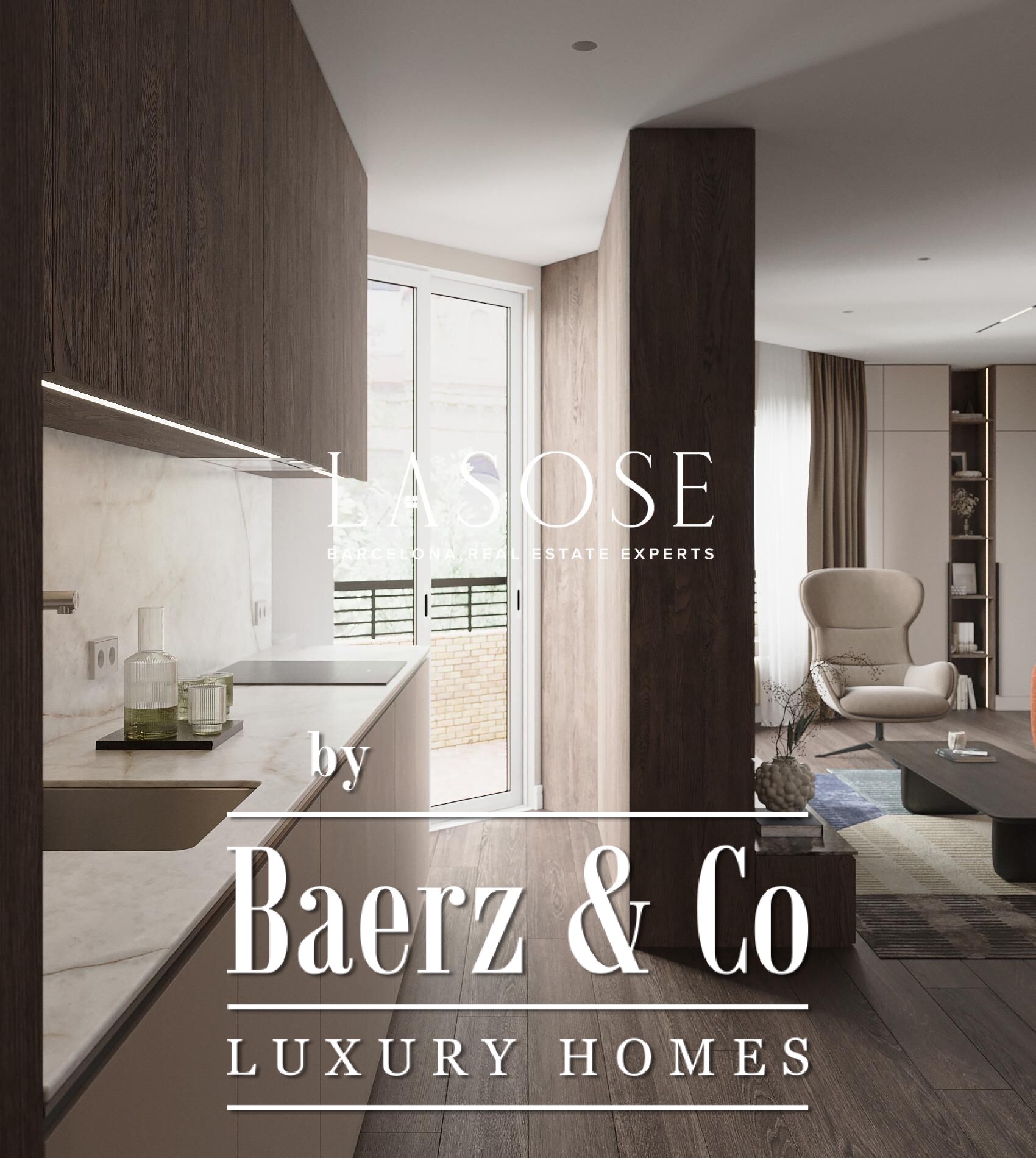 Appartement Barcelona in L’Eixample Dreta biedt 134 m² aan verfijnde woonruimte en weerspiegelt het samenspel van traditie en moderniteit dat deze iconische wijk kenmerkt. De indeling wordt bepaald door twee terrassen van elk 5,22 m², die overvloedig daglicht binnenlaten in de royale woon- en eetkamer, met uitzicht op de levendige straten beneden. Deze openheid loopt door in de keuken, voorzien van Bosch-apparatuur en een naadloze mix van functionaliteit en hedendaags design.