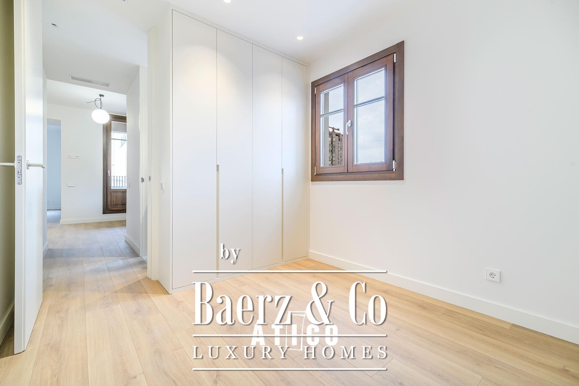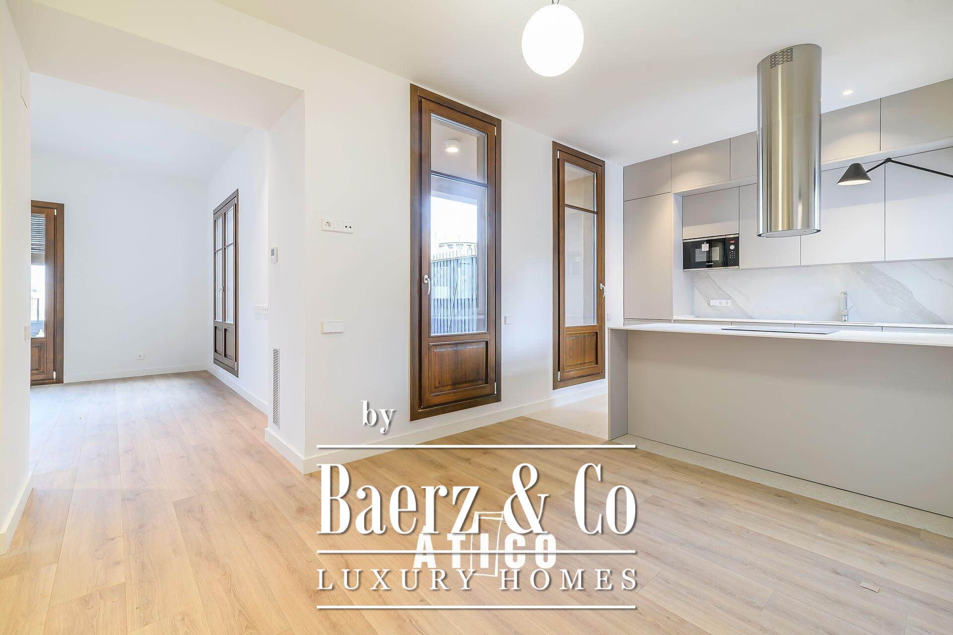 Penthouse Barcelona in het Gouden Kwartier biedt een zeldzame kans op modern stadswonen in een prestigieuze en historische omgeving. Dit gloednieuwe penthouse is volledig gerenoveerd en onthult 89,22 m² lichte, zorgvuldig ontworpen interieurs, gekenmerkt door hoogwaardige materialen en overvloedig daglicht. De doordachte indeling maximaliseert het comfort en geeft elk vertrek een eigen functie, van de uitnodigende woonkamer tot de moderne keuken met veel bergruimte.