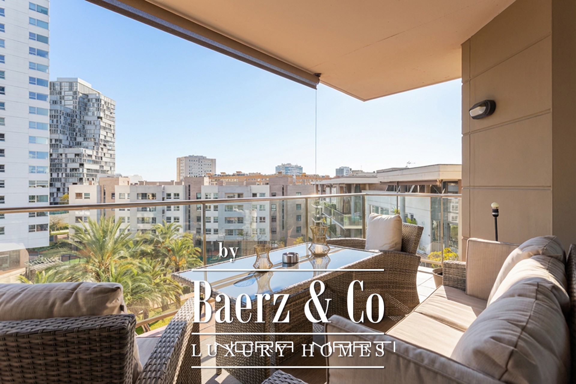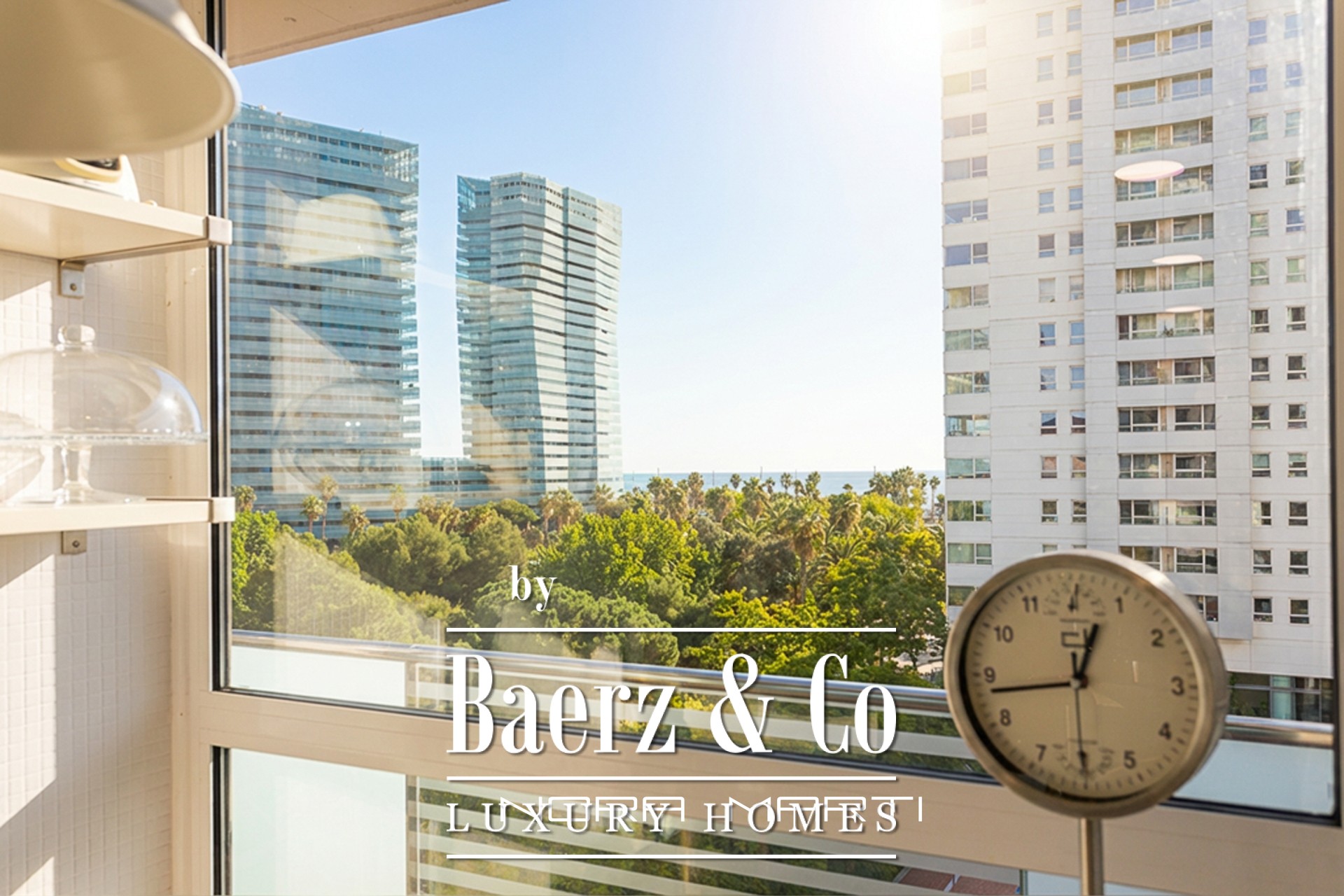 Appartement Diagonal Mar Barcelona biedt een zeldzaam gevoel van licht en rust, op slechts 500 meter van de Middellandse Zee en direct tegenover een groene, serene zone. Gevestigd in een modern, hoogwaardig gebouw, is deze volledig naar buiten gerichte woning 152 m² groot en wordt gekenmerkt door overvloedig daglicht en een royaal terras met uitzicht op zowel zee als de zorgvuldig aangelegde gemeenschappelijke tuinen.