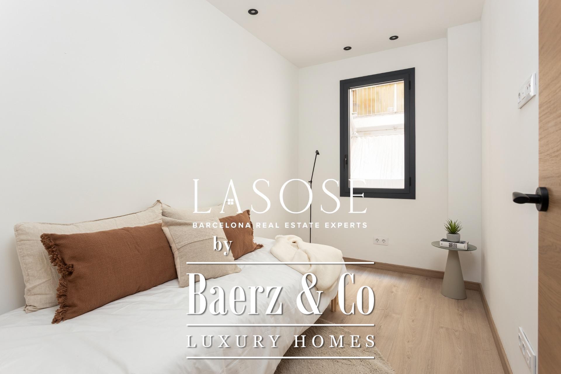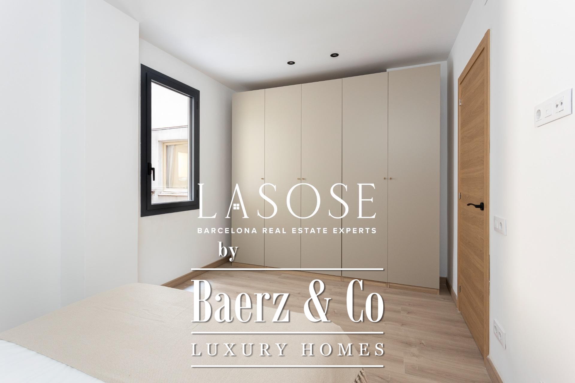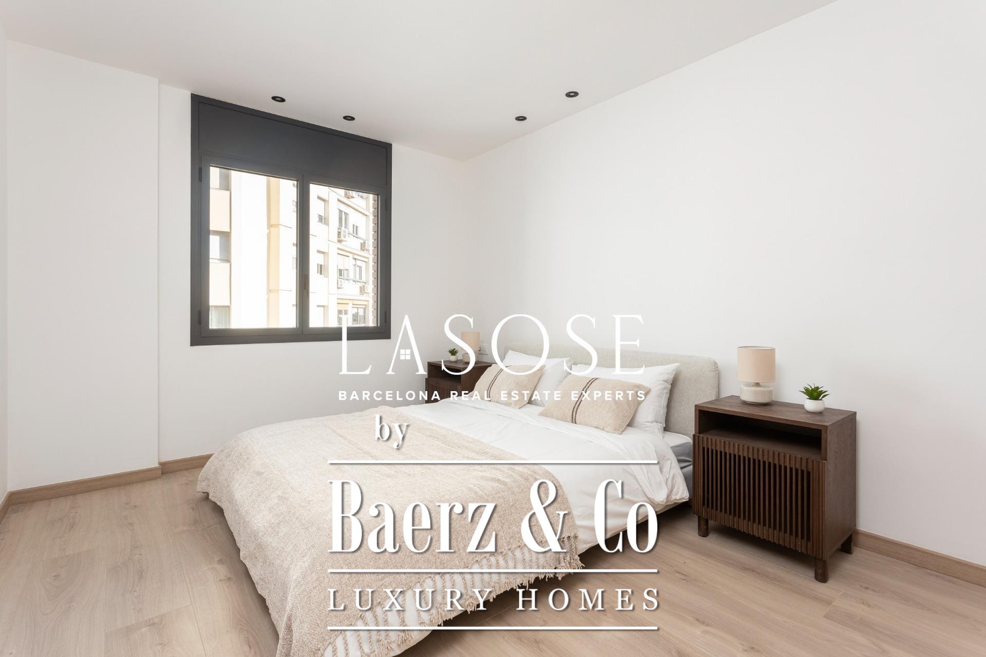 Er zijn drie slaapkamers: een mastersuite met toegang tot het terras, ingebouwde kasten en een eigen badkamer, aangevuld met een dubbele en een eenpersoonskamer. Beide badkamers zijn voorzien van geïntegreerde kranen, LED-verlichting en porseleinen details. Voorzieningen zijn onder andere een ingebouwd Mitsubishi airconditioningsysteem, geavanceerde isolatie, een aparte wasruimte en een parkeerplaats in het gebouw geschikt voor een kleine auto of motor, wat onopvallend comfort biedt in het hart van Barcelona. Dit luxe appartement te koop in Barcelona belichaamt de balans tussen modern design en stedelijk wooncomfort.