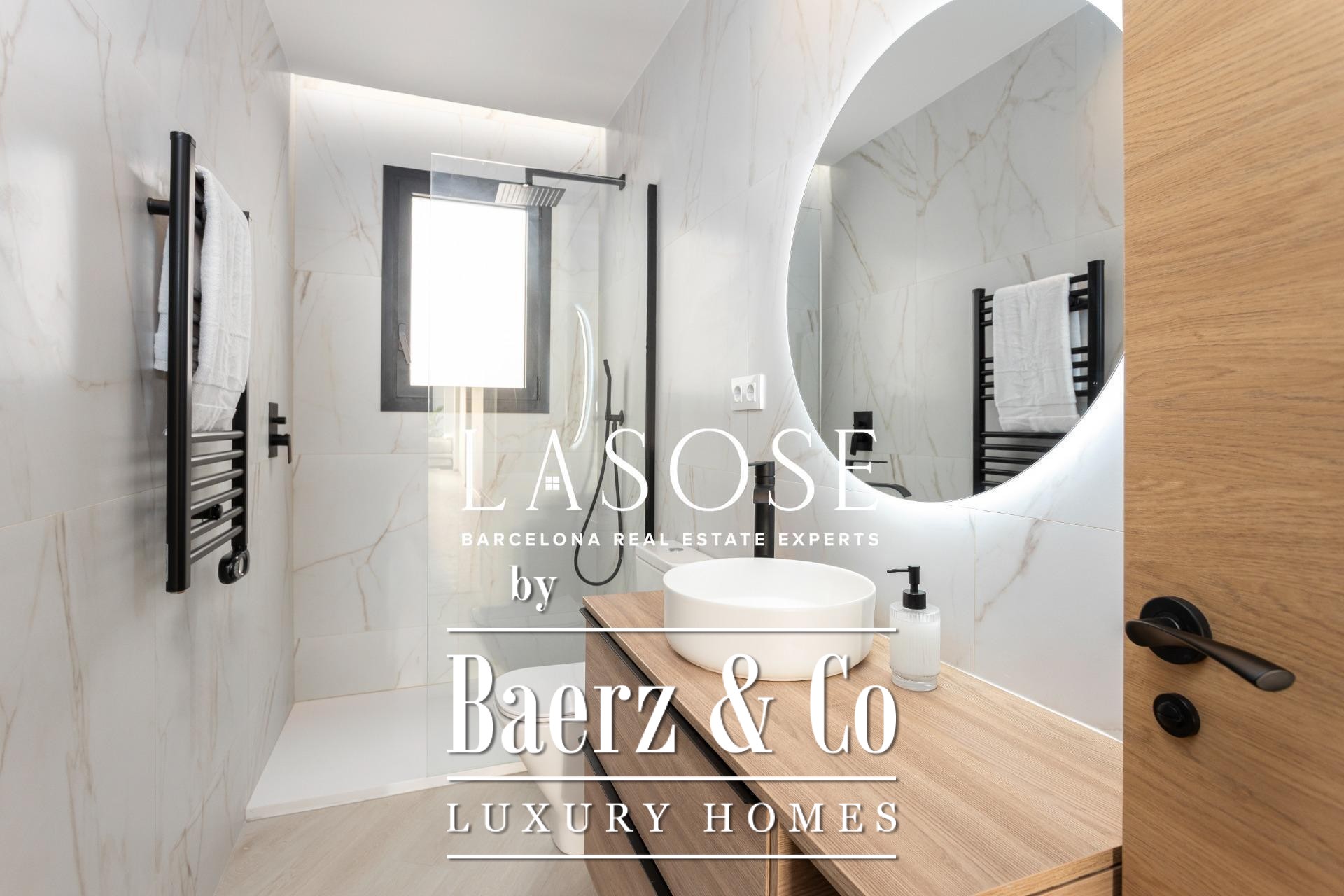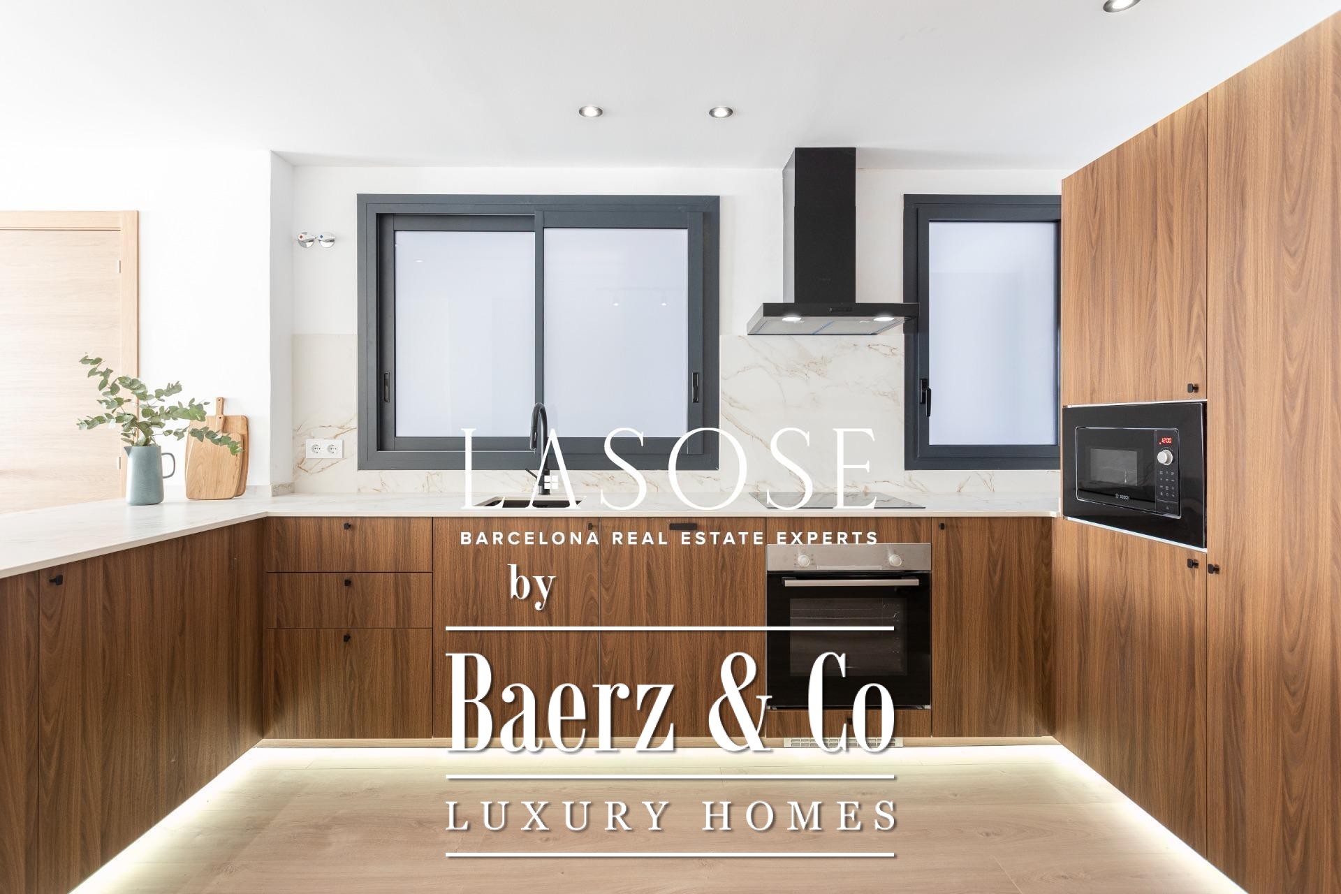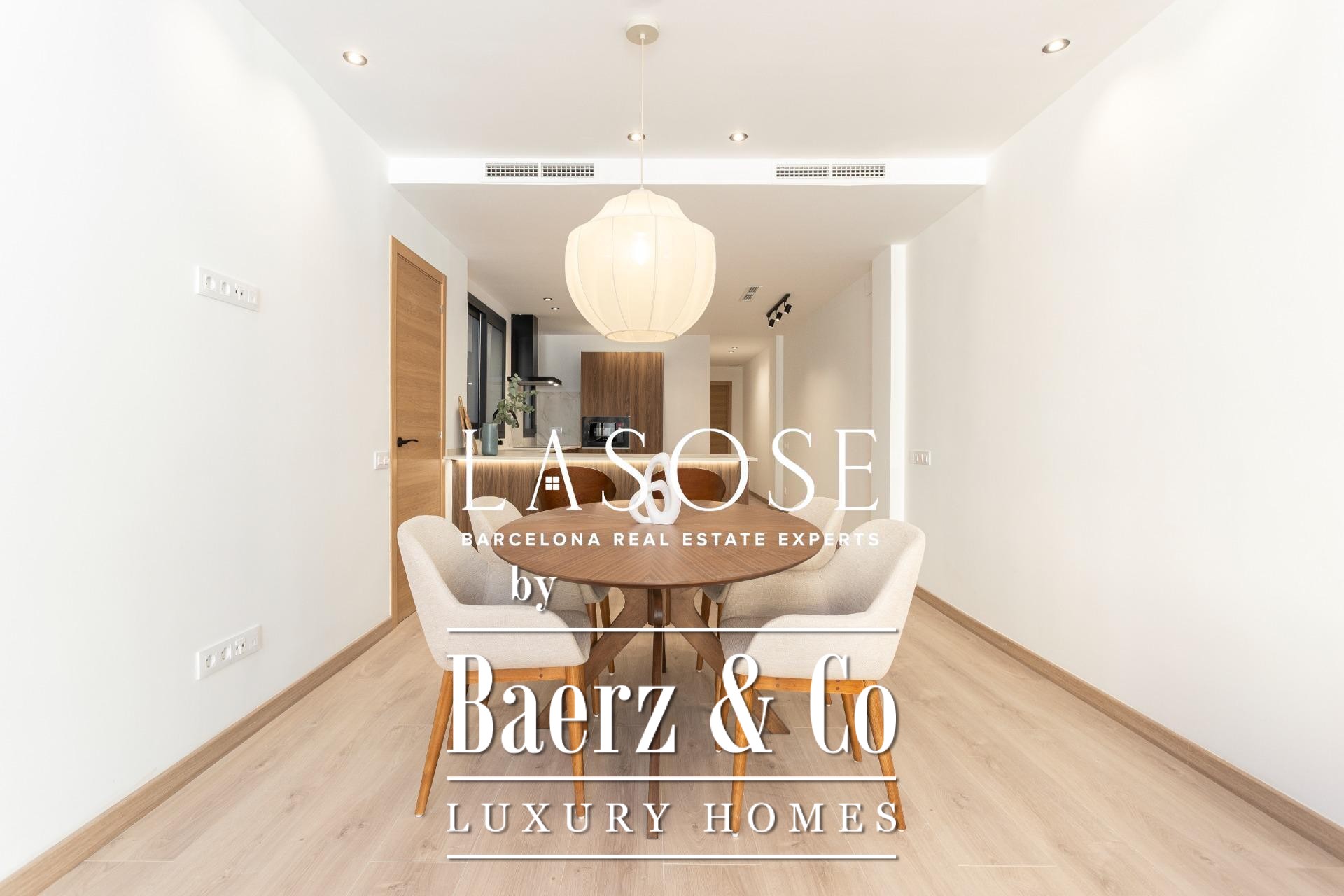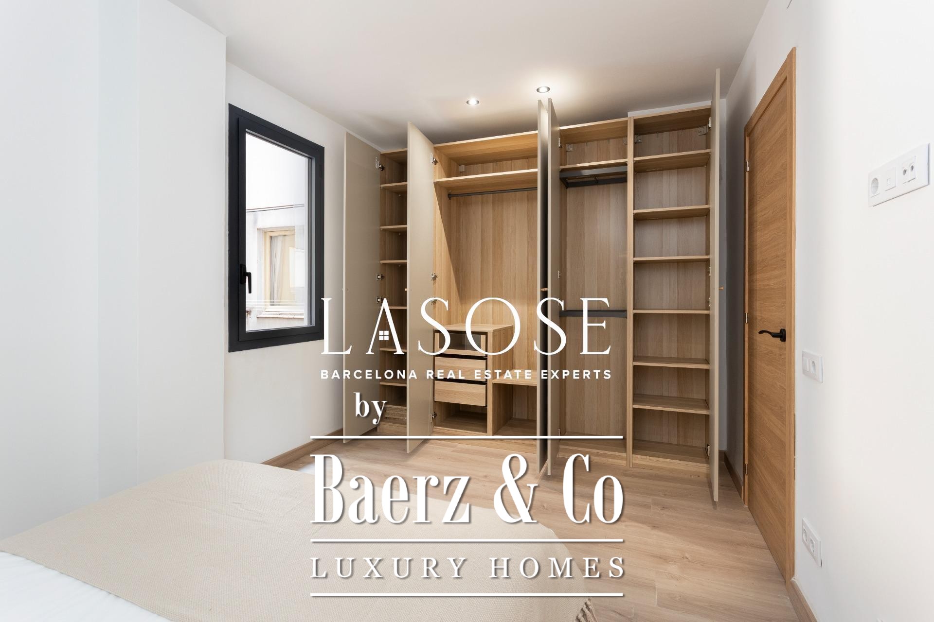 Er zijn drie slaapkamers: een mastersuite met toegang tot het terras, ingebouwde kasten en een eigen badkamer, aangevuld met een dubbele en een eenpersoonskamer. Beide badkamers zijn voorzien van geïntegreerde kranen, LED-verlichting en porseleinen details. Voorzieningen zijn onder andere een ingebouwd Mitsubishi airconditioningsysteem, geavanceerde isolatie, een aparte wasruimte en een parkeerplaats in het gebouw geschikt voor een kleine auto of motor, wat onopvallend comfort biedt in het hart van Barcelona. Dit luxe appartement te koop in Barcelona belichaamt de balans tussen modern design en stedelijk wooncomfort.