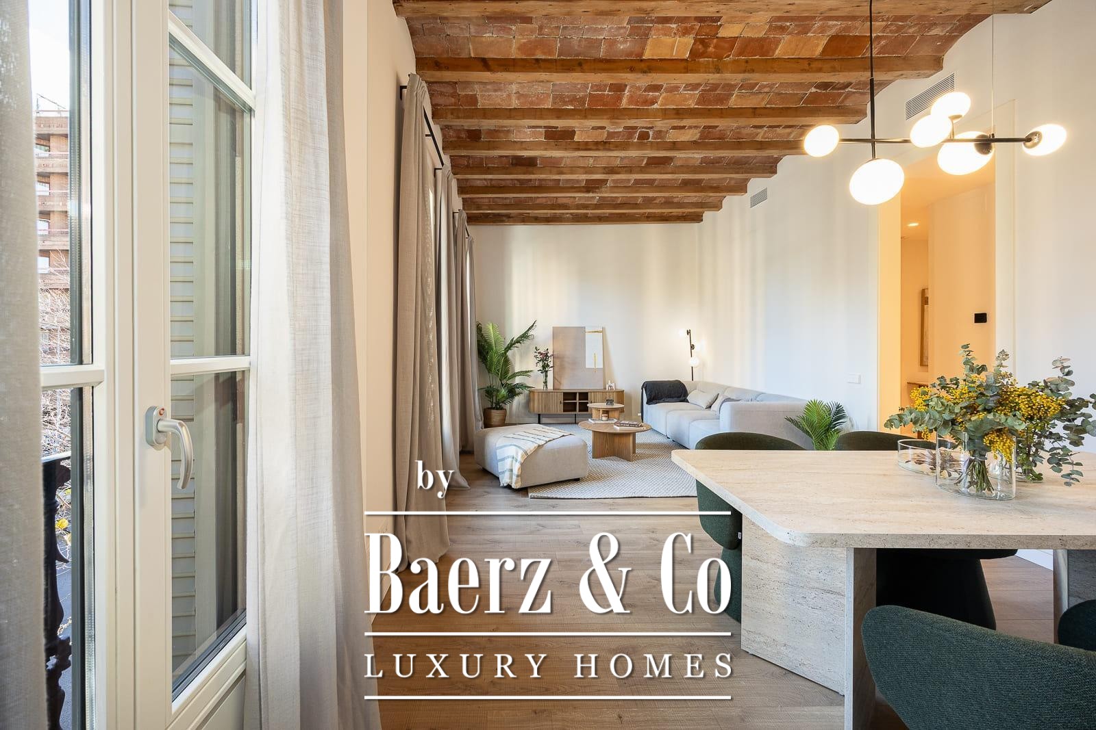 Appartement Barcelona Eixample Esquerra staat voor verfijning in een volledig gerestaureerd pand uit 1892 aan de Aribau-straat, gelegen op een van de meest begeerde adressen in Barcelona. Deze woning biedt 86 m² zorgvuldig ingedeelde leefruimte, met lichte kamers en een vloeiende indeling. Meerdere buitensbalkons laten het daglicht moeiteloos door de interieurs stromen, wat voor warmte en een open, elegante sfeer zorgt.