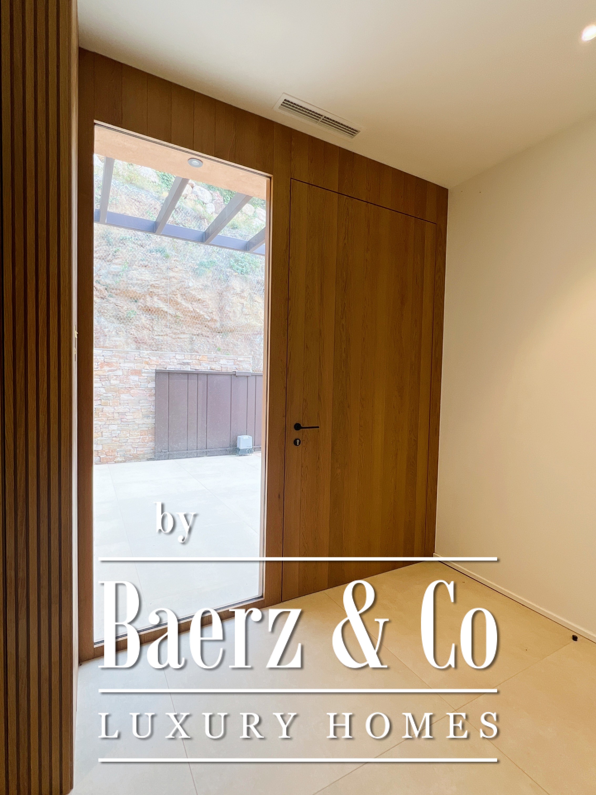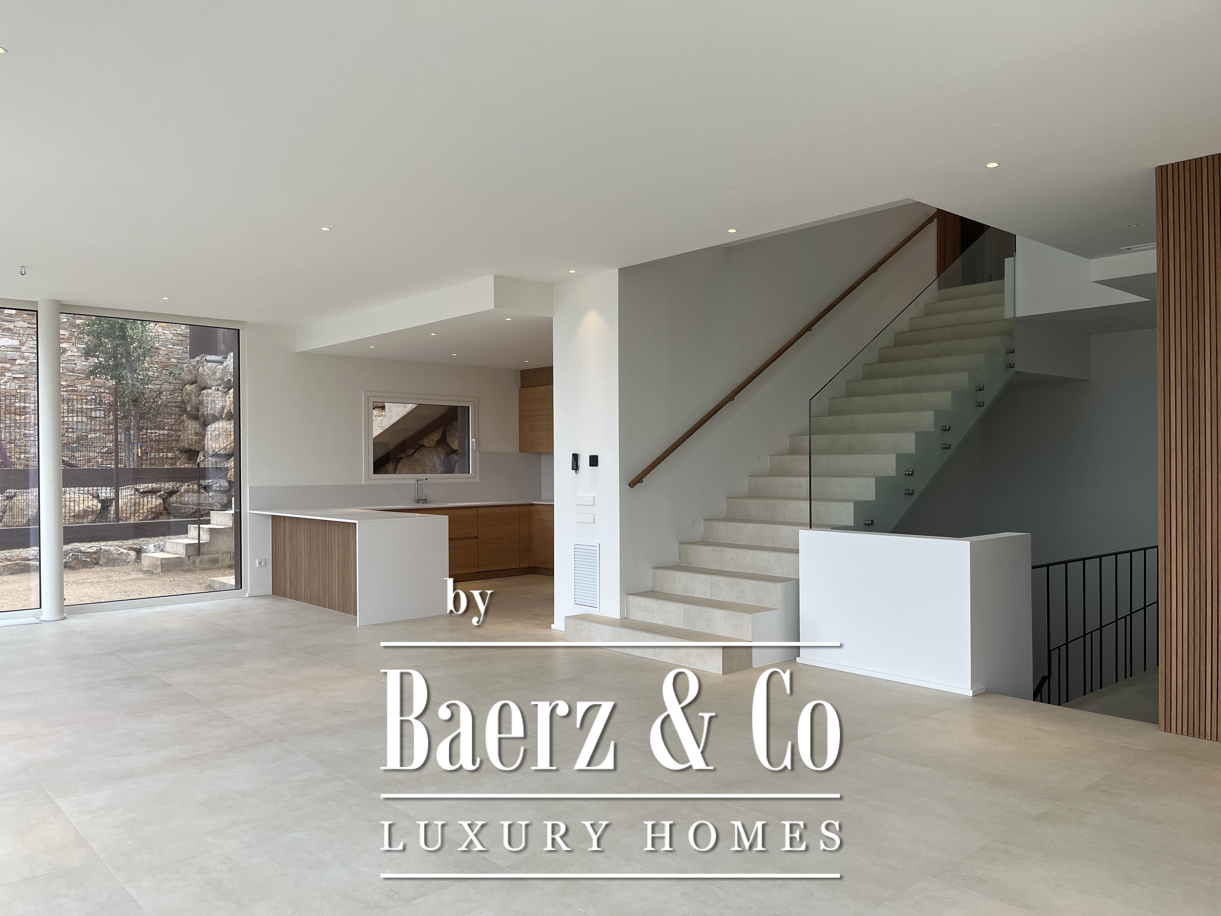 Binnen de 329 m² woonoppervlakte combineert de villa open interieurs met duurzame materialen, waarbij kamerhoge ramen iedere ruimte verbinden met zee en hemel. De architectuur kenmerkt zich door helderheid en ingetogenheid, gericht op individuele wensen, waardoor elke woning net zo uniek is als het omliggende landschap. De villa beschikt over vier slaapkamers, drie badkamers, een zorgvuldig aangelegde tuin, zwembad, privéparkeerplaats en een dakterras. Slimme domotica, beveiligingssystemen, airconditioning en een aparte speelkamer maken het geheel compleet.