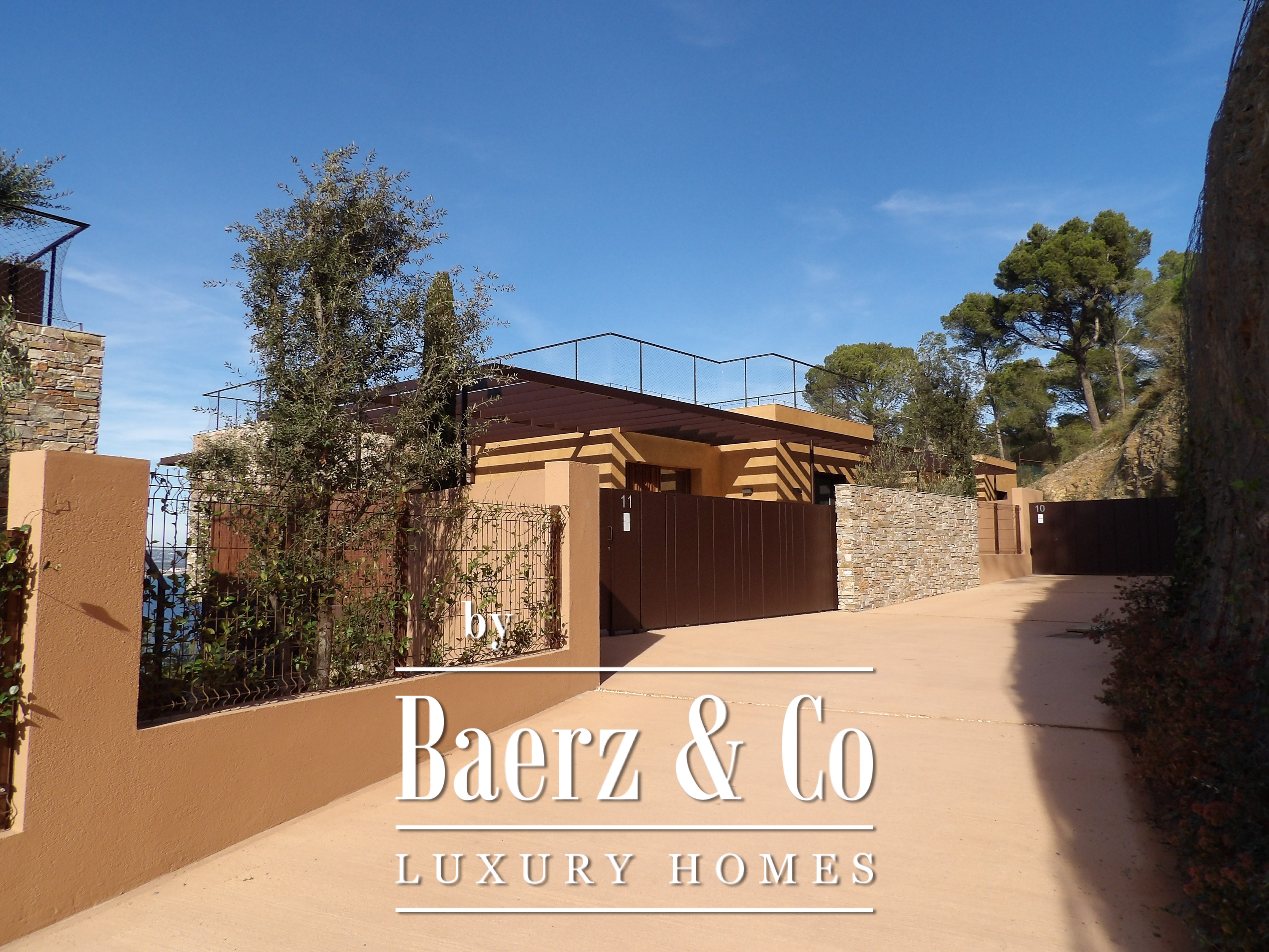 Villa Begur ligt rustig boven de pijnboomrijke kliffen van Sa Riera en biedt onbelemmerd uitzicht op de Middellandse Zee en de verre toppen van de Pyreneeën. Deze villa maakt deel uit van een exclusief ensemble van slechts zes eigentijdse woningen, elk ontworpen in harmonie met het natuurlijke ritme van de kust van de Costa Brava.