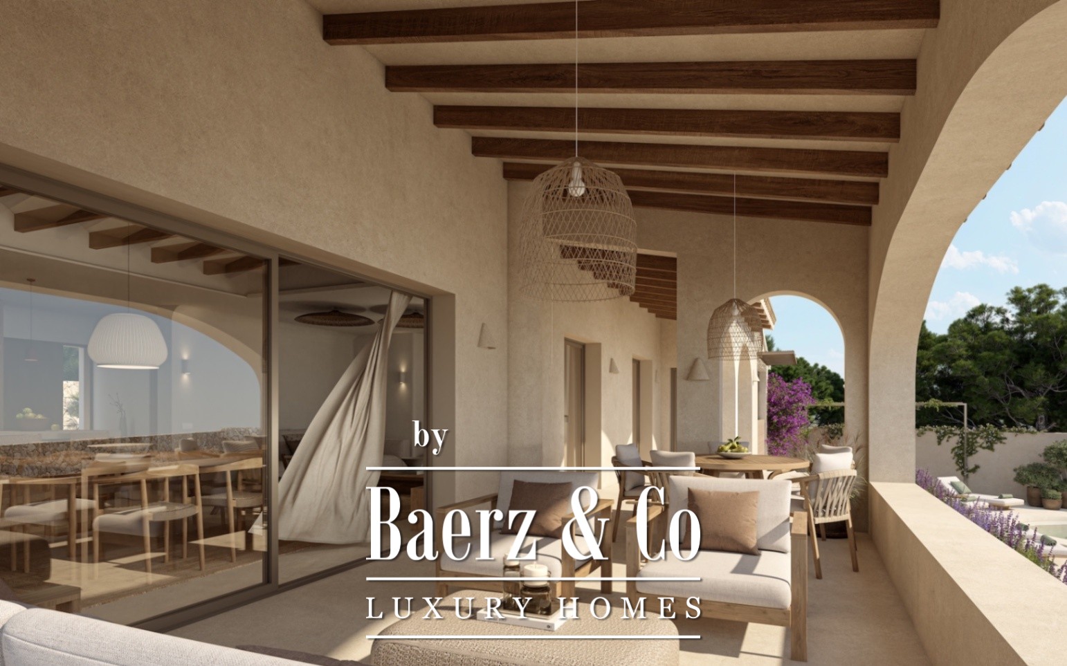 Het buitenleven staat centraal in het concept: meerdere overdekte veranda's en pergola's, een barbecueplek en een zwembad met ruime zonneterrassen bieden veelzijdige ruimtes voor ontspanning en vermaak. Alles is omlijst door mediterrane beplanting die het gevoel van privacy en rust versterkt.