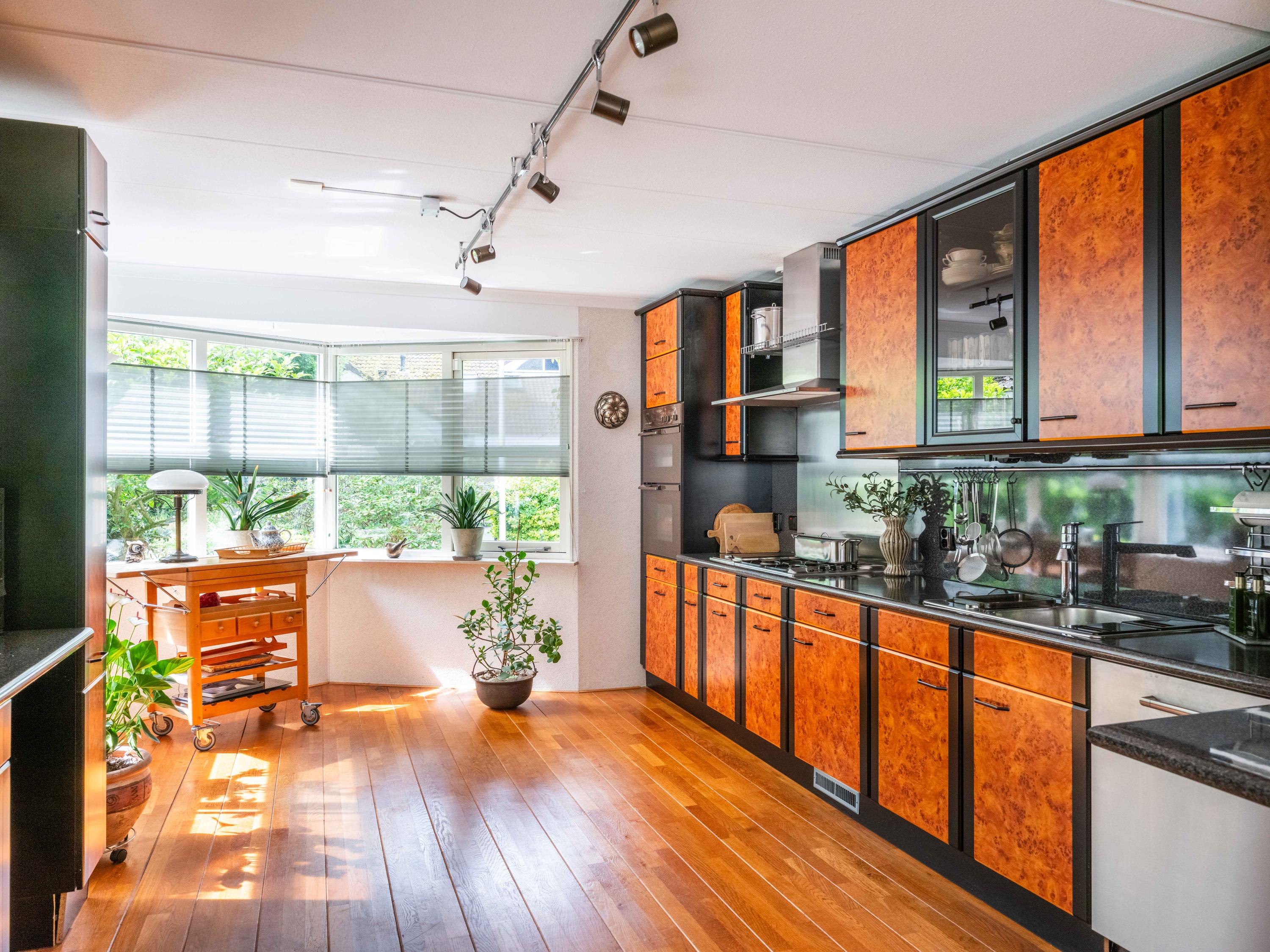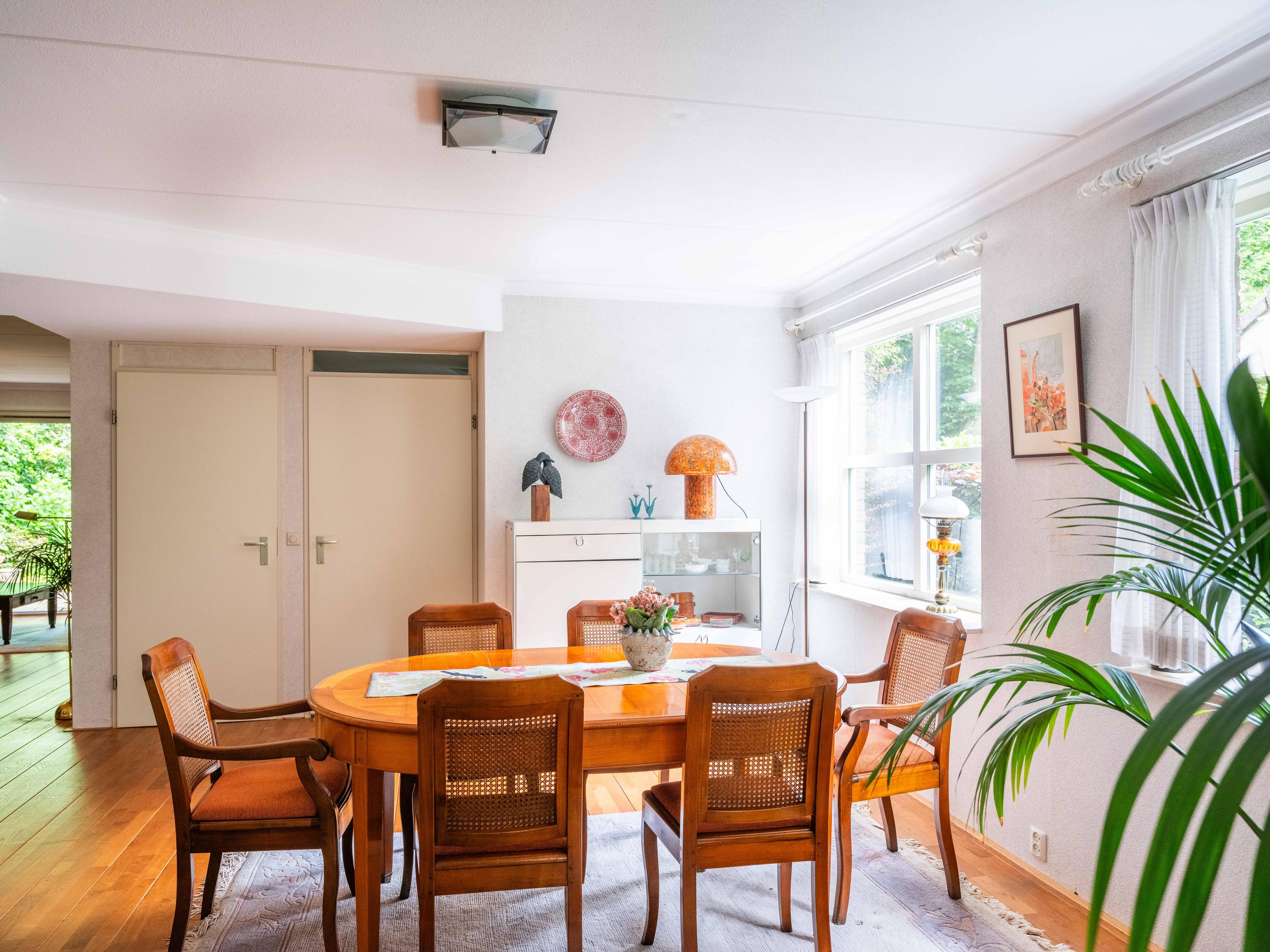Via de grote schuifpui stapt u zo de zonnige, beschutte achtertuin in, een heerlijke plek om te genieten van rust en privacy, met een terras en uitzicht op de vijverpartij. De fraai aangelegde, zonnige tuin is een oase van rust en privacy. Het terras grenst aan het exclusieve, mandelige park met vijverpartijen – een unieke plek waar u volop kunt genieten van de natuur. Het park is uitsluitend toegankelijk voor omwonenden.