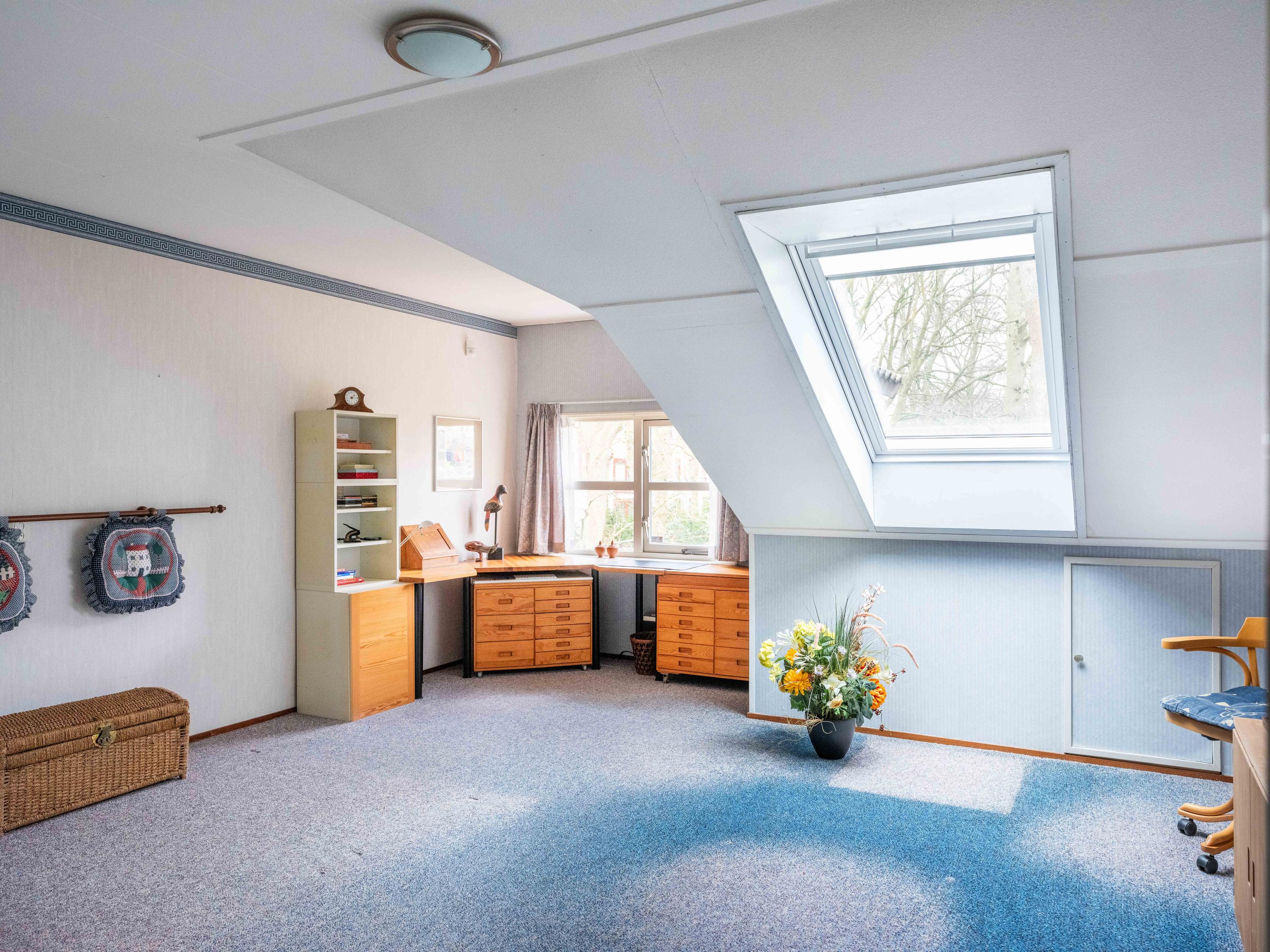 De eerste verdieping met dakkapellen biedt drie slaapkamers, waaronder een bijzonder ruime master bedroom. Daarnaast is er een tweede badkamer met douche, toilet, wastafel en wasmachine-aansluiting. Extra bergruimte en een separate stookruimte met wasmachine-aansluiting en toegang tot extra bergruimte maken het plaatje compleet.