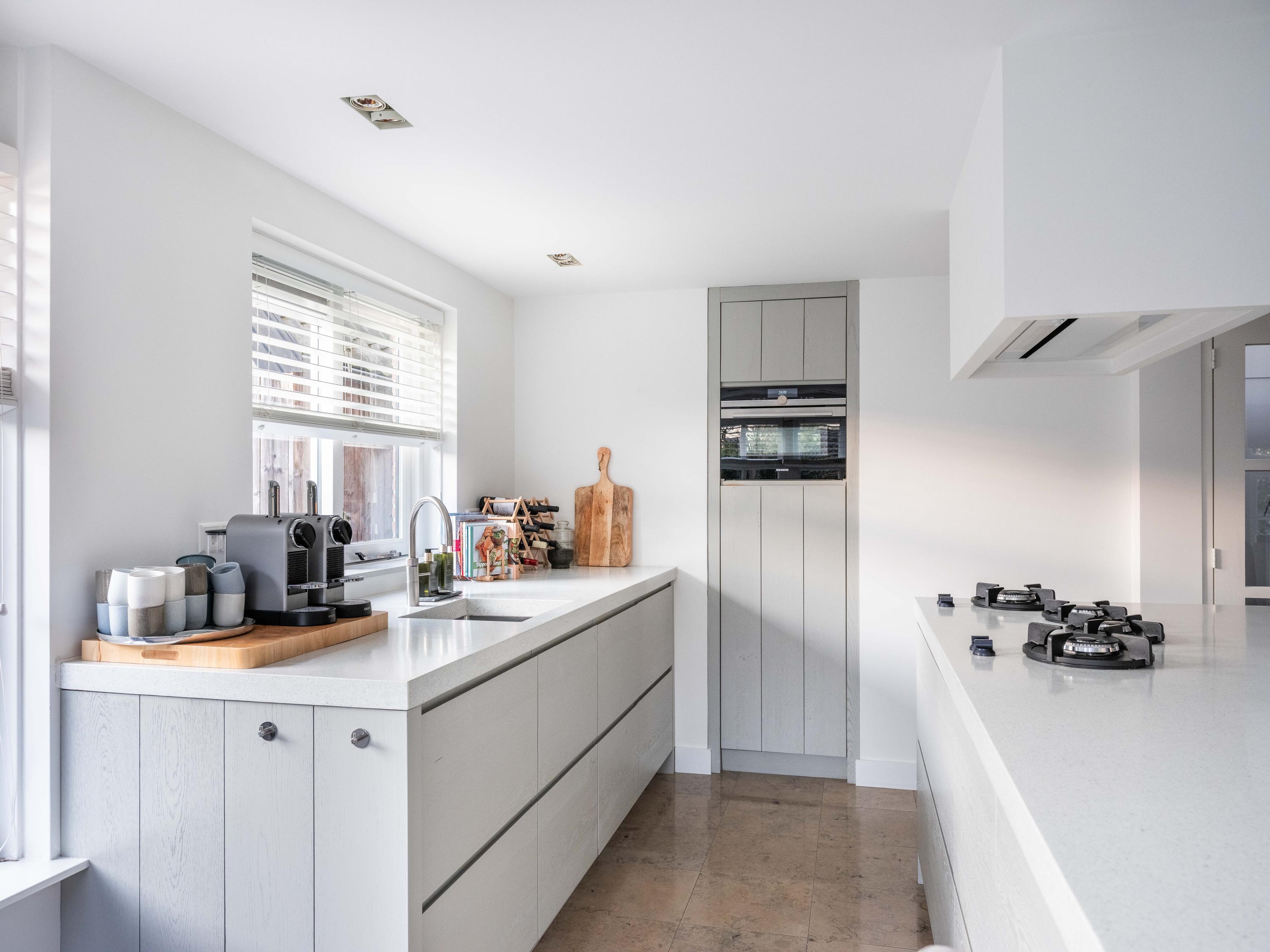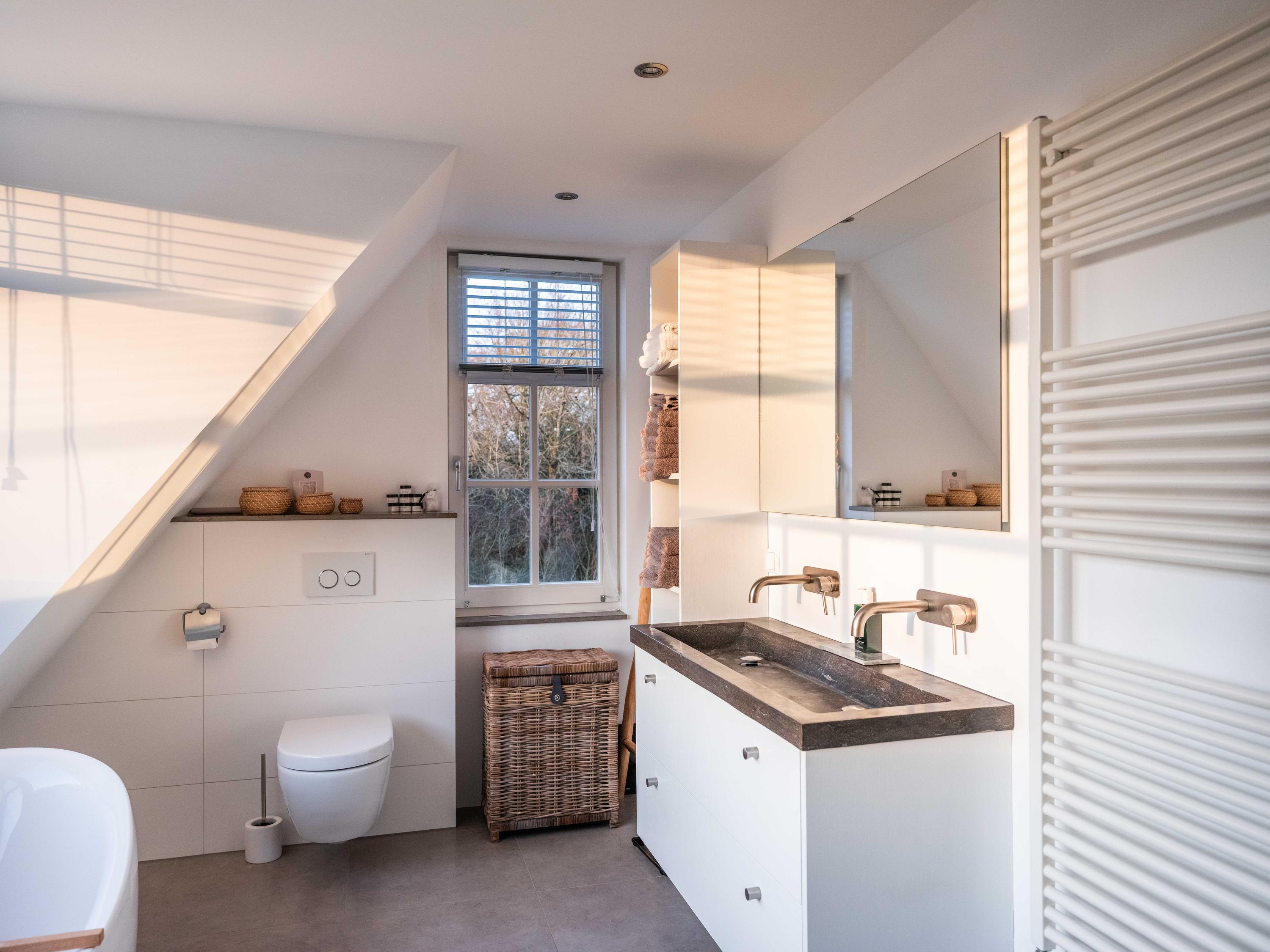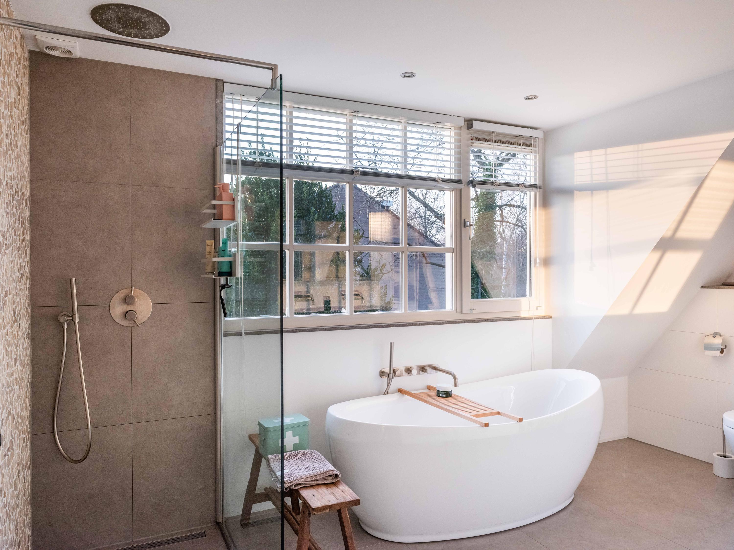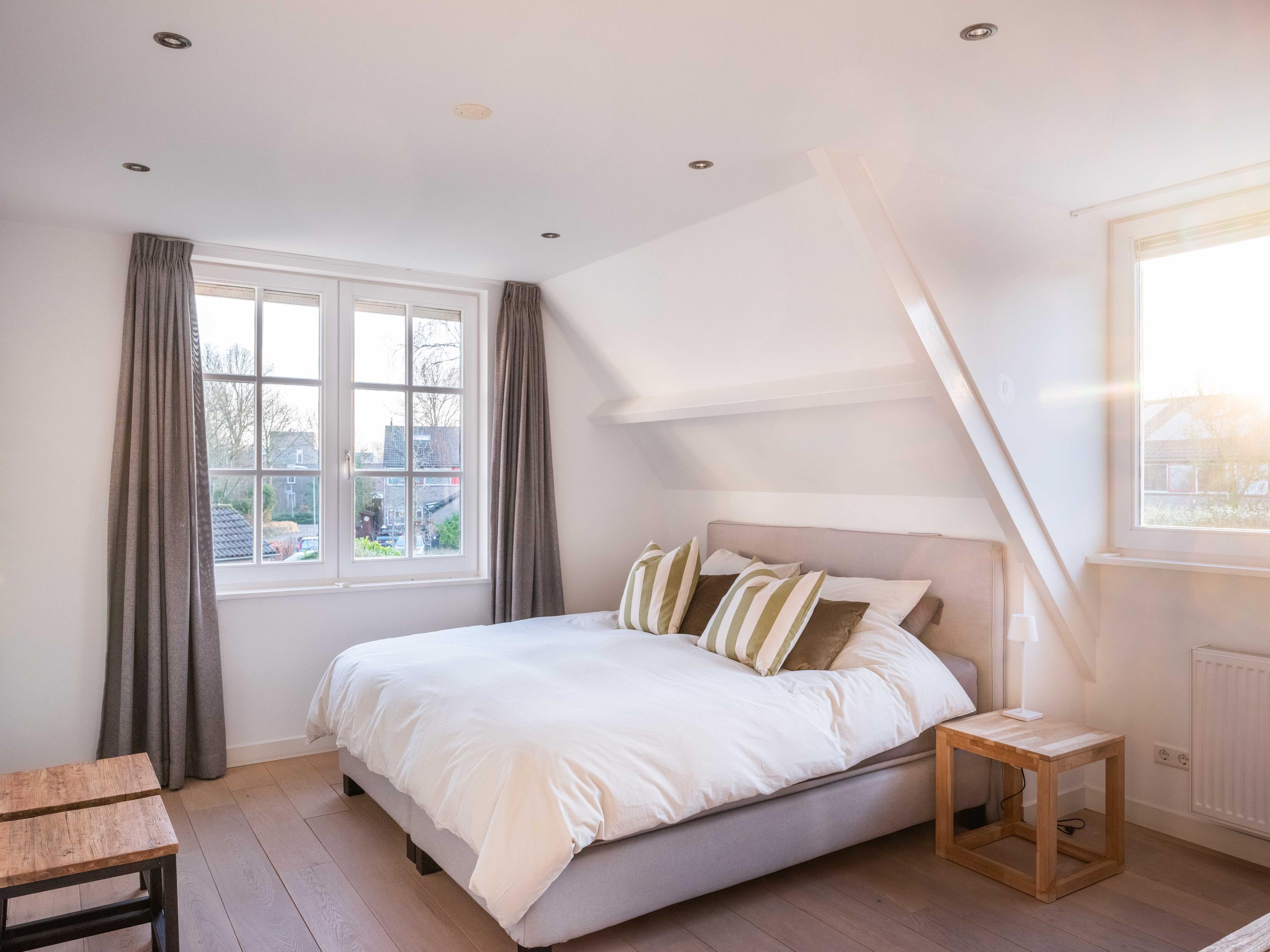De eerste verdieping biedt door de dakkapellen drie goed bemeten slaapkamers, elk met een eigen sfeer en voorzien van maatwerkkasten. De luxe badkamer is stijlvol afgewerkt met natuurlijke materialen, en ook hier is gekozen voor kwaliteit en rust. In het hele huis is duidelijk zichtbaar dat er met zorg en smaak is gewerkt aan een harmonieus geheel.