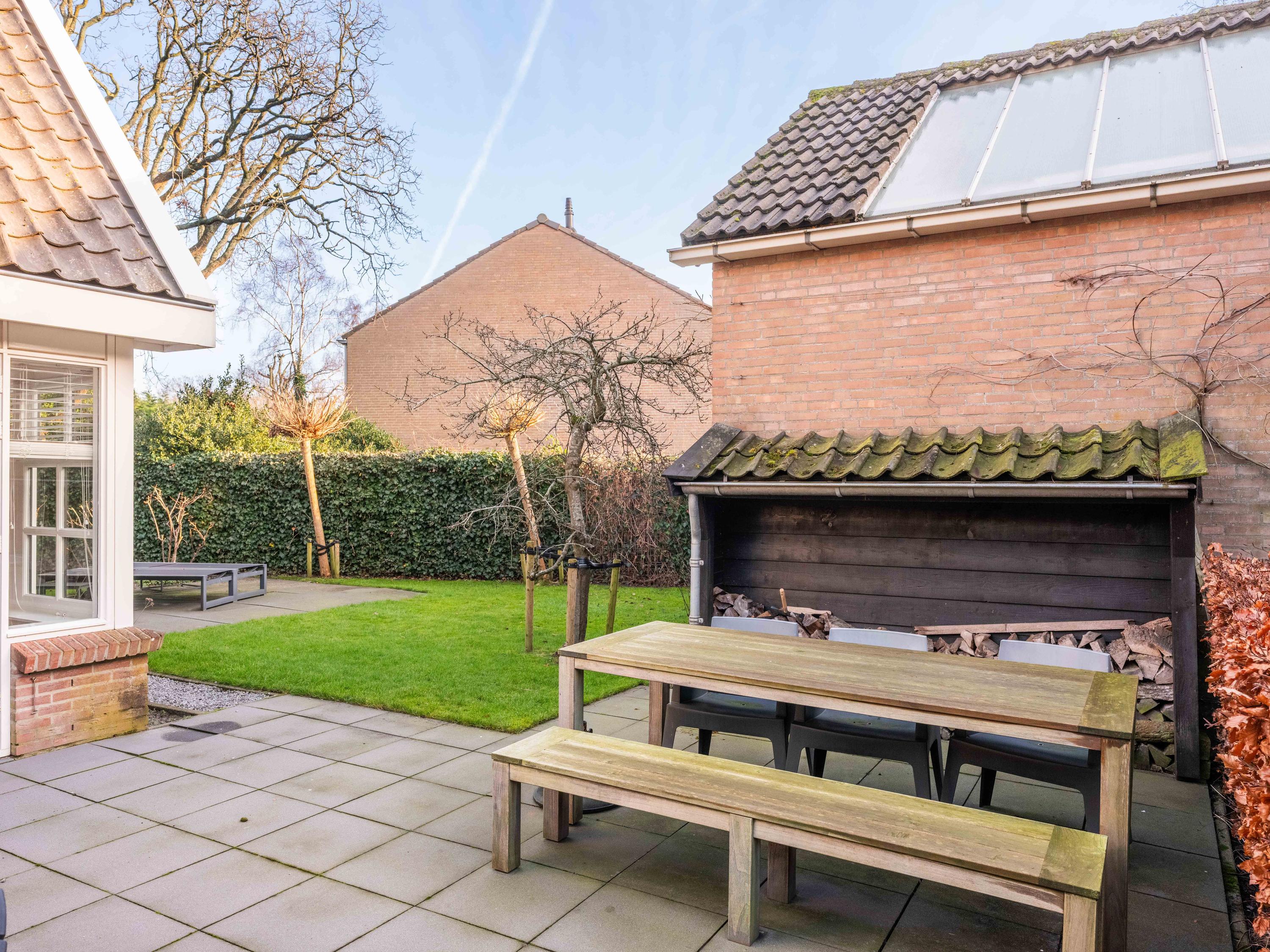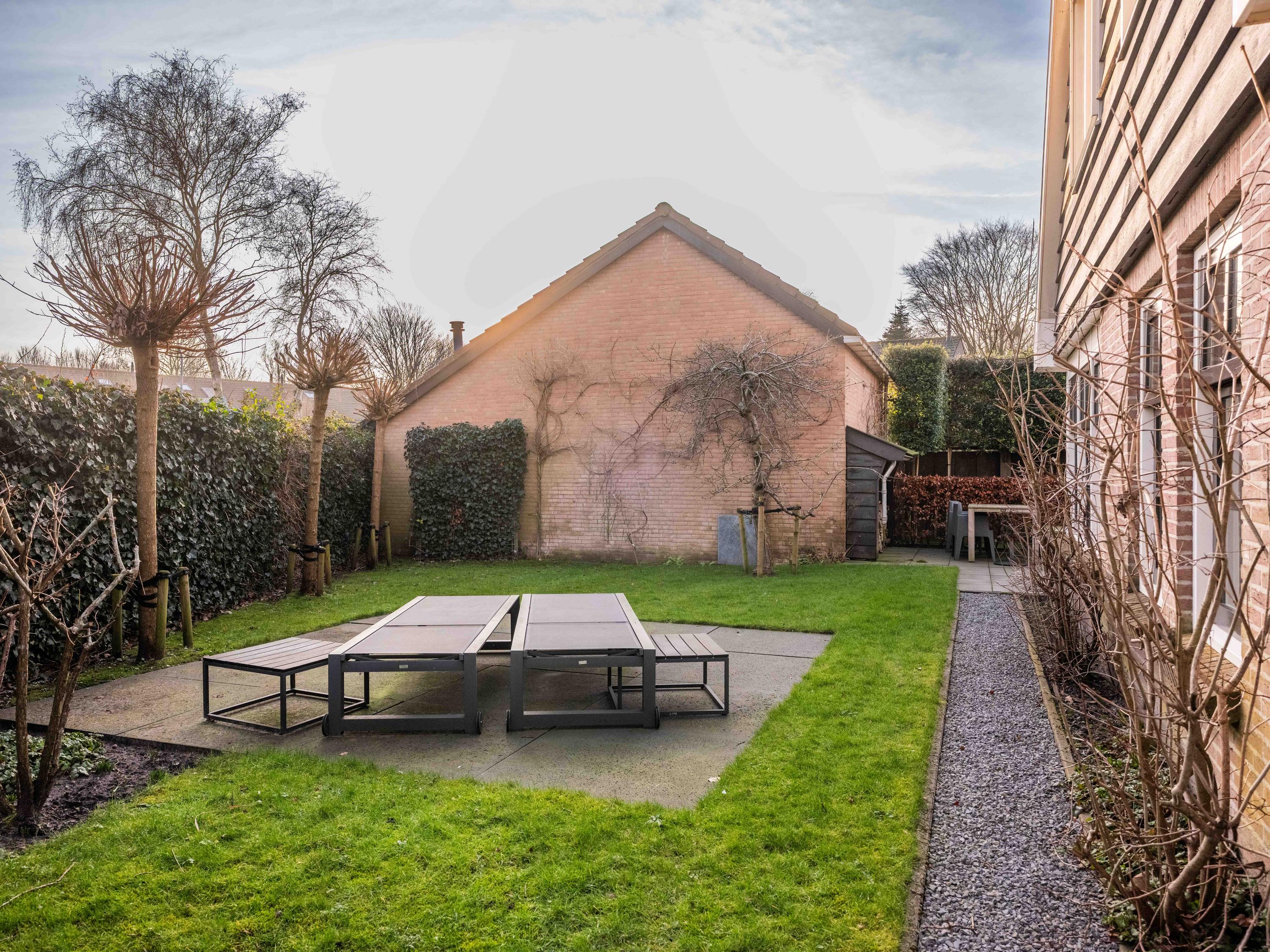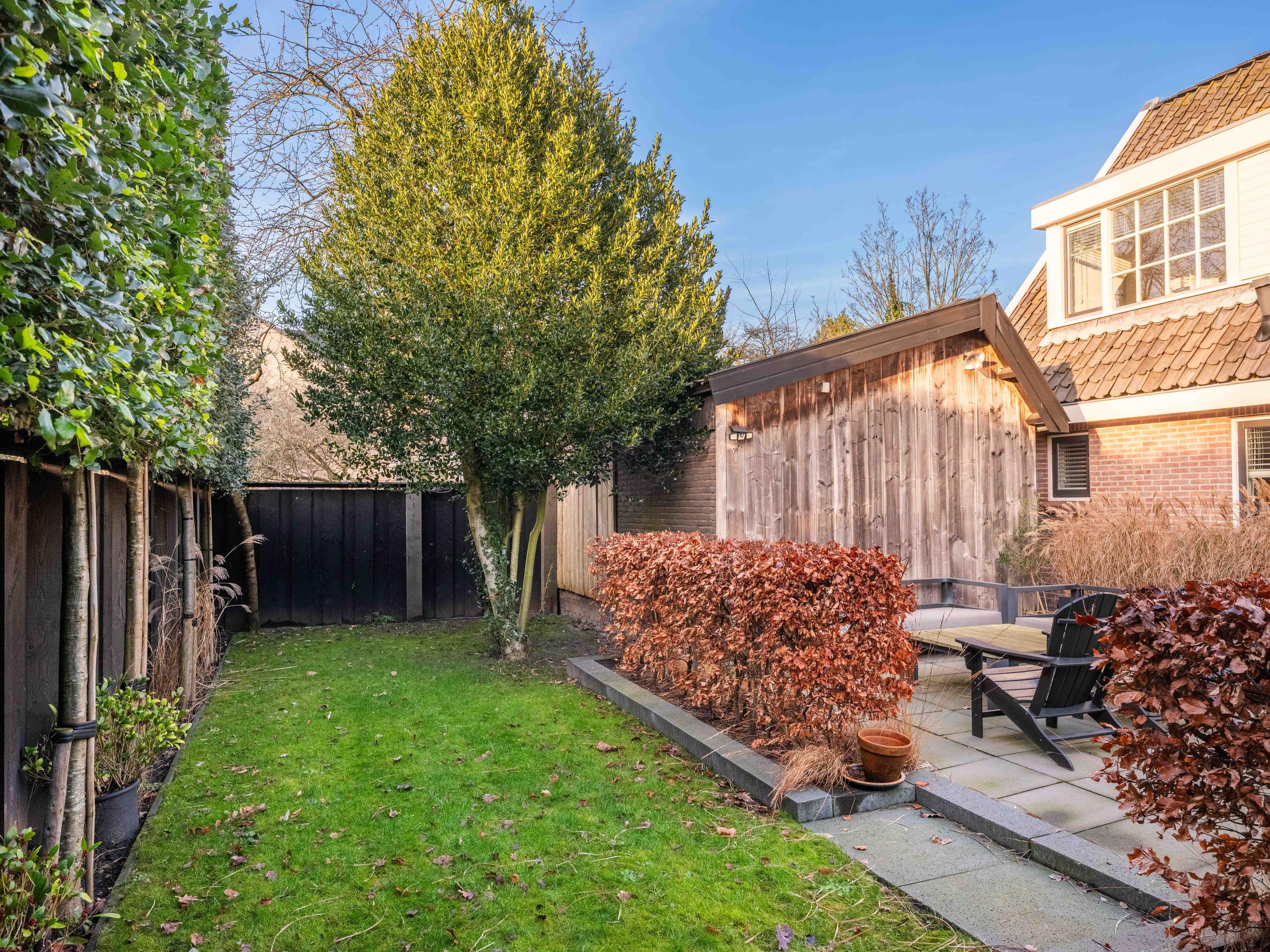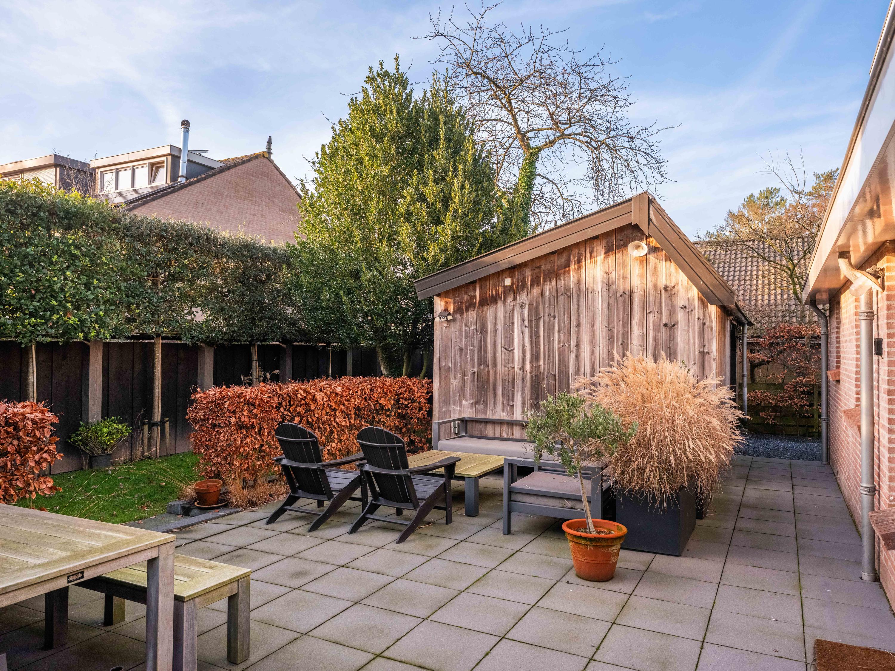 Rondom de woning ligt een prachtig aangelegde tuin met natuurlijke erfafscheiding, die volop privacy biedt. Het totale perceel meet officieel 537 m2. Aan de voorzijde bevindt zich een ruim oprijpad met parkeergelegenheid voor meerdere auto’s. Een vrijstaande berging is voorzien van een overdekte carport. De tuin grenst aan een gemeentelijk plantsoen – een ligging die een uniek gevoel van ruimte en vrijheid geeft, terwijl het centrum van Bergen slechts een paar minuten verderop ligt.