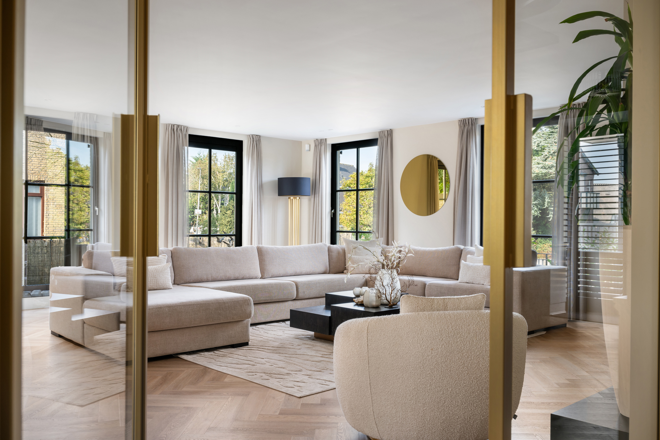 De villa is ruim opgezet over drie verdiepingen met ca. 555 m² woonoppervlakte, 5 slaapkamers, een luxe leefkeuken en een royale, lichte woonkamer. Door de ligging op de kavel voelt de woning licht, ruim en privé aan.