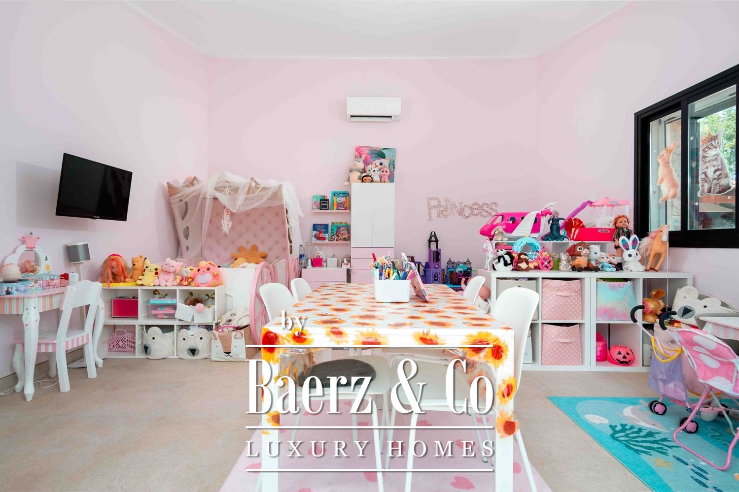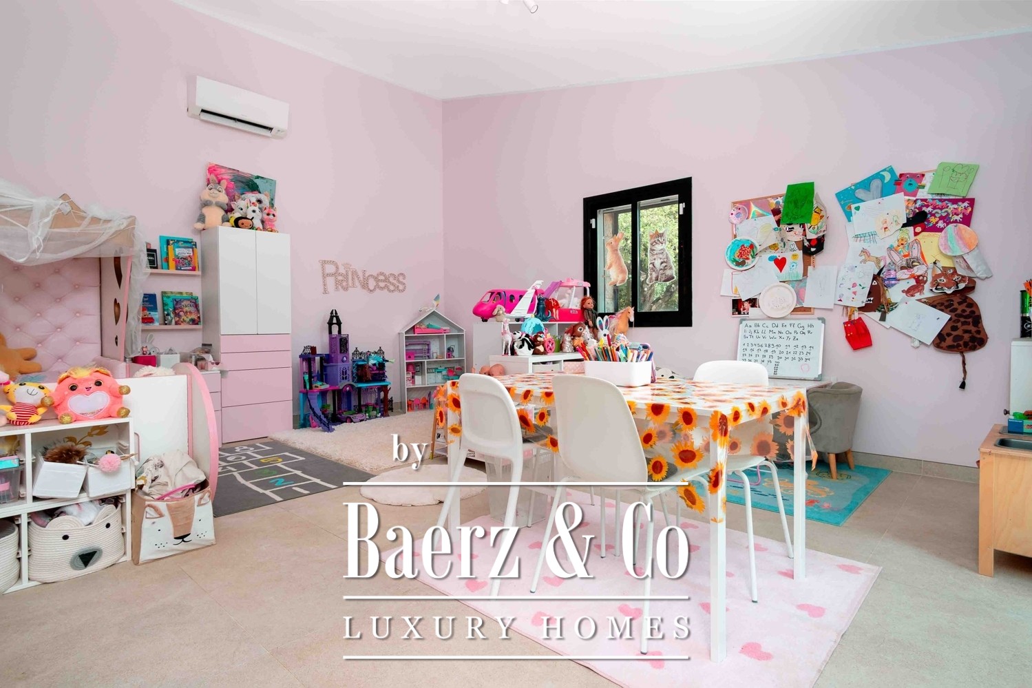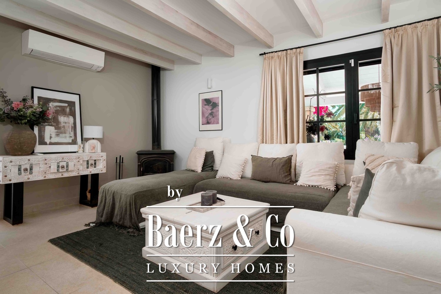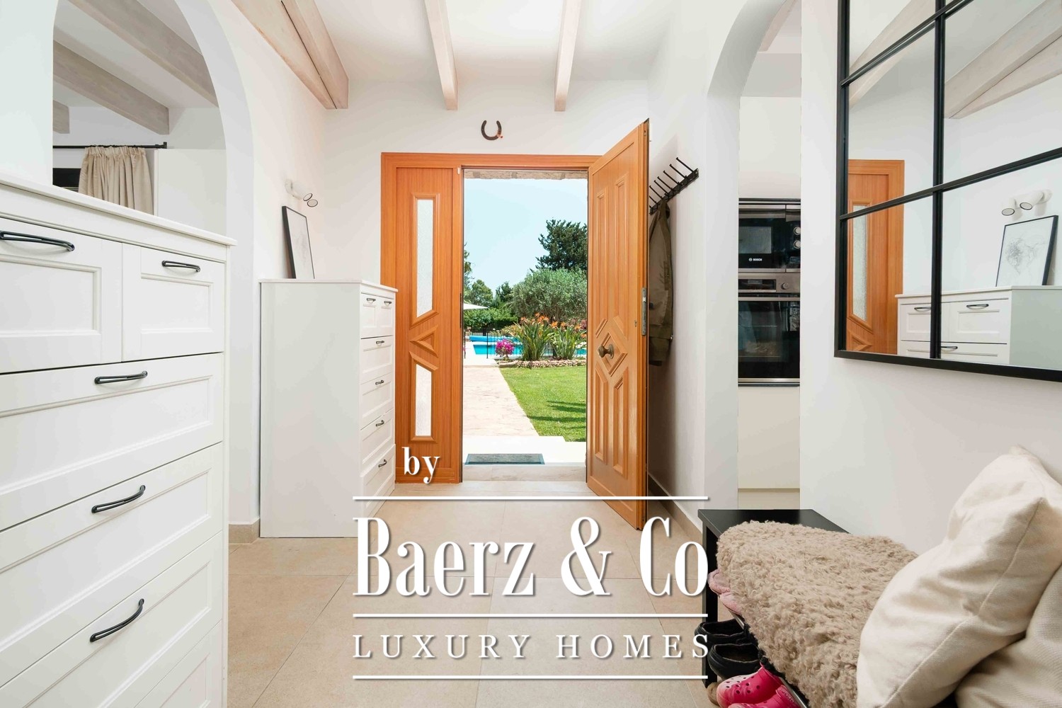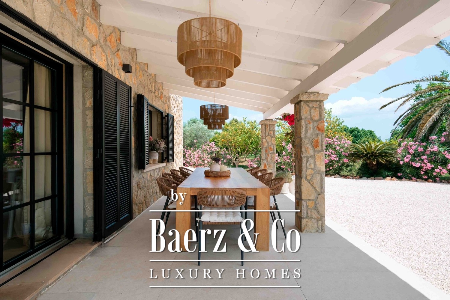Het landgoed is gesitueerd op een perceel van 11.000 m² en biedt panoramisch uitzicht over de Tramuntana-bergen en een naadloze overgang tussen binnen en buiten. Mediterraan licht vult elke ruimte, terwijl de tuin uitnodigt tot ontspannen dagen aan het 12 × 6 m zoutwaterzwembad of avonden in de buitenkeuken met barbecue en pizzaoven. Weelderige tuinen met twaalf soorten fruitbomen en een geautomatiseerd irrigatiesysteem omsluiten de terrassen, wat een sfeer van gecultiveerde rust creëert.