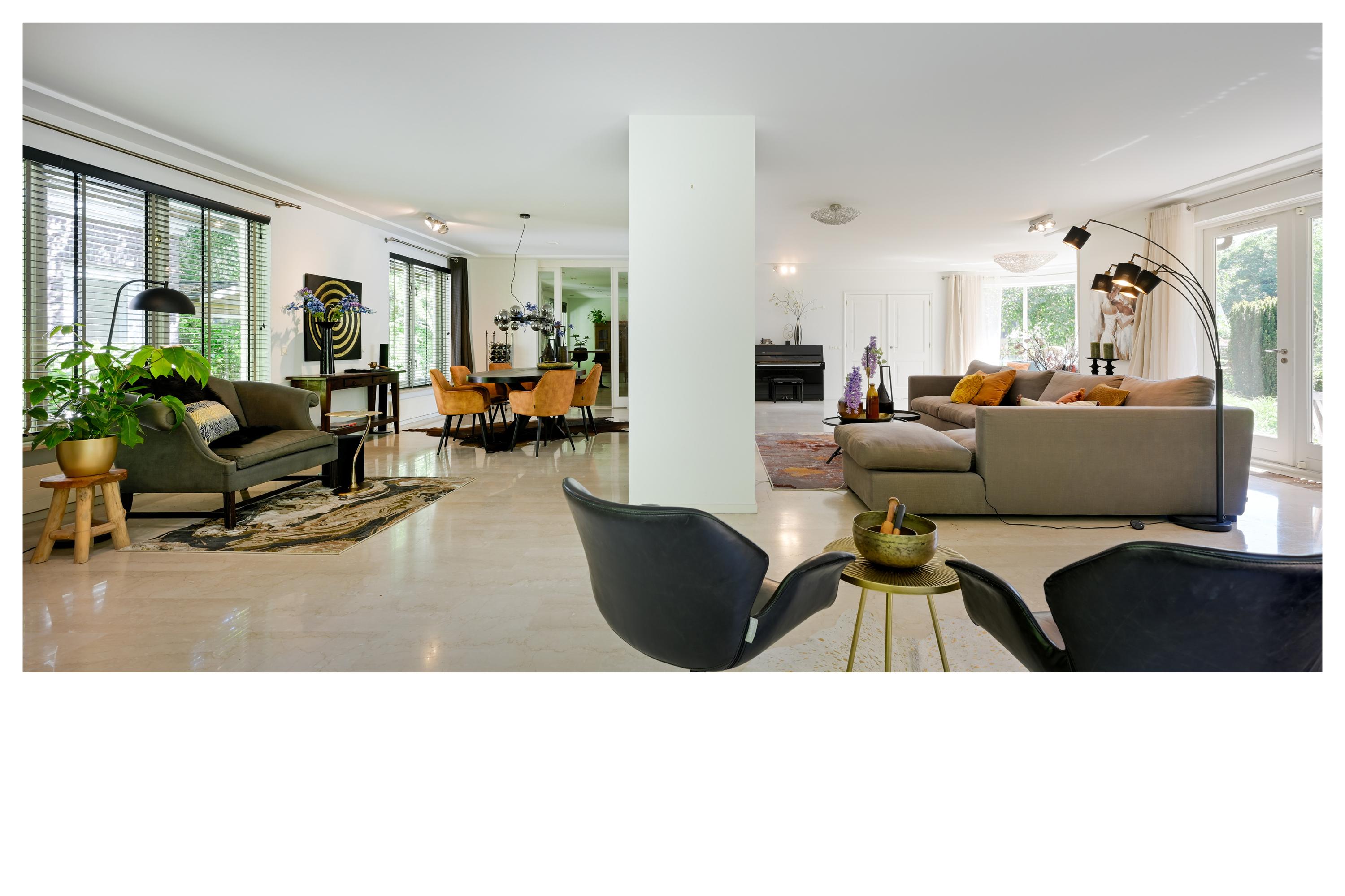 De begane grond is volledig voorzien van marmeren vloeren met vloerverwarming en extra radiatoren.
