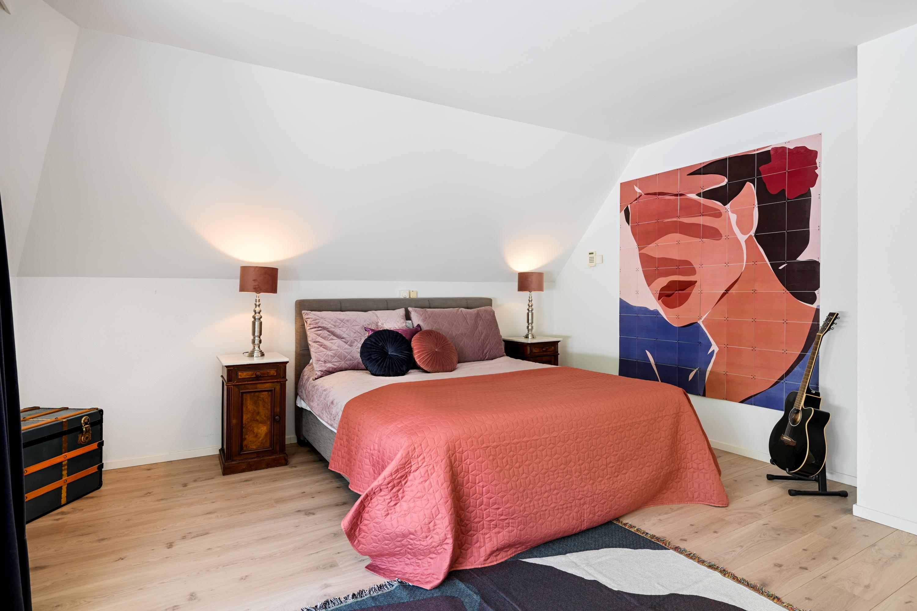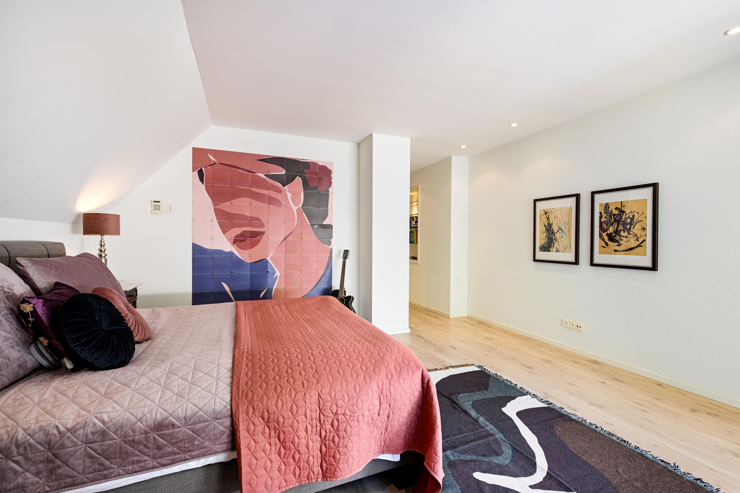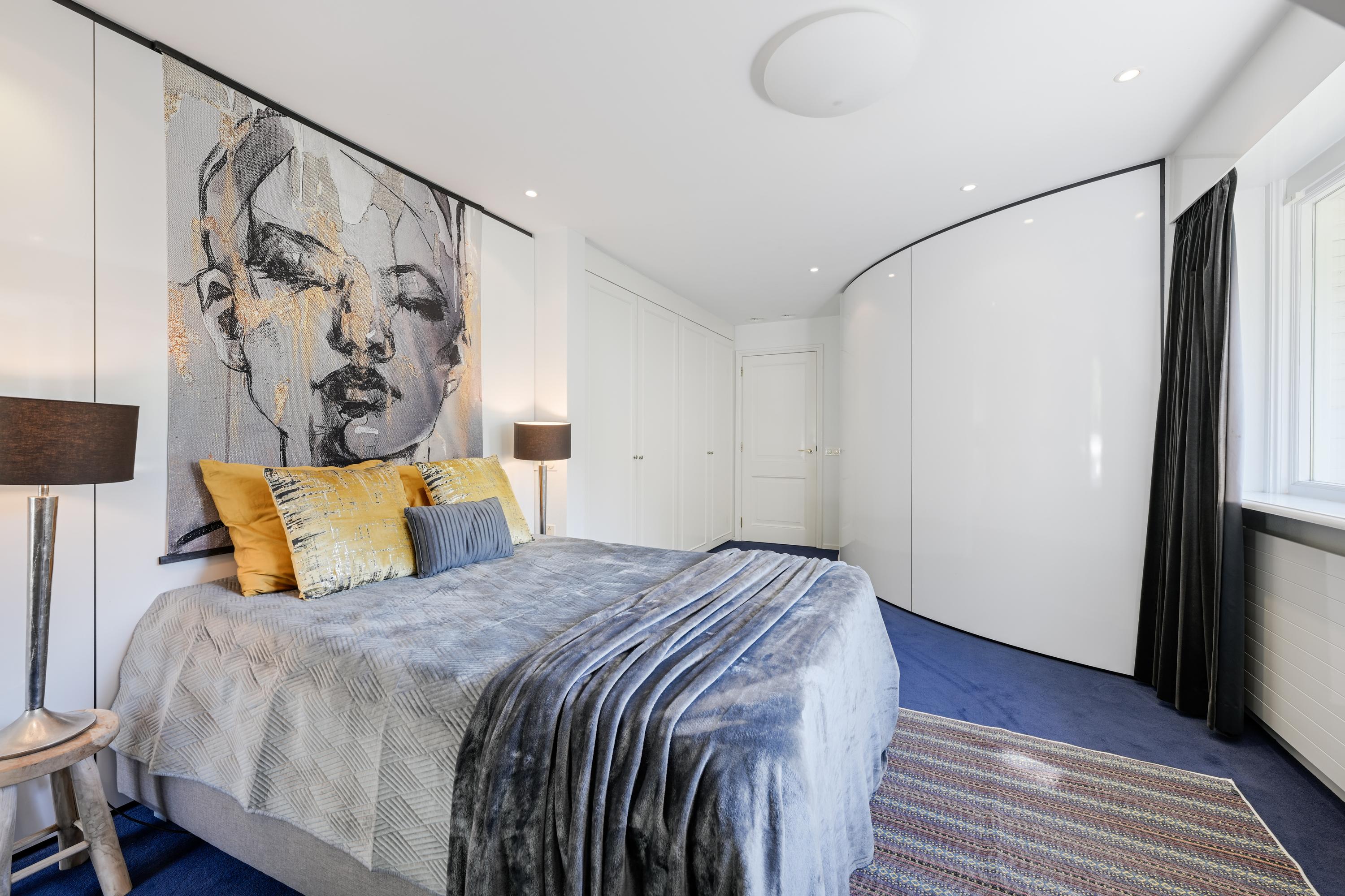 Hal met bordestrap en lift, werkkamer met ronde erker met prachtig uitzicht, ruime slaapkamer met toegang tot balkon, tweede grote (ouder-)slaapkamer met beschut balkon met fraai uitzicht over de tuin, gang naar kleedkamer en eigen badkamer met ligbad, douche, dubbele wastafel in meubel, urinoir en toilet, vloerverwarming. Derde slaapkamer en vierde slaapkamer beide met dakkapel en beide met toegang naar badkamer met bad, douche, toilet, urinoir, wastafelmeubel en vloerverwarming.