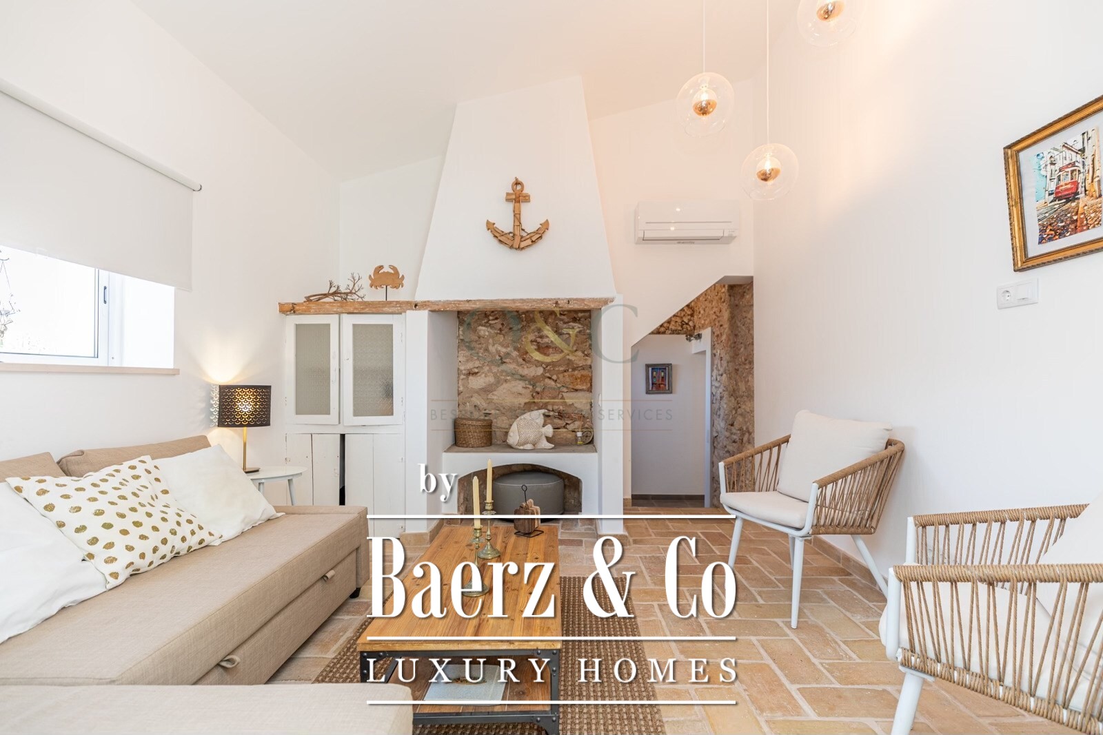 De woonkamer is licht en uitnodigend, voorzien van een haard en mooie uitzichten richting de kustlijn, waardoor een oase van rust ontstaat na een zonnige dag aan het strand. Materialen en afwerkingen balanceren tussen modern raffinement en de warme, tastbare sfeer van de Algarve. Airconditioning biedt door alle seizoenen heen extra comfort, terwijl de tuin en het perceel van 260 m² uitzonderlijke privacy bieden in de buitenlucht.