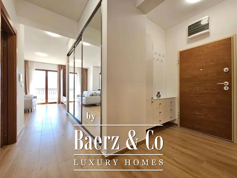 Het appartement combineert functionaliteit en comfort; het beschikt over een lichte woonkamer met open keuken en eetgedeelte, twee slaapkamers, een badkamer en een terras met panoramisch uitzicht. Aan elk detail is gedacht en het appartement is volledig gemeubileerd, klaar voor directe bewoning. De directe nabijheid van een internationale school, restaurants en supermarkten onderstreept de geschiktheid voor permanent verblijf, zomerse retraites en investeringen in zowel korte als lange termijn verhuur.