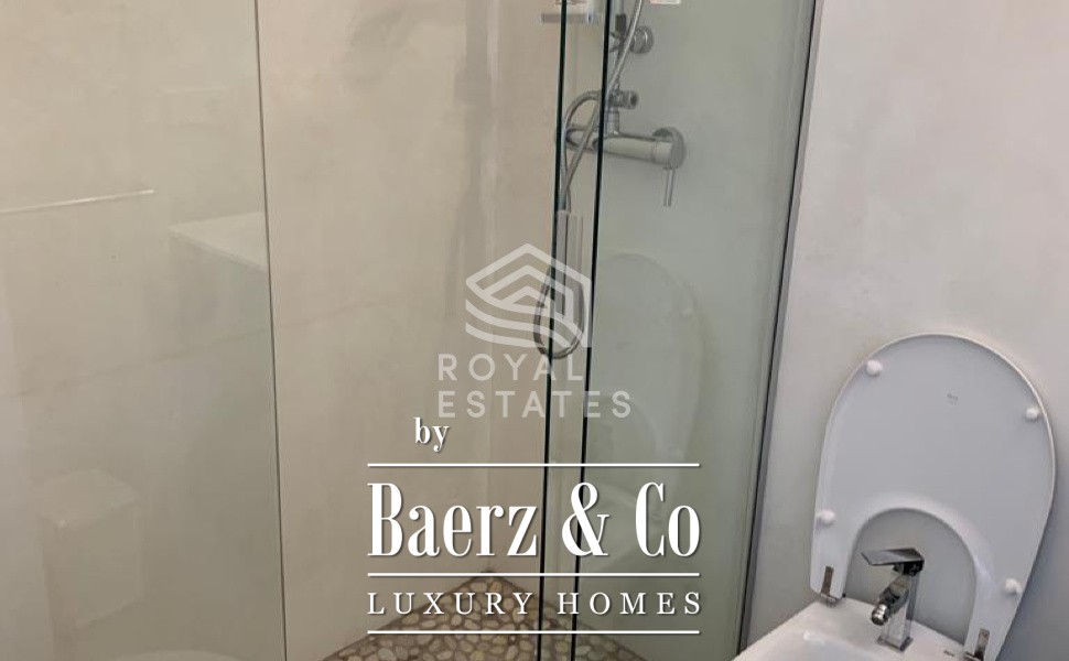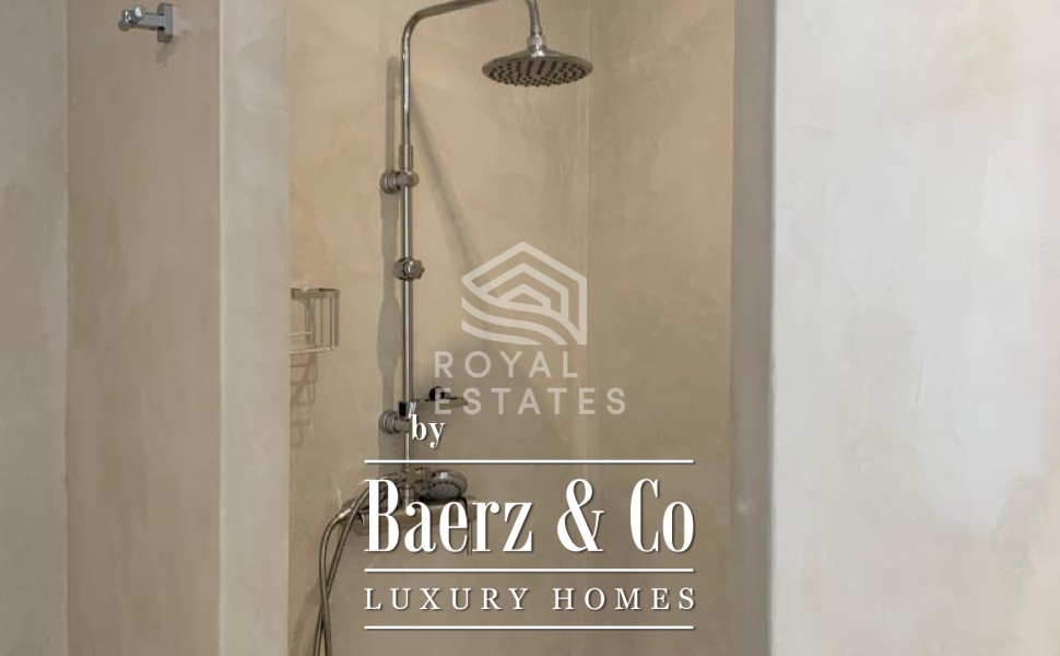 Het bovenappartement beschikt over twee slaapkamers, twee badkamers, een riante salon, een goed geproportioneerde keuken en terrassen die momenten van rust bieden met uitzicht op het omringende licht. Het benedenappartement omvat vijf slaapkamers, elk met een eigen en suite badkamer, een royale salon voor ontspannen avonden en een keuken ingericht op samenzijn. Ruime terrassen lopen over in de buitenruimte met een uitnodigend zwembad en creëren een sfeer die zowel geschikt is voor bezinning als voor vermaak.