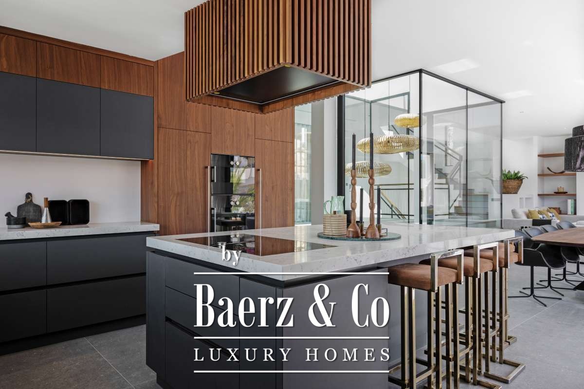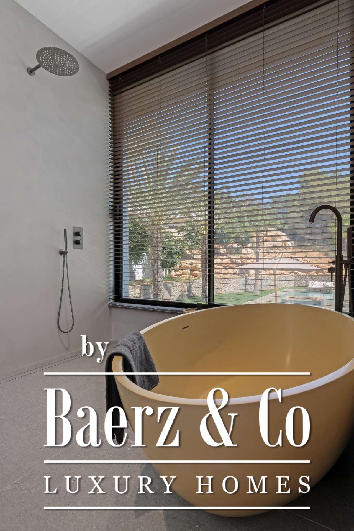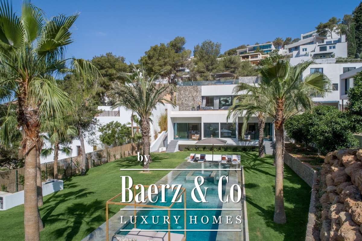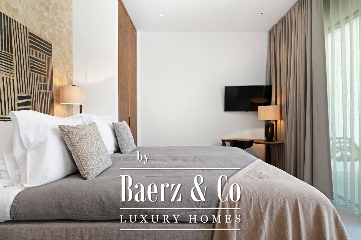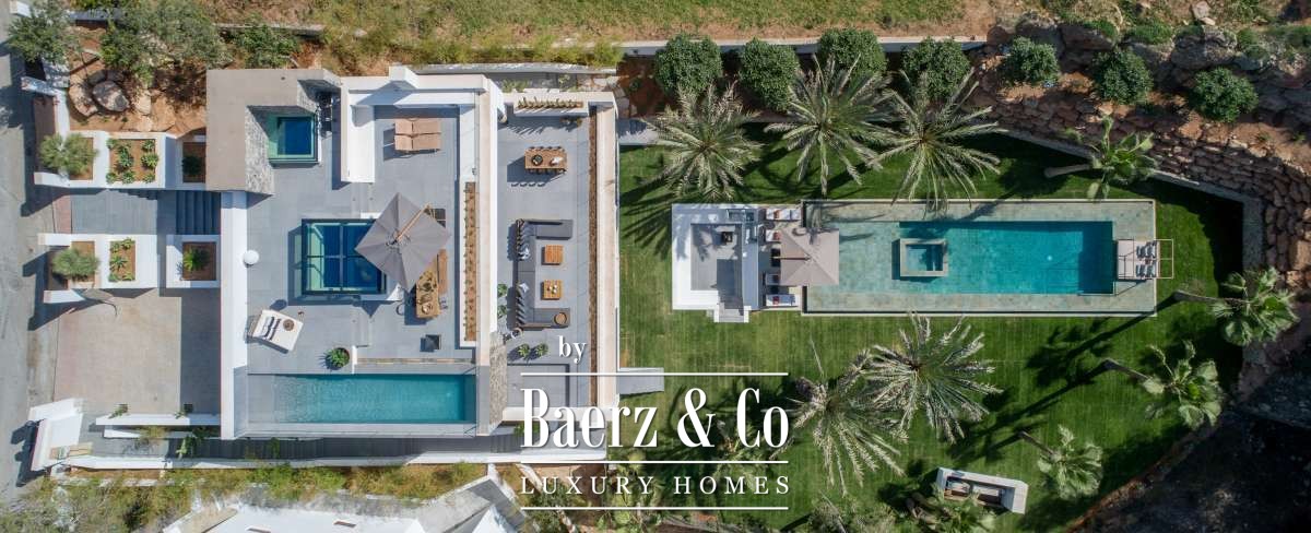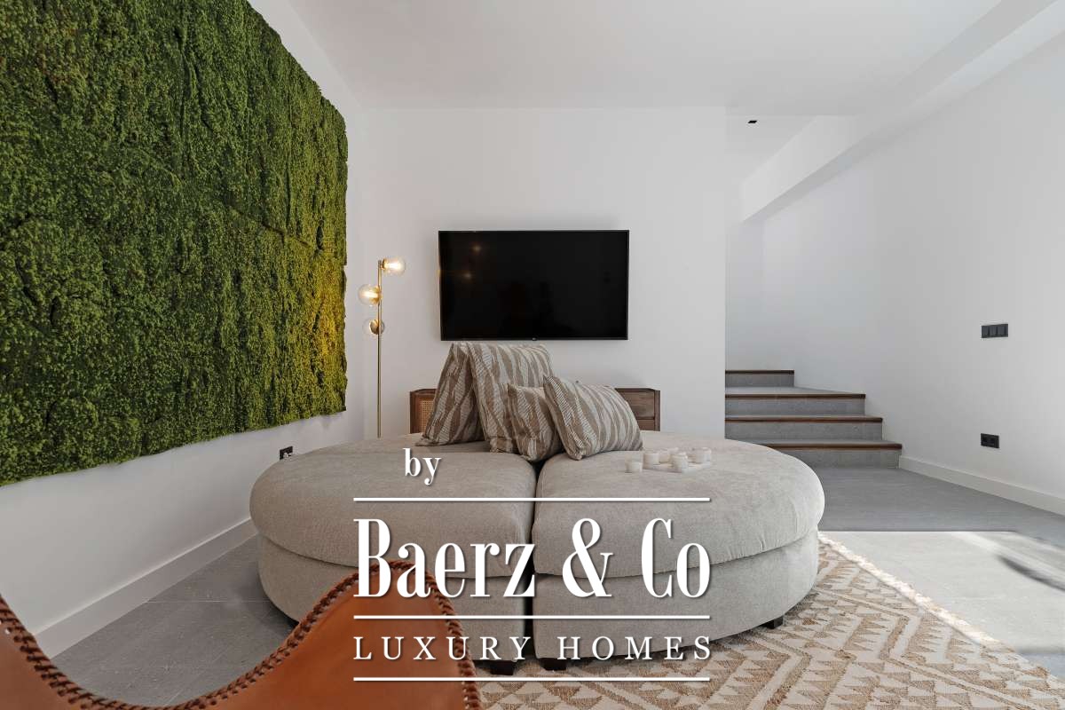De omgevingEen door Blakstad ontworpen villa, verfijnd, uitgevoerd en opgeleverd door Iván Torres Arquitectos, met de naam "Tauet" heeft een spectaculair uitzicht op Dalt Vila en bevindt zich hoog op een heuvel in een van de meest gewilde woonwijken van het eiland, namelijk Can Furnet. Deze rustige buurt biedt rust en privacy, en ligt op slechts enkele minuten afstand van het charmante dorpje Jesús, waar u al uw dagelijkse benodigdheden kunt vinden. Deze locatie biedt een grote verscheidenheid aan keuzes als het gaat om strandleven. Het dichtstbijzijnde strand is het brede zandstrand van Talamanca, op slechts 8 minuten rijden. Hier kunt u een ontspannen stranddag doorbrengen in de pittoreske baai en heerlijk al-fresco dineren in schilderachtige restaurants aan zee. Voor een meer rustige en ongerepte strandervaring zijn Cala Olivera, Cala Bonita en Cala Espart serene baaien waar u kunt genieten van de pure natuur van het eiland, en dat allemaal binnen 10 minuten rijden. Op slechts 8 minuten rijden richting Ibiza-Stad vindt u het chique gebied van Marina Botafoch met de bekende jachthaven, die de thuisbasis vormt van 's werelds meest indrukwekkende superjachten. Struin rustig over de boulevard en ontdek de luxe designer winkels zoals Louis Vuitton, Hermès en Dior. Geniet ook van culinaire hoogstandjes in de gastronomische restaurants It, Roto en STK, die naast het iconische nachtleven van Ibiza liggen, zoals Lío en Pacha. Enkele minuten verder bevindt u zich in het kloppende hart van het eiland, namelijk het bruisende Ibiza-Stad. Deze charmante stad zit vol cultureel erfgoed, uitgebreide eetgelegenheden, rooftop bars, een jachthaven en een mix van zowel lokale boetieks als internationale winkels. De luchthaven is ook gemakkelijk bereikbaar op slechts 15 minuten rijden van deze rustige residentie. Dit huis biedt het toppunt van luxueus wonen, dicht bij al Ibiza's belangrijkste hotspots, en biedt tegelijkertijd een serene en privé woonervaring met een ongeëvenaard uitzicht.De villaDeze nieuwbouw villa combineert smaakvol modern design met Balinese invloeden. De villa "Tauet" is een uitzonderlijk eigendom dat een warme en uitnodigende sfeer uitstraalt. Een belangrijk hoogtepunt van deze woning is de volledig gemeubileerde oplevering, die direct klaar is om in te trekken. Er is veel aandacht besteed aan de prachtige styling en het algehele interieurontwerp. De villa heeft een bebouwde oppervlakte van 426m2 op een perceel van 1404m2, en is verdeeld over 2 verdiepingen met 5 ruime slaapkamers en 5 luxe badkamers. U betreedt deze moderne woning via een strakke trap die naar een indrukwekkende voordeur leidt. Bij binnenkomst wordt u begroet door een adembenemende entree, een glazen hemelraam dat het interieur baadt in natuurlijk licht. Vanaf hier komt u op de hoofd verdieping en bevindt u zich in een grote, open woon- en eetruimte met prachtig uitzicht op de weelderige omgeving door de kamerhoge ramen van vloer tot plafond. De moderne en volledig uitgeruste keuken is voorzien van een verfijnde keuken bar, perfect om 's ochtends aan uw koffie te nippen of te genieten van een drankje met vrienden. Vanuit de woonkamer heeft u toegang tot het aangrenzende balkon met een lounge- en eethoek die een mooi uitzicht bieden over uw uitnodigende tuin, en zo de perfecte setting creëren voor een naadloze binnen- en buiten leefervaring. Via een imposante moderne trap kunt u de verschillende niveaus van het huis bereiken. De ruime slaapkamers met eigen luxe en suite badkamers bevinden zich allen op de benedenverdiepingen. De master slaapkamers bieden een geweldig uitzicht over de vredige tropische tuin. Ook hebben ze een eigen balkon die uitkijkt over het enorme zwembad, ontwaak hier dagelijks in uw privé paradijs. De overige slaapkamers bieden ook een eigen terras, vol privacy en ontspanning.De buitenruimtesDe villa heeft een schitterende tropische tuin met vele luxe lounge zitjes, perfect om buiten te ontspannen. U vindt er een groot en elegant overloopzwembad in Balinese stijl met geïntegreerde jacuzzi als middelpunt van de tuin. Het zwembad wordt omringd door een fraai groen gazon en tropische palmbomen, wat de perfecte buiten-spa omgeving creëert. Ontspanningsruimtes zijn er in overvloed, waaronder ligstoelen, een Bali-bed en een geïntegreerde zithoek. Naast de serene tuin biedt de villa ook verhoogde buitenterrassen met een adembenemend uitzicht. De bovenste verdieping beschikt over een ruim dakterras met panoramisch uitzicht dat helemaal tot aan Dalt Vila reikt. Het kroonjuweel van de buitenruimtes van de villa is een geweldig dakterras met een tweede overloopzwembad. Organiseer exclusieve diners met dit verbluffende uitzicht of geniet van cocktail avonden onder de sterren voor onvergetelijke avonden. Dit buitengewone dakterras biedt u privacy en totale ontspanning. Om uw veiligheid te garanderen is het pand volledig omheind. Deze droomvilla belichaamt het luxueuze leven en combineert naadloos moderne verfijning met de kalmte van de natuur, waardoor er een exclusieve woonervaring wordt gecreëerd.