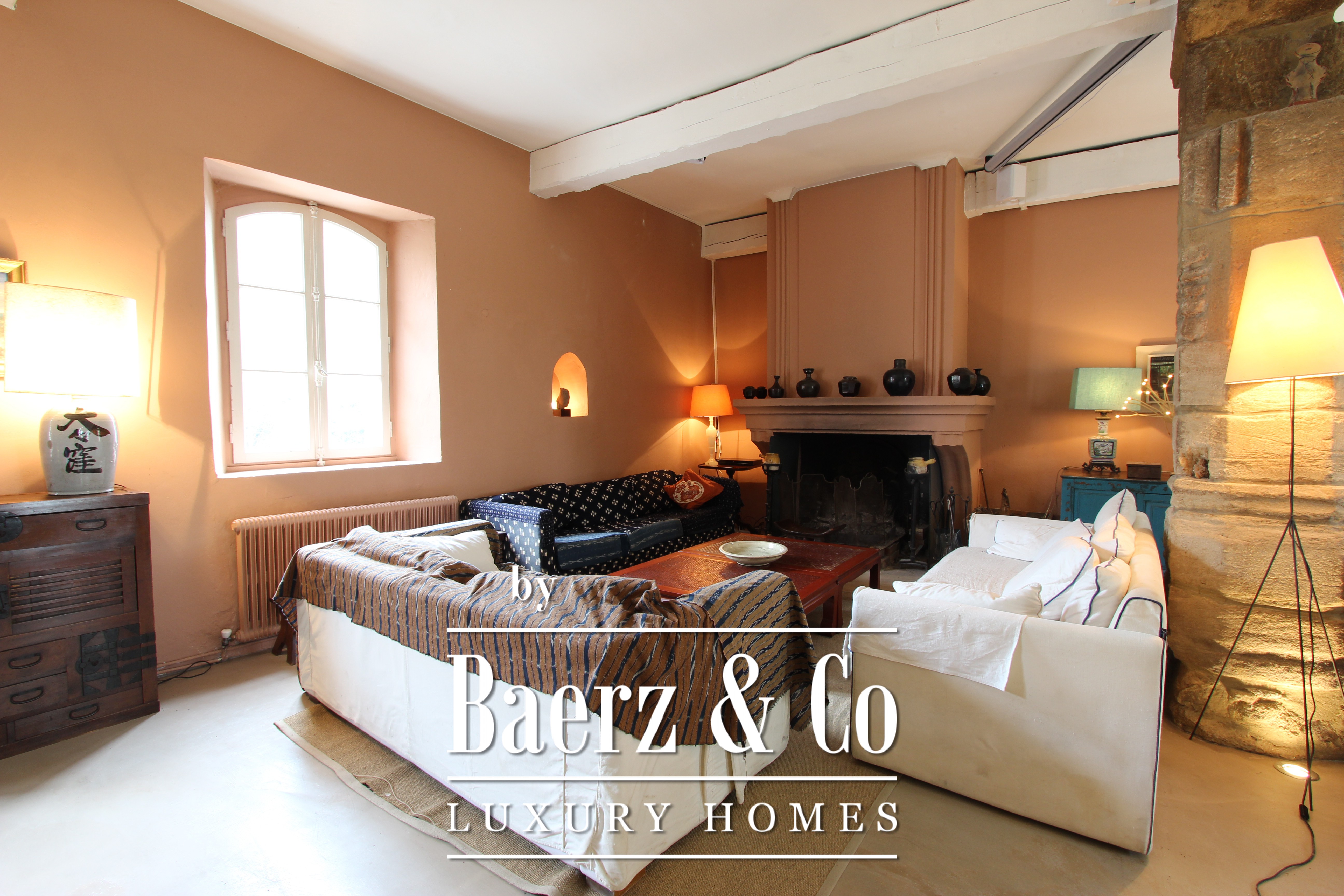 De 390 m² woonruimte strekt zich uit over twee verdiepingen en biedt een ritmische, vloeiende indeling: een entreehal van 16 m², een royale keuken met bijkeuken, volledig geïntegreerde wasruimte en berging, een mediaruimte en een indrukwekkend salon met open haard en stenen kolommen. De zomerse keuken geeft uitzicht op het fascinerende landschap van de Dentelles de Montmirail, terwijl het buitendiner zich afspeelt in een park, beschaduwd door eeuwenoude eiken.