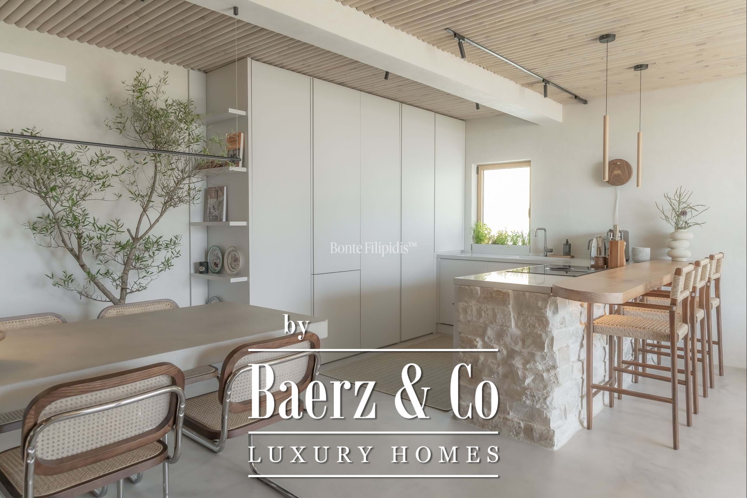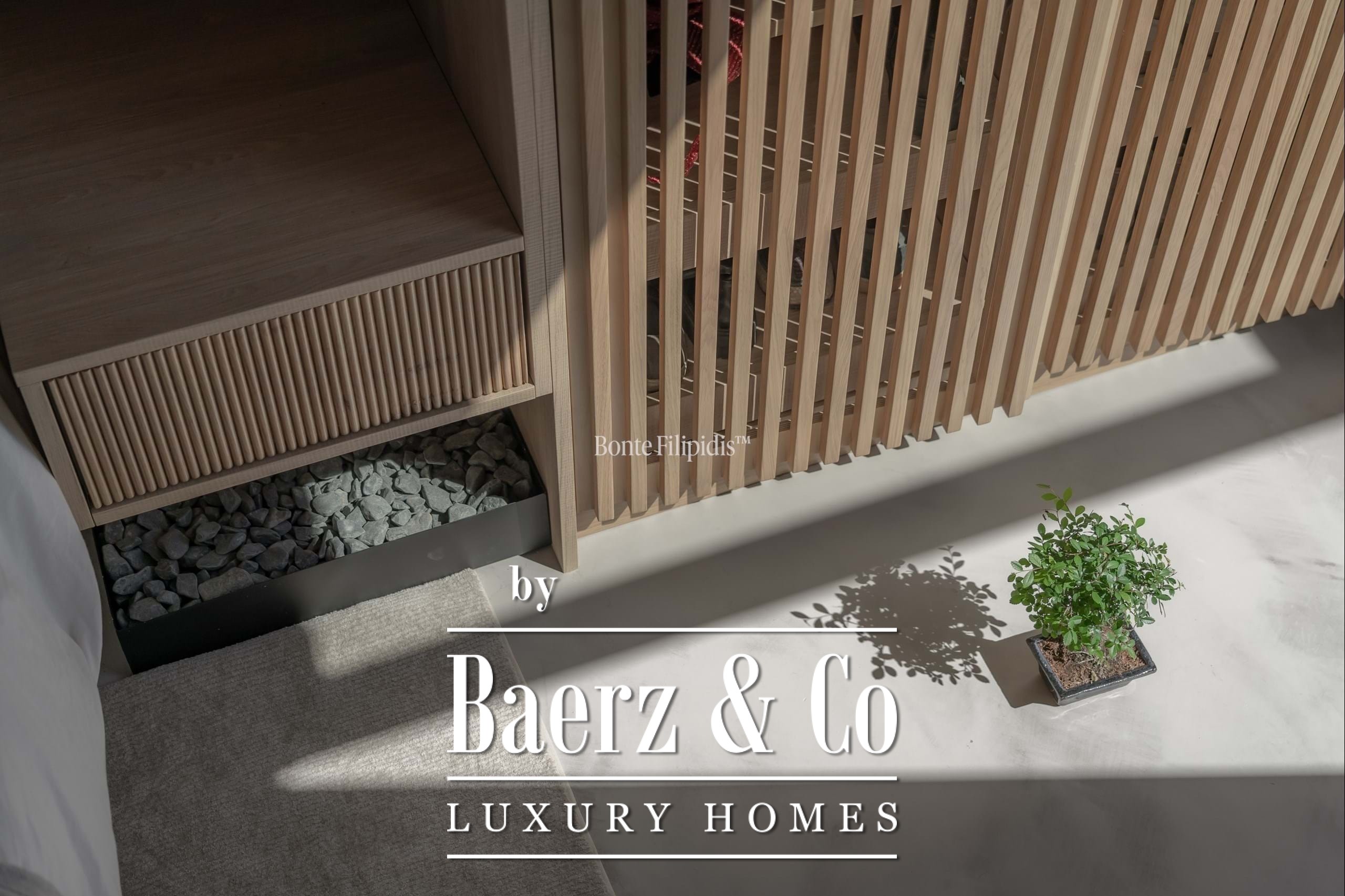 Met een woonoppervlakte van 88 m² sluiten de open woonkamer, eetruimte en keuken naadloos op elkaar aan, voorzien van hoogwaardige afwerking en volledig geïntegreerde apparatuur. De woonkamer leidt naar een terras van 19 m² met bar en een buitendouche om verkoeling te zoeken onder de lucht, met een sereen uitzicht op de baai. In het privégedeelte waarborgt de en-suite slaapkamer privacy, terwijl de tweede slaapkamer met zeezicht een eigen balkon en een aparte, complete badkamer biedt.