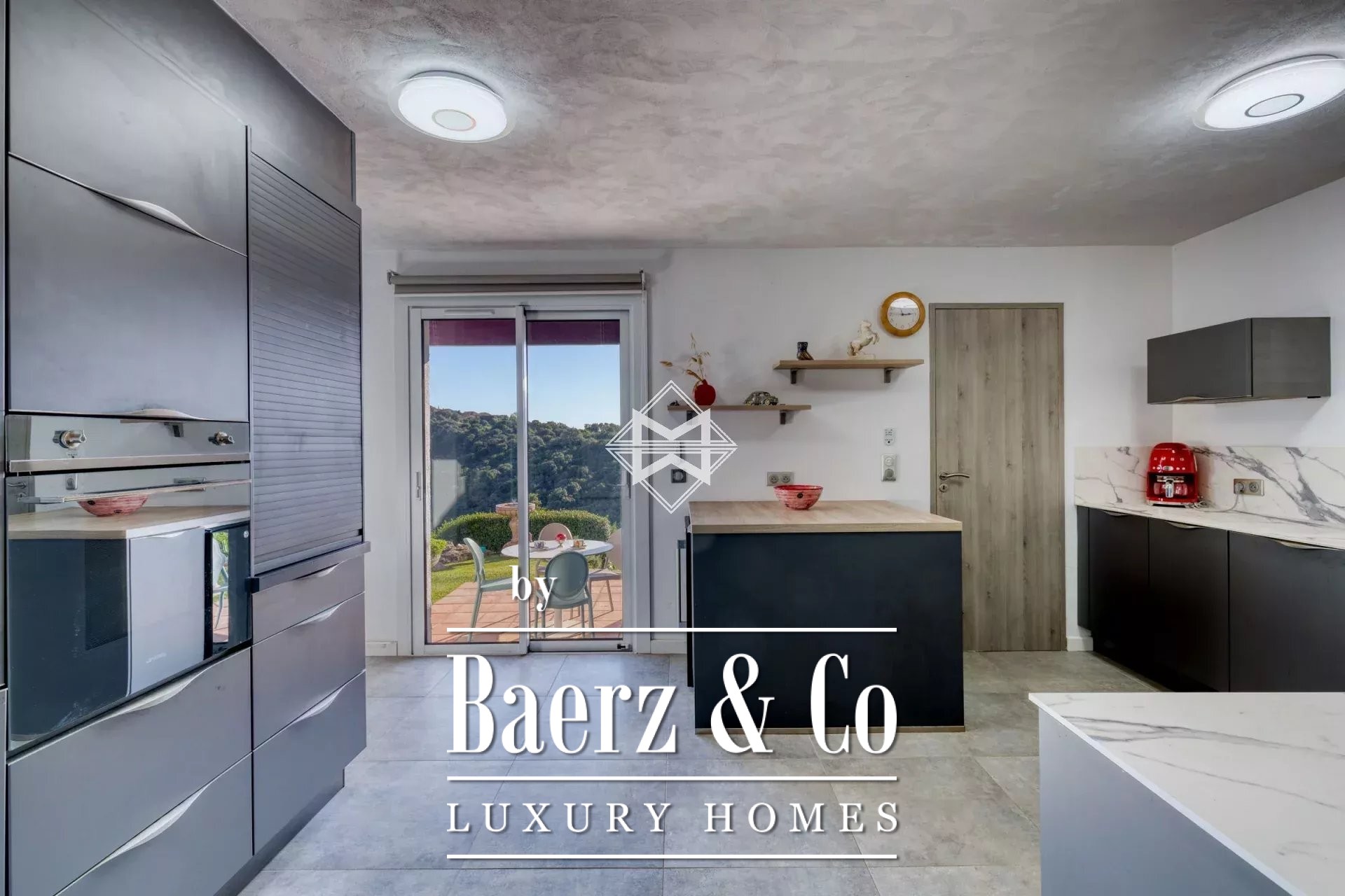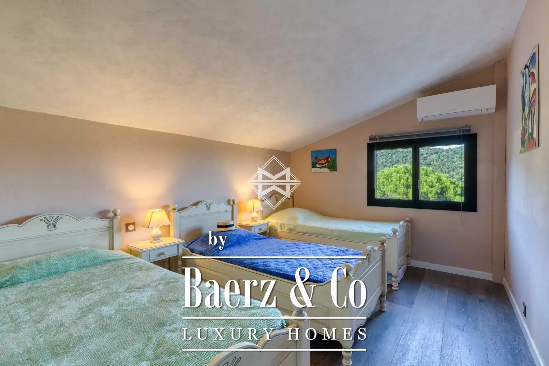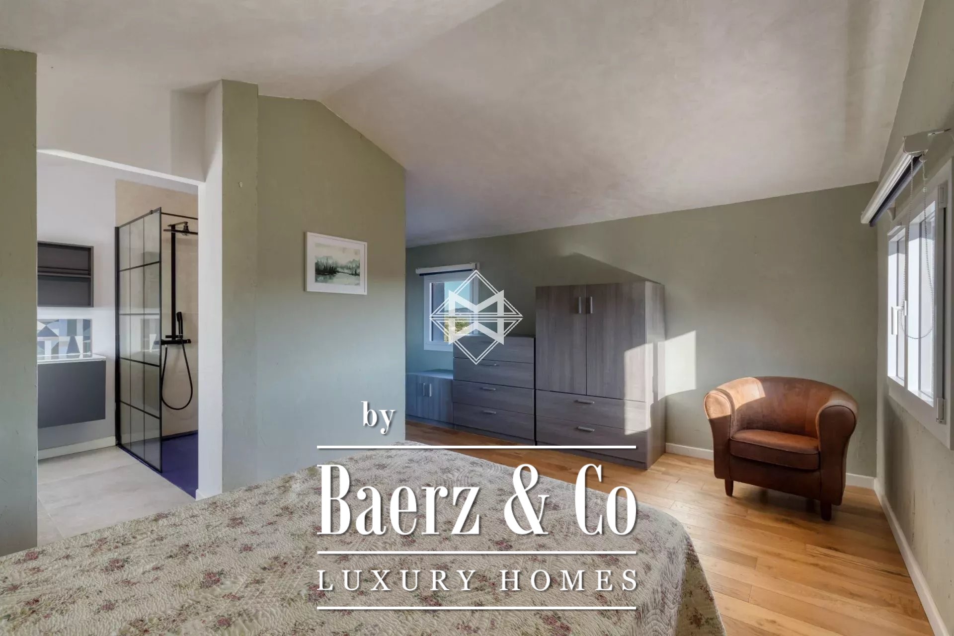 De entree leidt naar een volledig uitgeruste keuken en een gewelfde woon- en eetkamer, omlijst door grote schuifpuien die het uitzicht tot in het interieur trekken. De mastersuite op de begane grond biedt een intiem toevluchtsoord, terwijl de verdieping drie extra slaapkamers en twee uitstekend ingerichte doucheruimtes telt. Riante terrassen, een knusse winterlounge en een fraai aangelegde vlakke tuin stimuleren een ontspannen woonritme, waar zon, zwembad en de avondzon over de heuvels op subtiele wijze plezier brengen.
