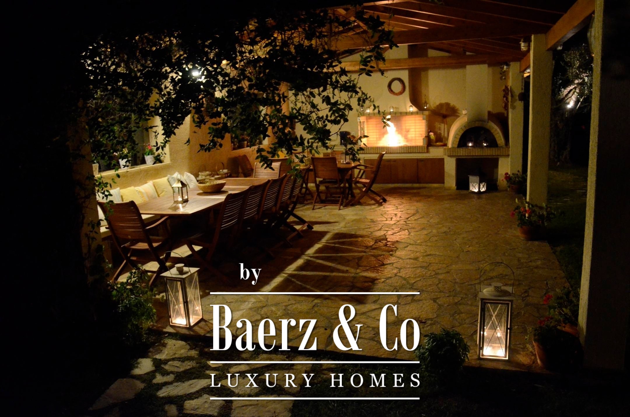 The residence unfolds across three levels with a total surface of 400 sq.m., set on an expansive 4,010 sq.m. plot. Designed with elegance and functionality in mind, it features six bedrooms, two fully equipped kitchens, two generous living rooms with fireplaces, four bathrooms, and an attic, all connected by a beautifully crafted internal wooden staircase. Natural light floods the interiors, while the layout offers flexibility, privacy, and comfort for both family living and hosting guests.