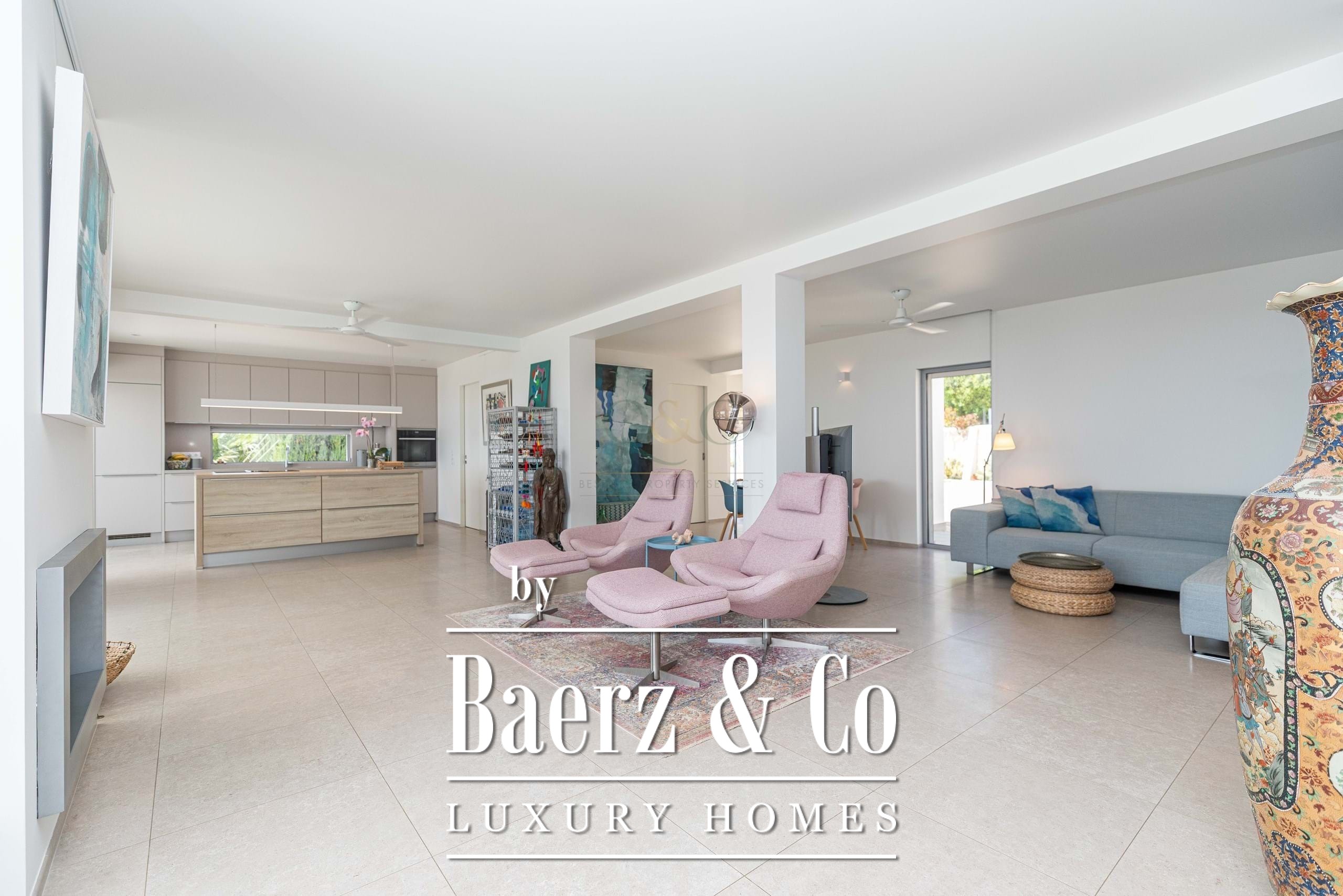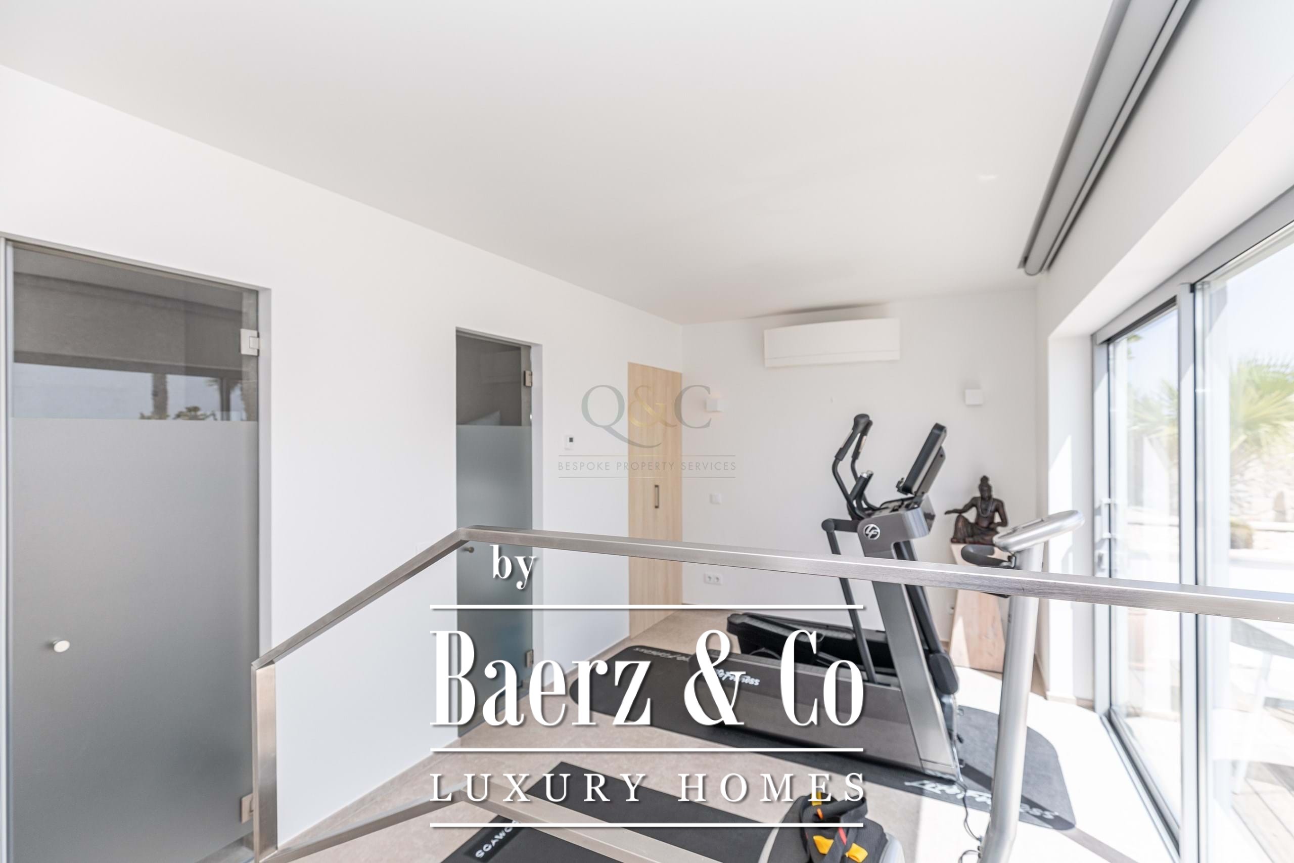 Buiten zorgen aangelegde droogtetuin met volwassen olijfbomen, palmen en architectonische beplanting voor een rustgevend decor, versterkt door duurzame voorzieningen zoals zonnepanelen en automatische irrigatie. Het landgoed is beveiligd met elektrische poorten, alarmsysteem en camerabewaking. Luxe voorzieningen als zwembad, airconditioning, domoticasysteem en bioklimatische pergola laten de villa geschikt zijn voor ontspanning en entertainment.