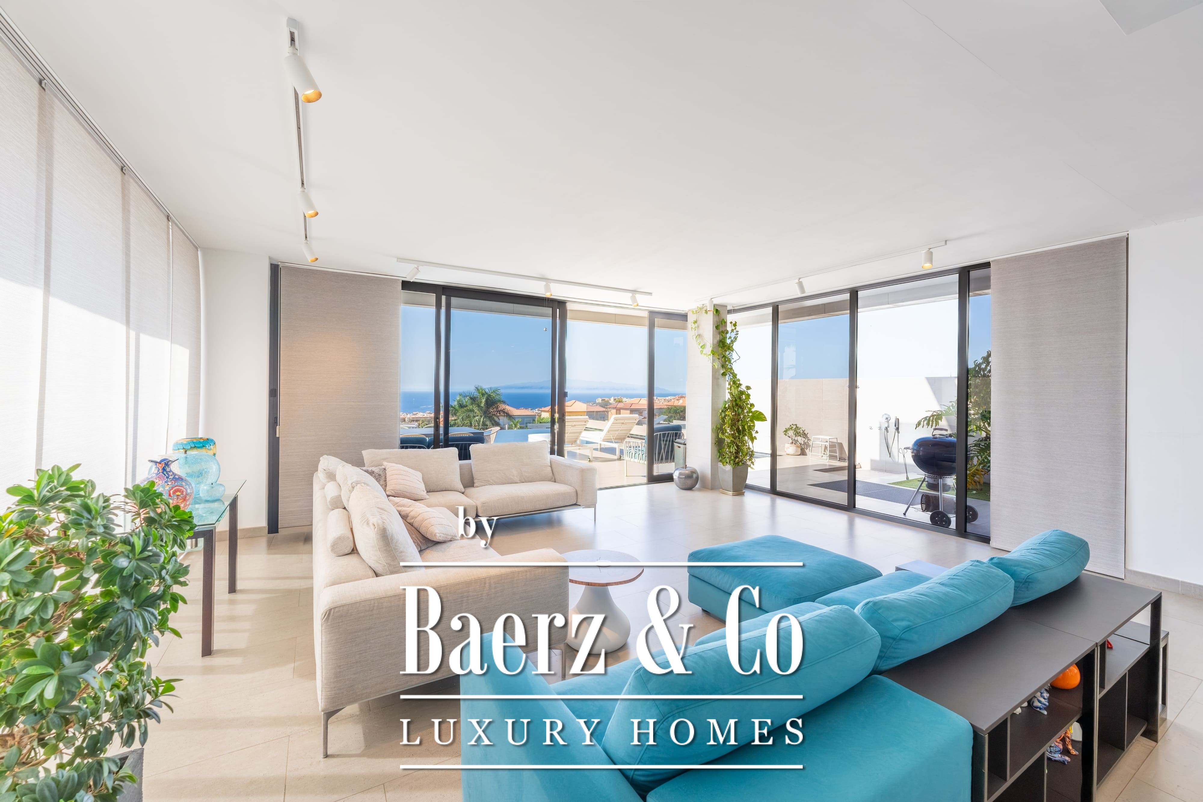 Deze opmerkelijke woning valt op door zijn eigentijdse ontwerp, ruime interieurs en adembenemend panoramisch uitzicht op de Atlantische Oceaan en het eiland La Gomera.